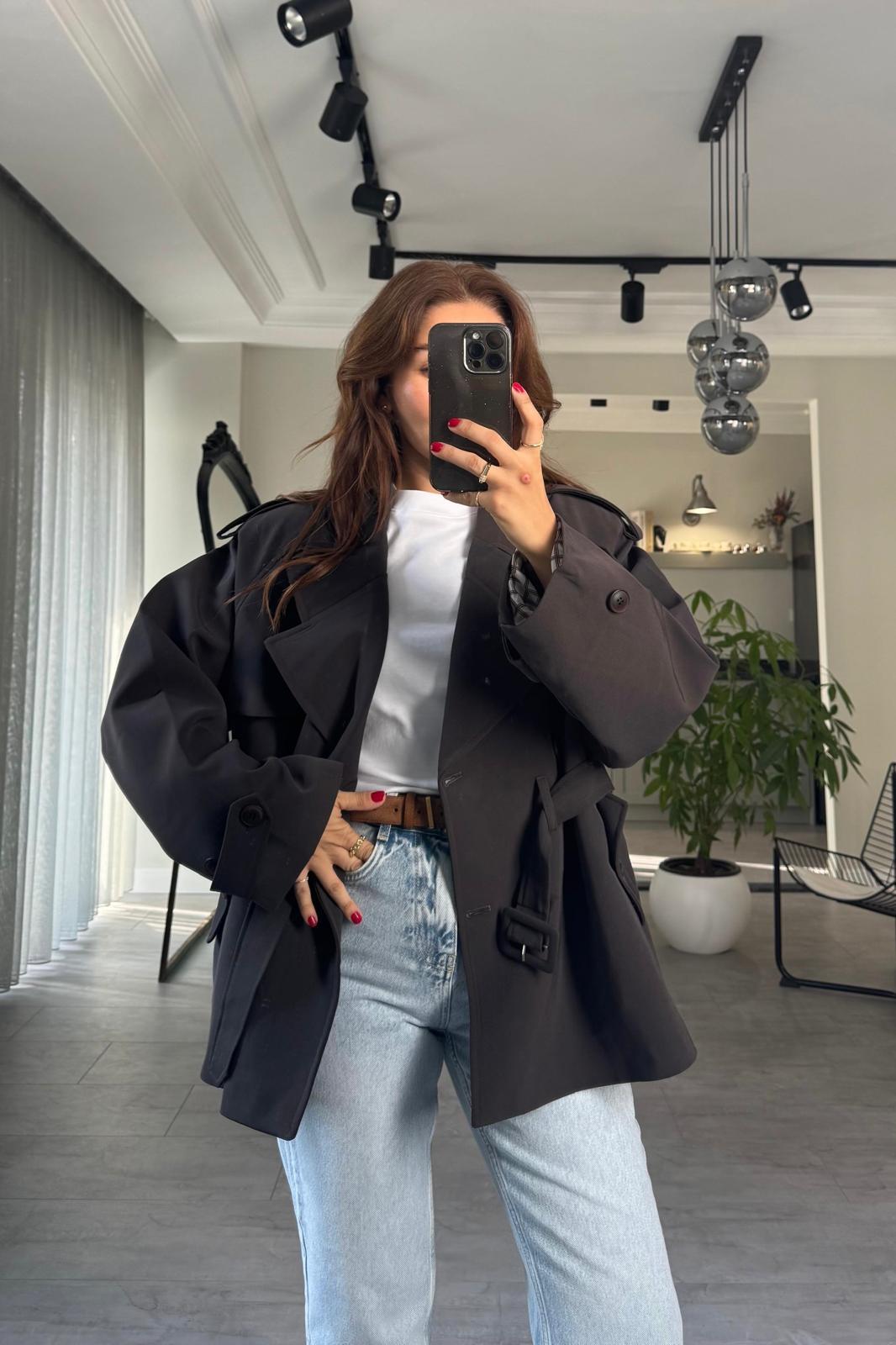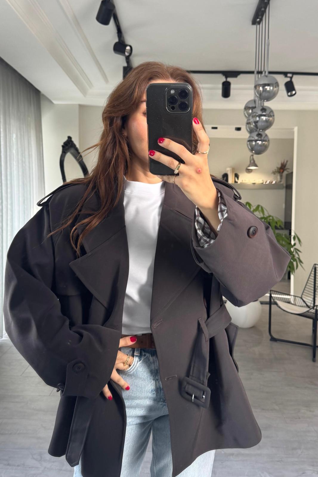 ARA YAKALI KEMERLİ TRENÇ/9587