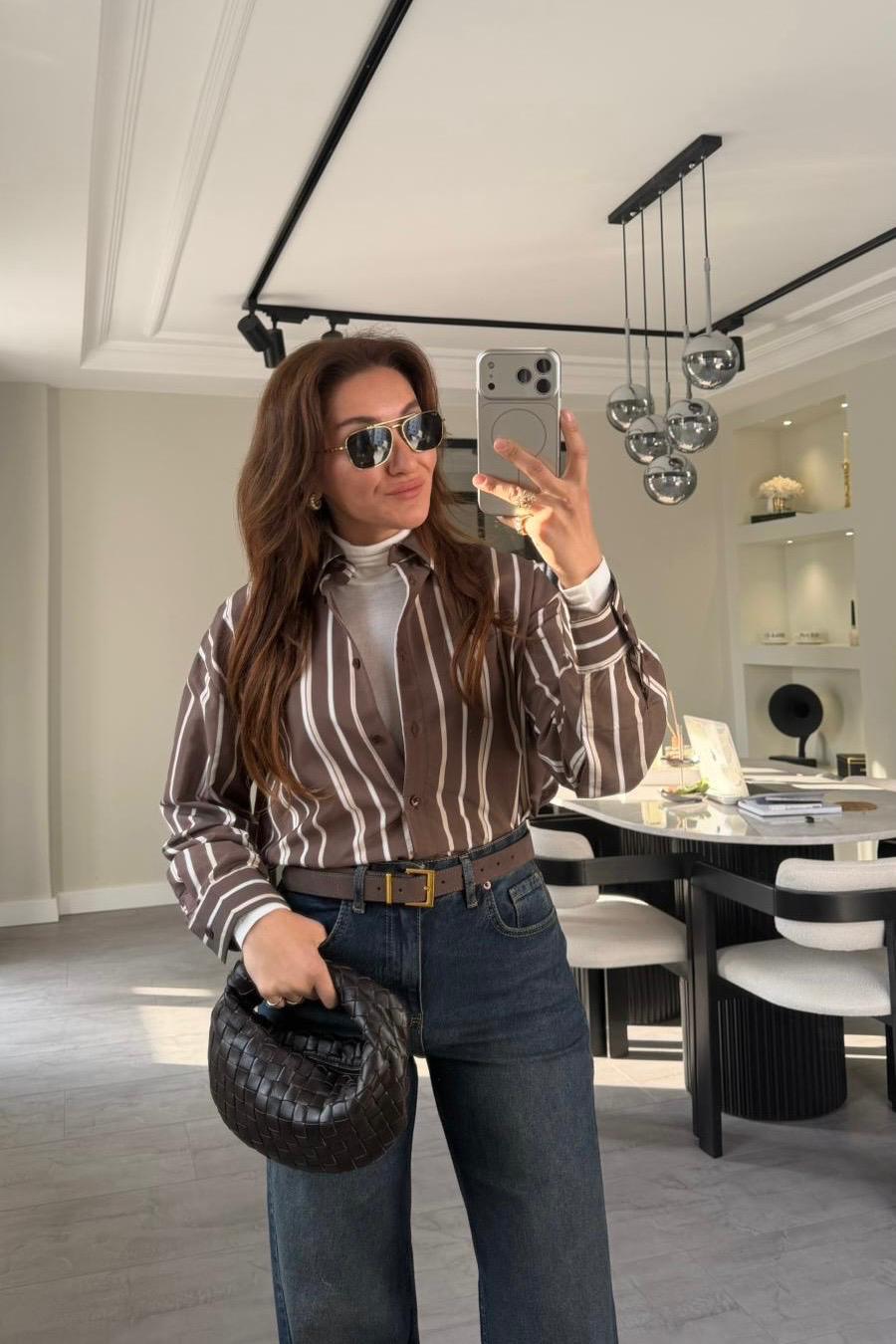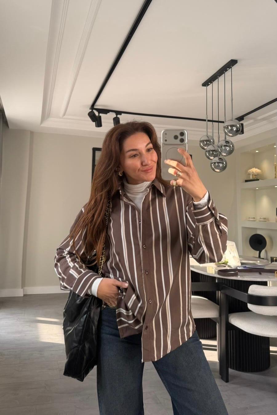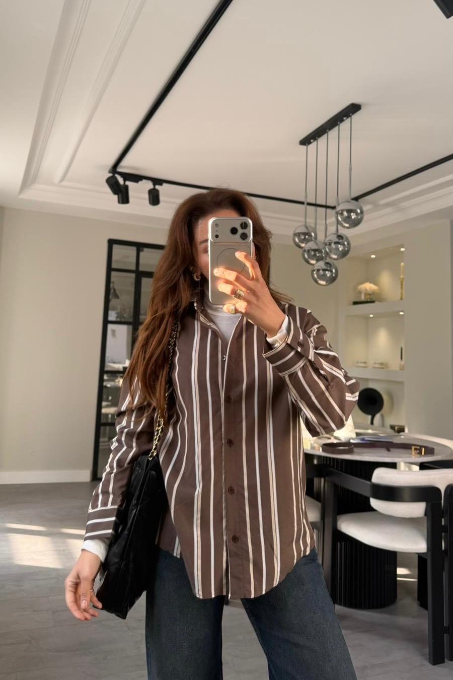 ARKASI DÜĞMELİ ÇİZGİLİ GÖMLEK/3209 (26KFLW0205)