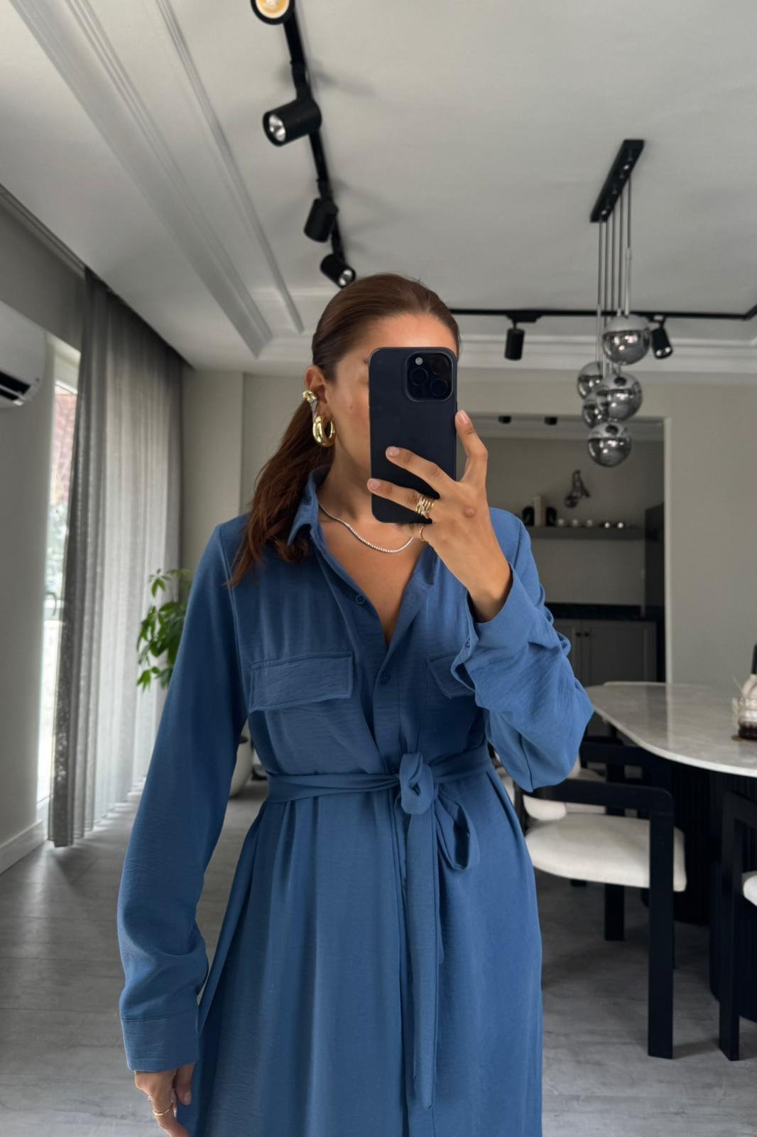 AYROBİN ÖNÜ CEPLİ GÖMLEK ELBİSE/8239