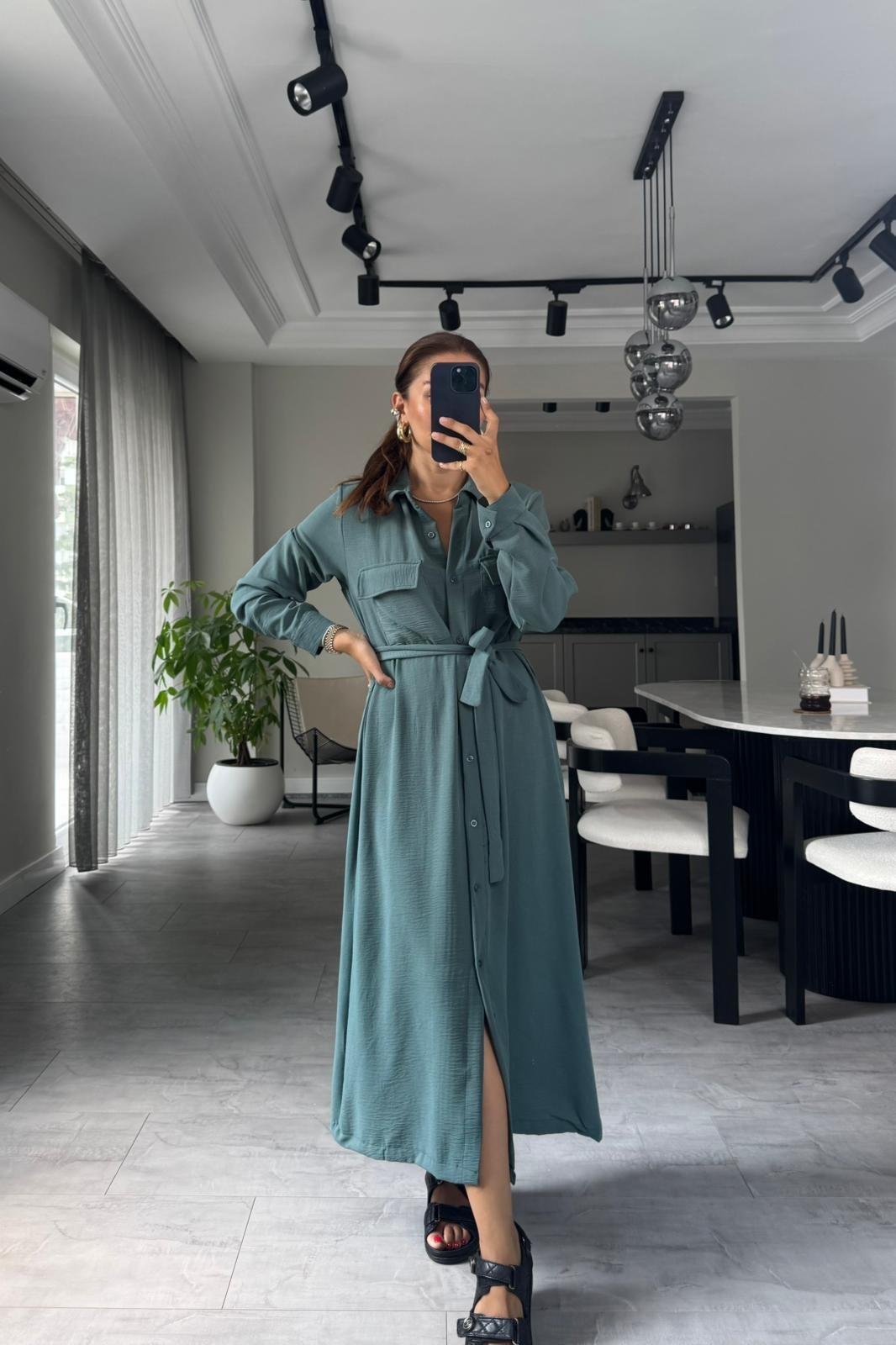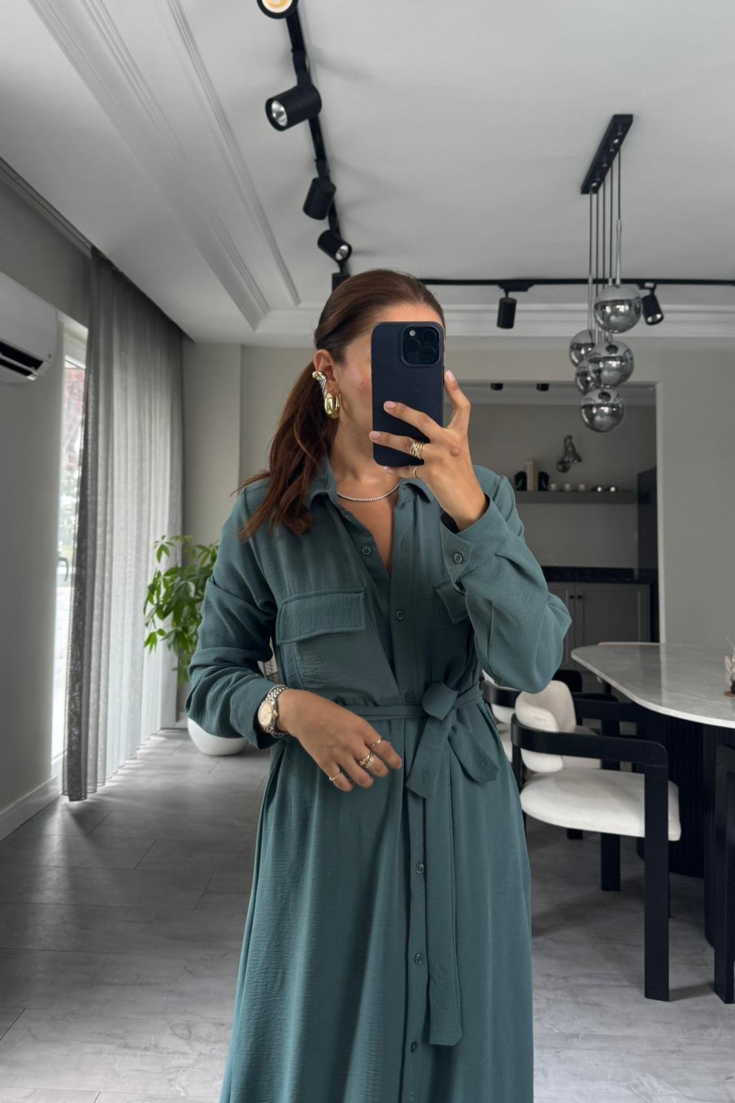 AYROBİN ÖNÜ CEPLİ GÖMLEK ELBİSE/8239