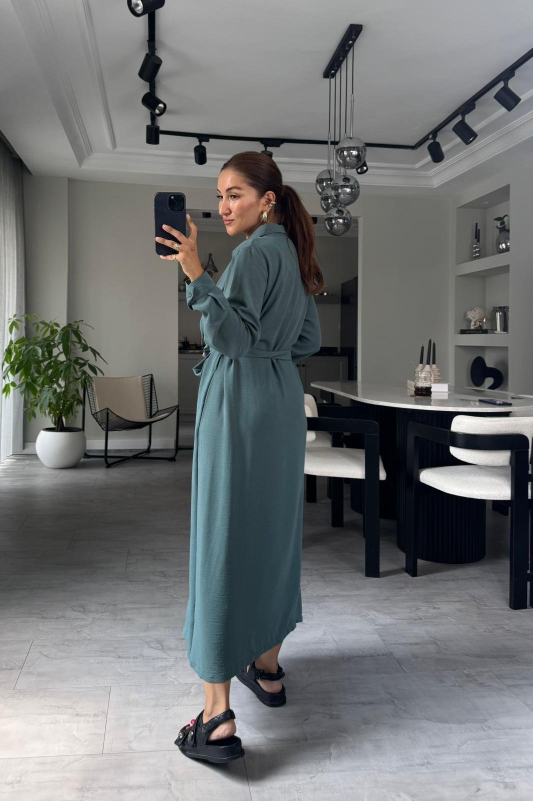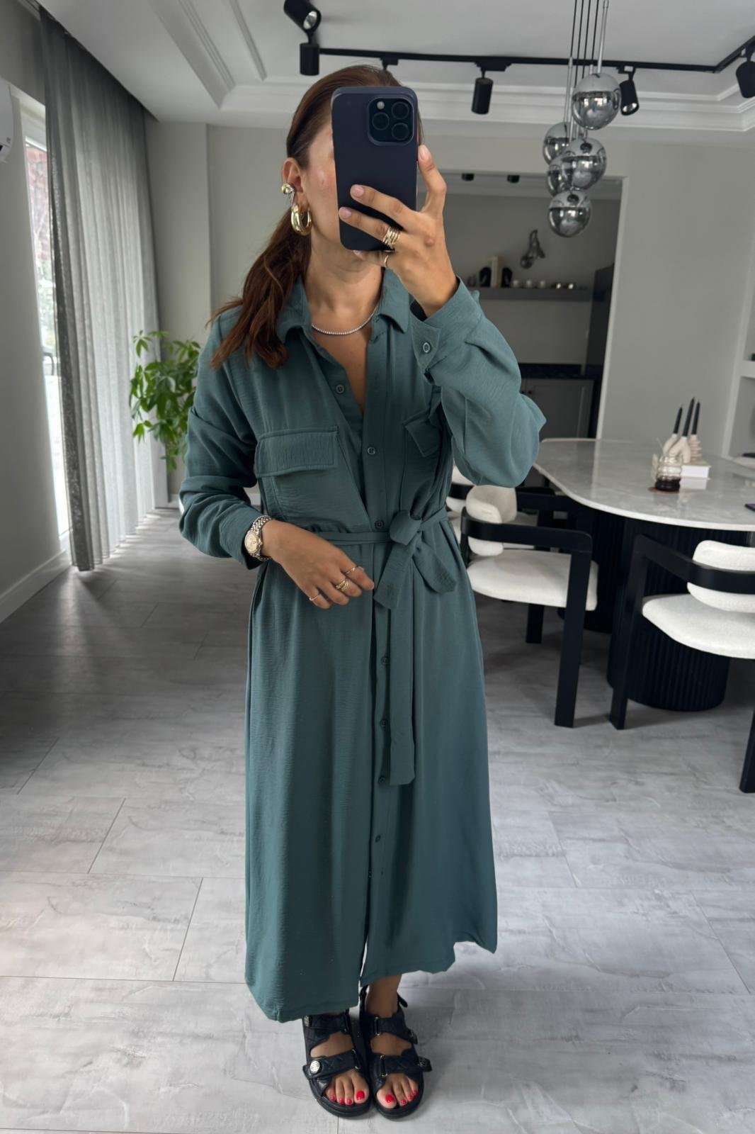 AYROBİN KUMAŞ DÜĞMELİ GÖMLEK ELBİSE