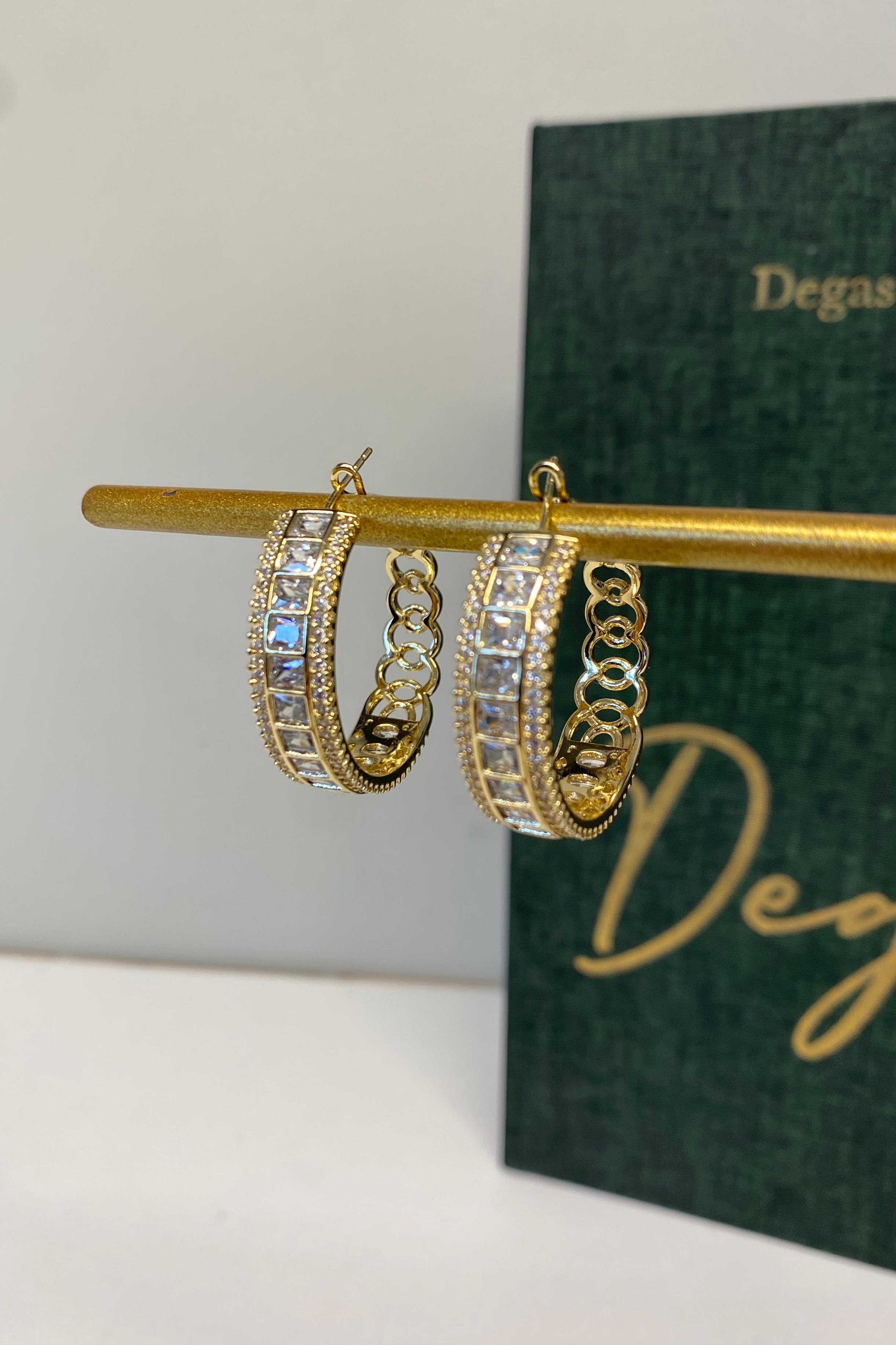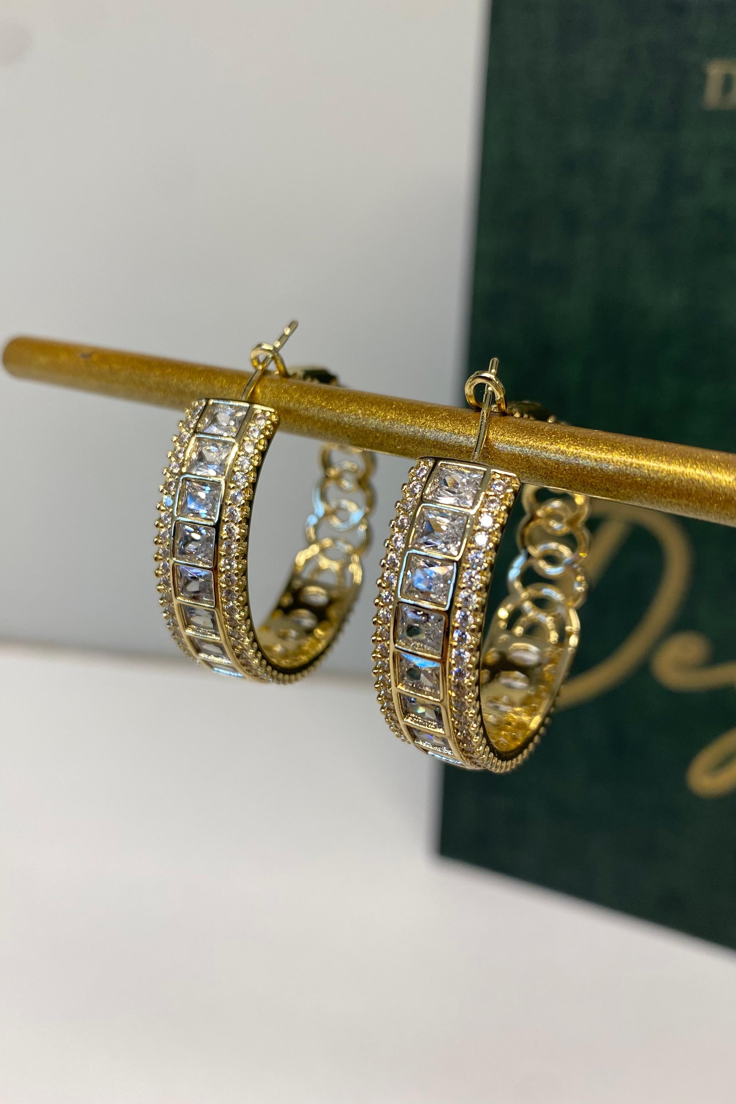 BAGET TAŞ SIRALI KALIN HALKA KÜPE 3 CM (25GFB65027)