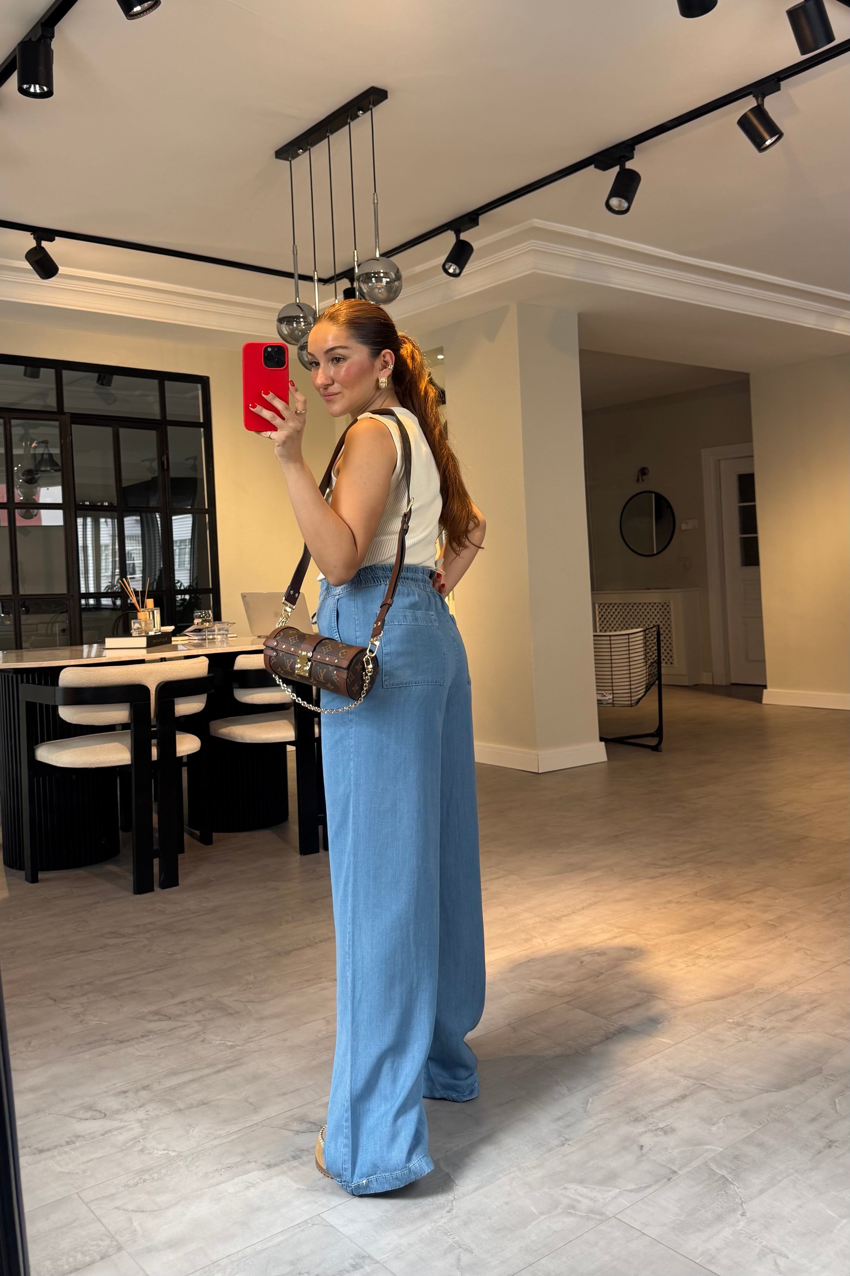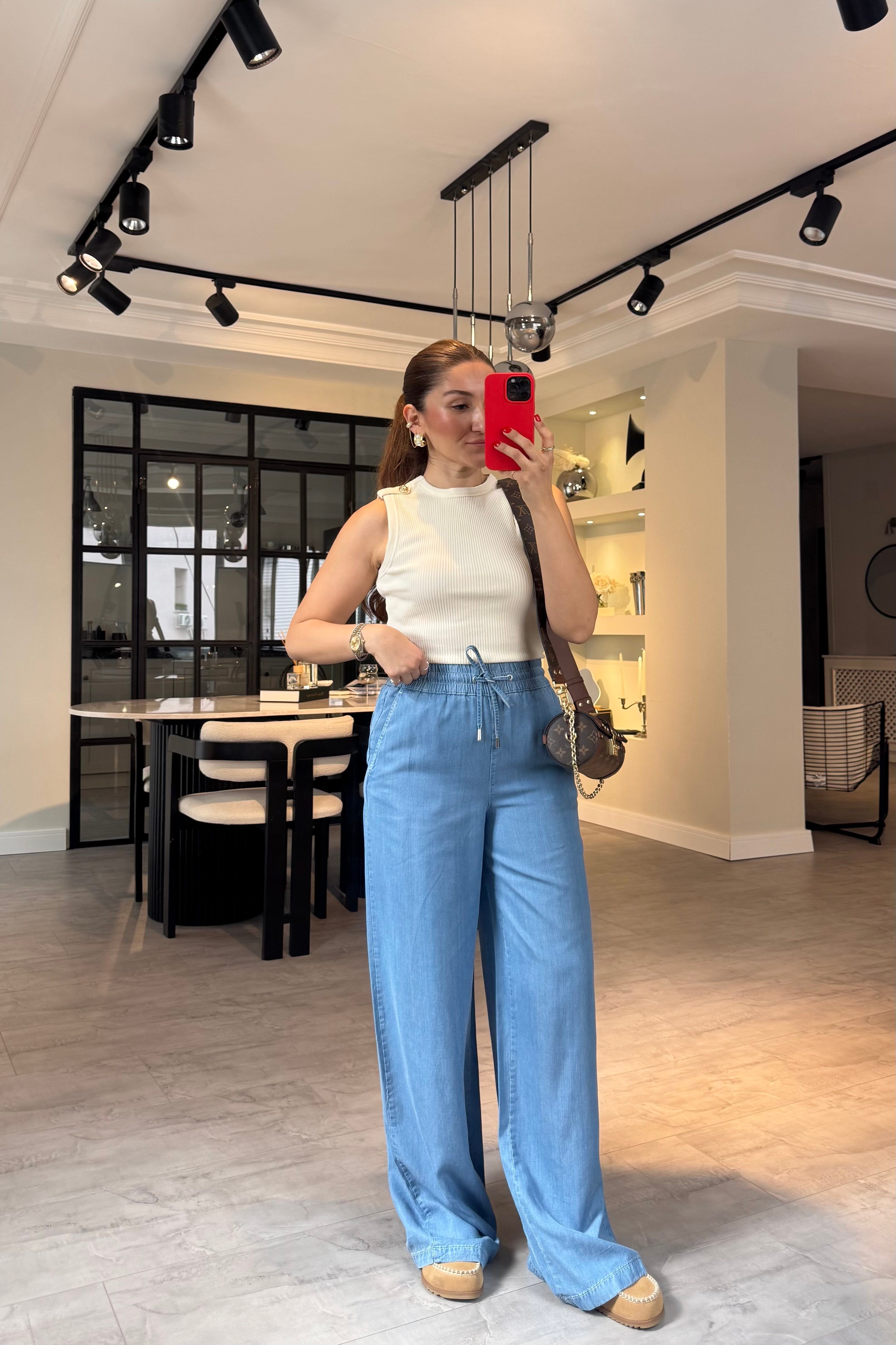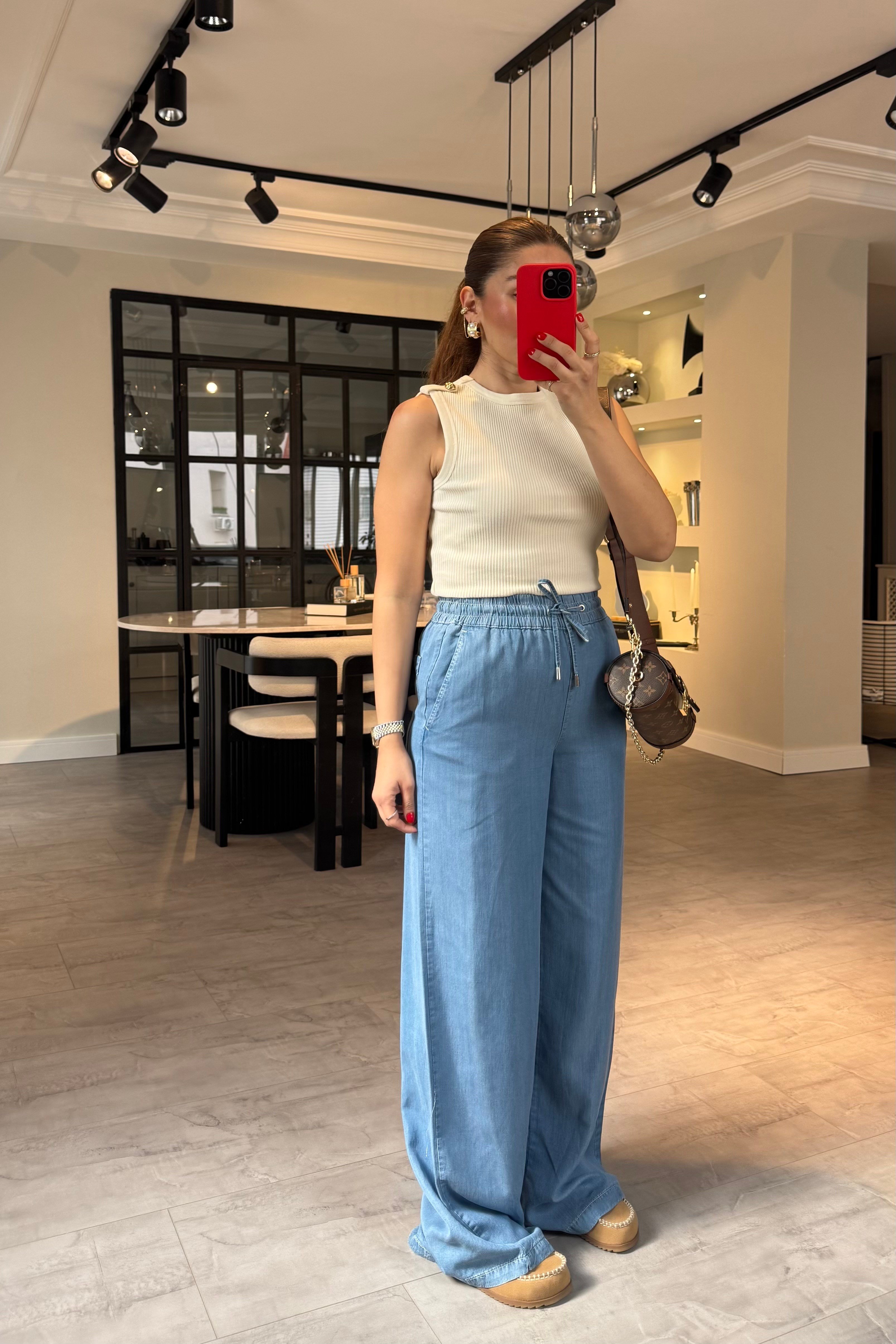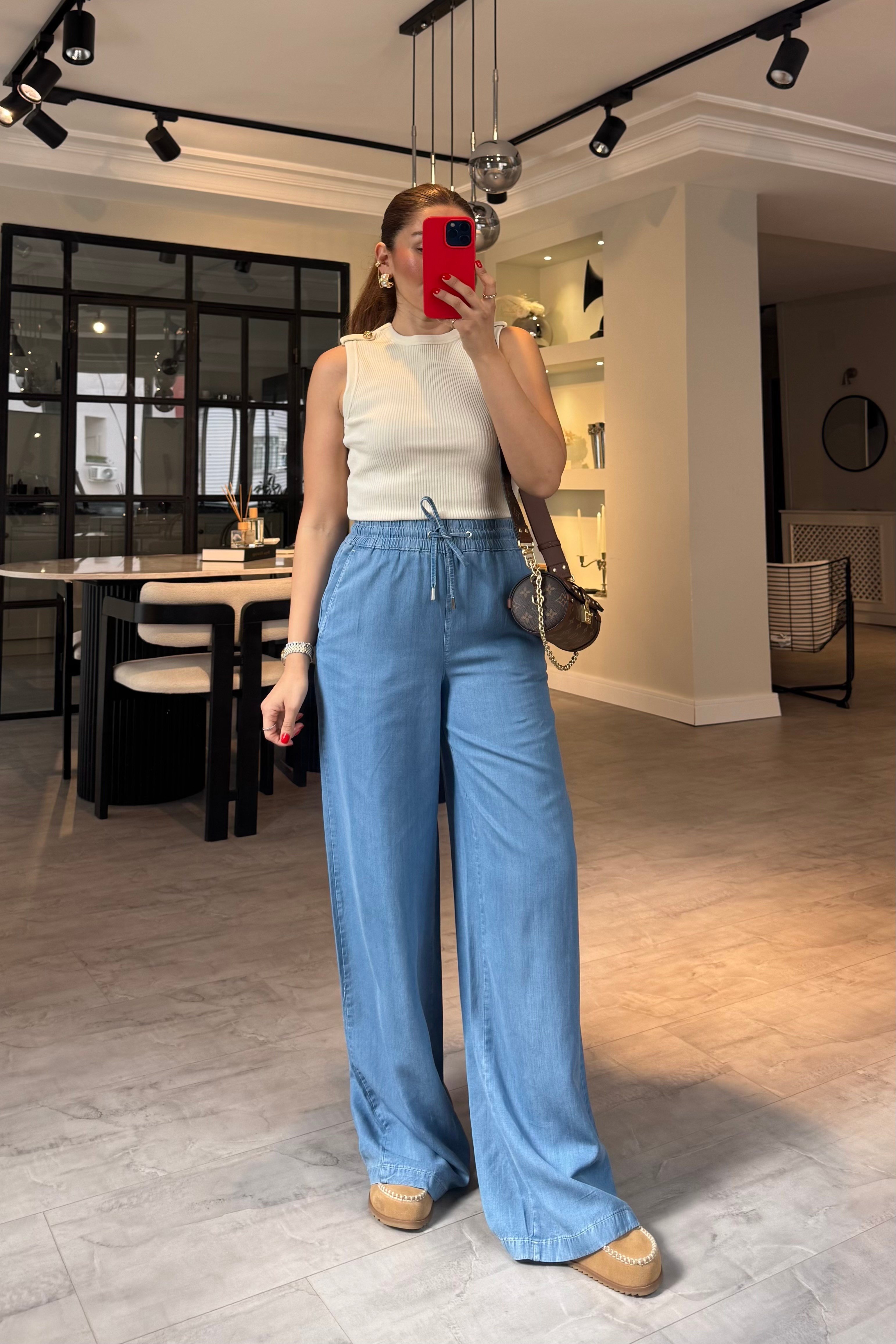 BELİ LASTİKLİ DENİM PALAZZO PANTOLON/0702