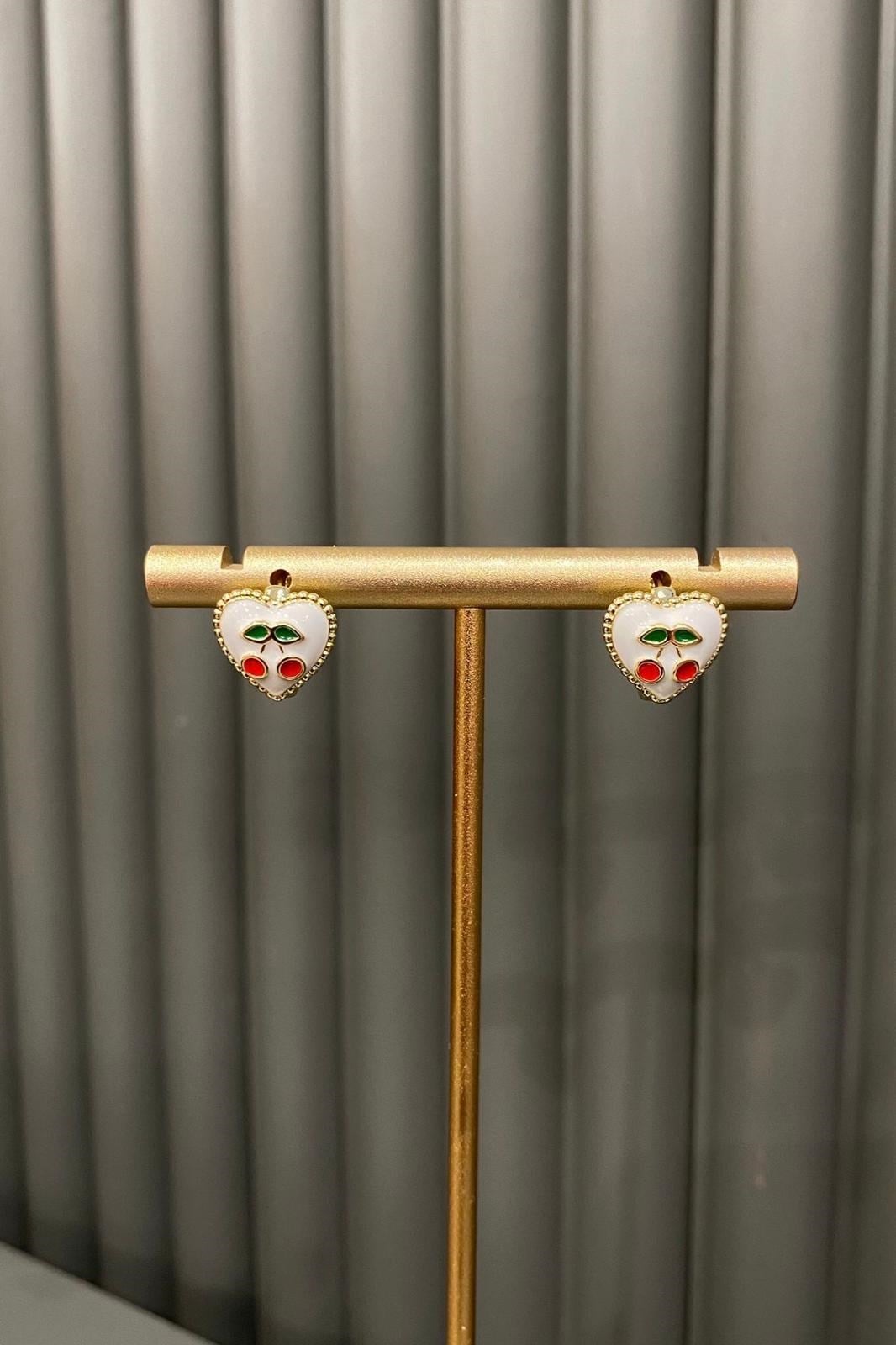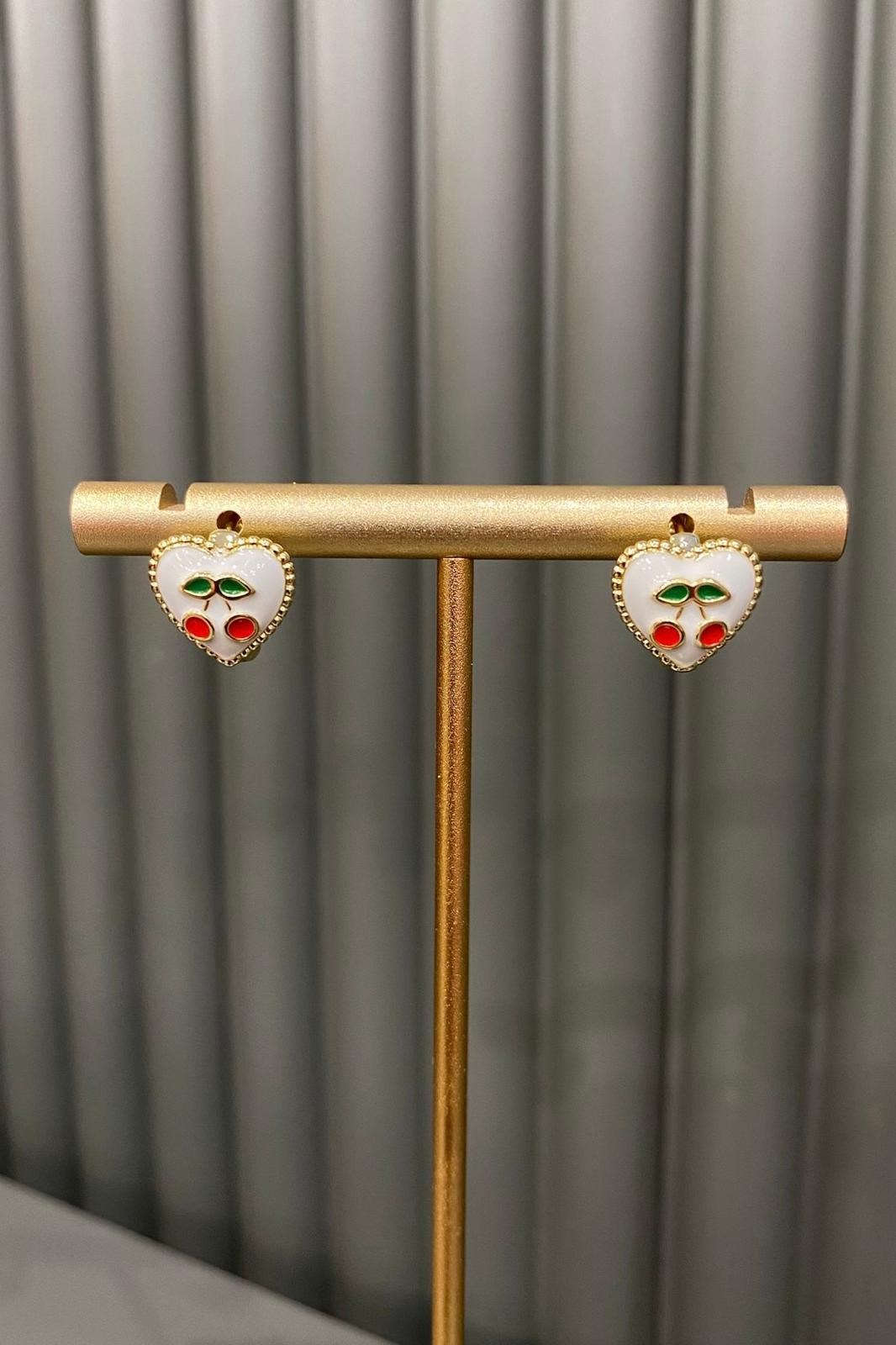 BEYAZ MİNELİ KALP KİRAZ KÜPE (26GBY65065)
