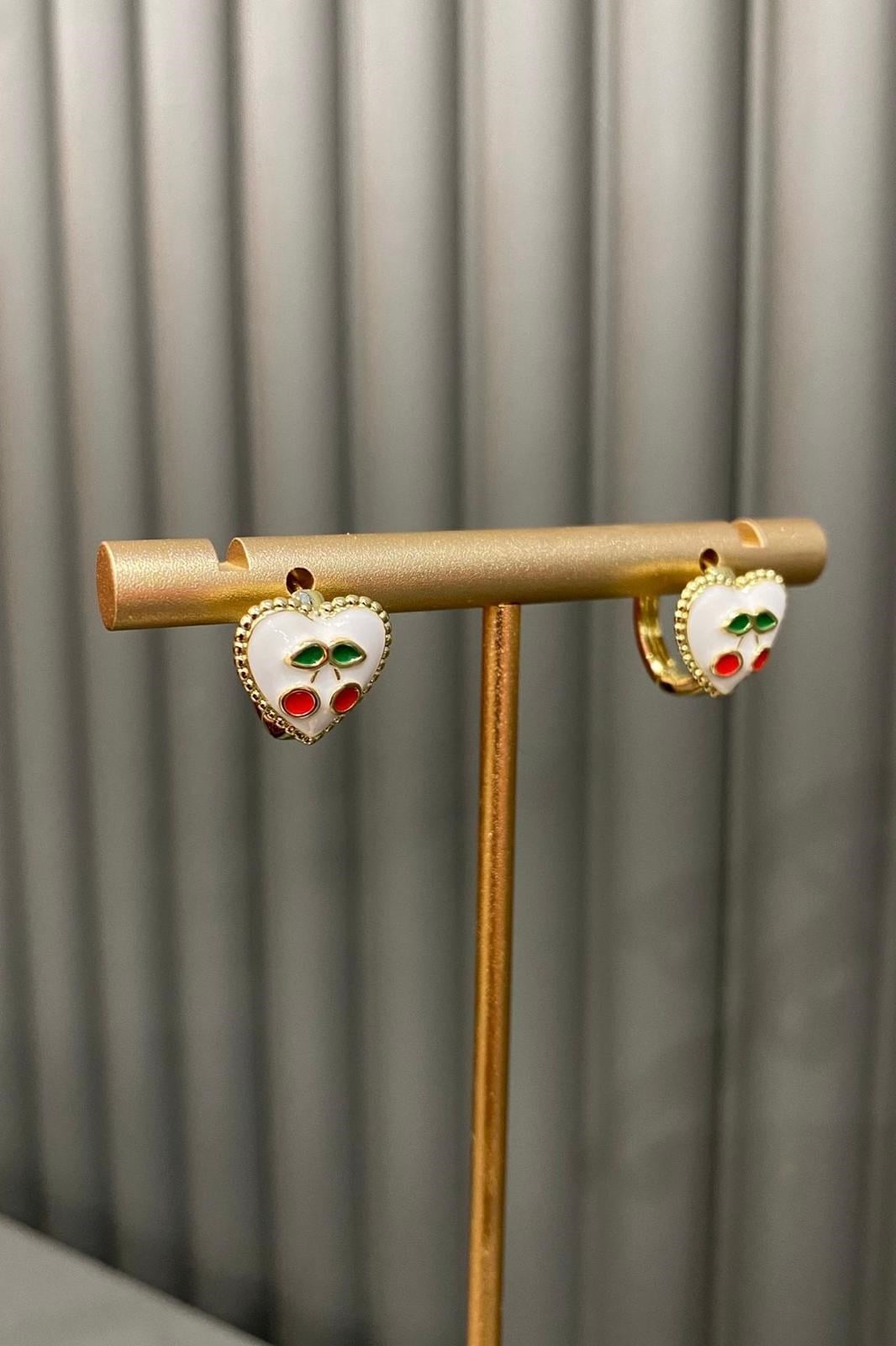 BEYAZ MİNELİ KALP KİRAZ KÜPE