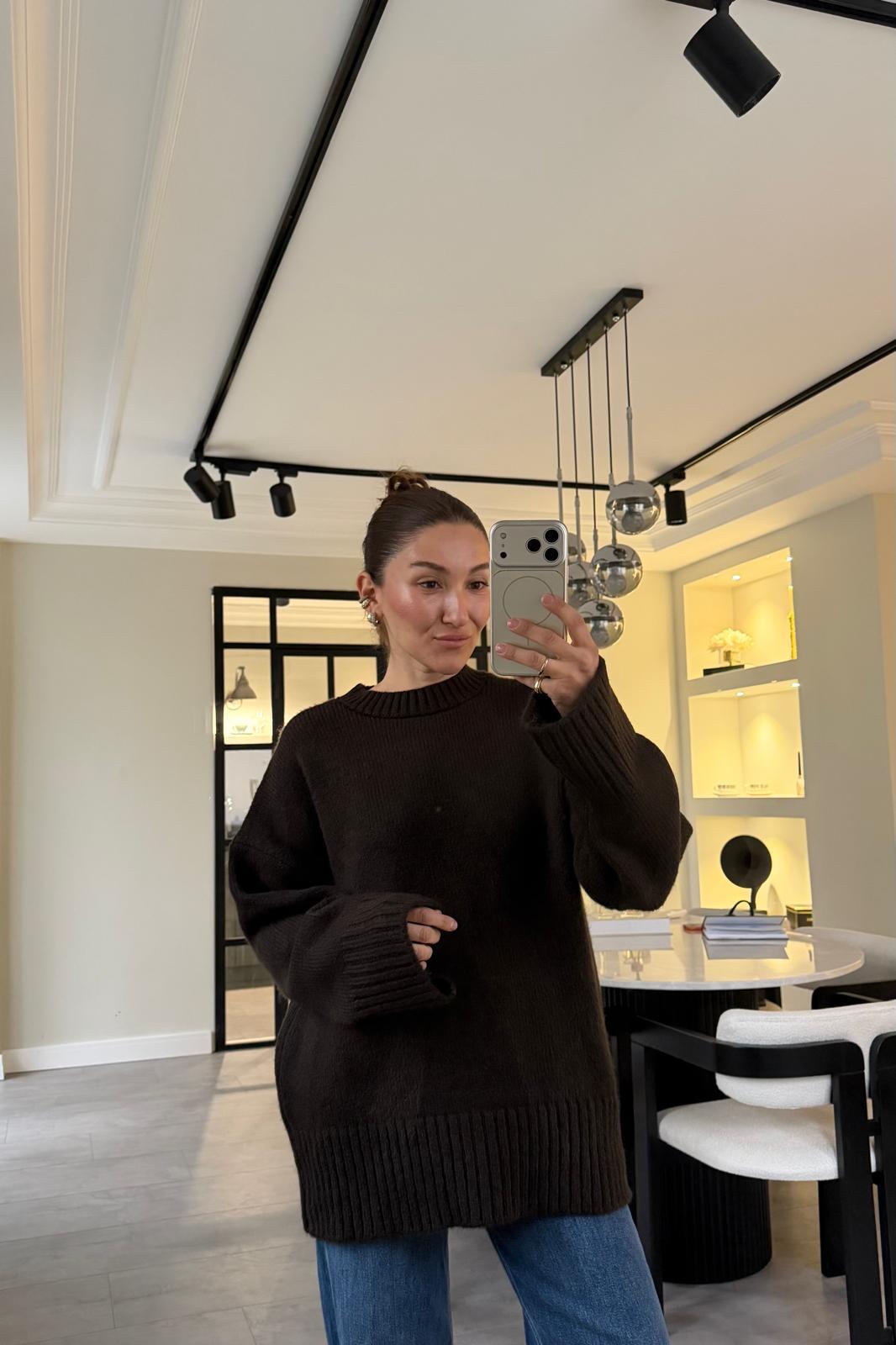 BİSİKLET YAKA OVERSİZE KAZAK