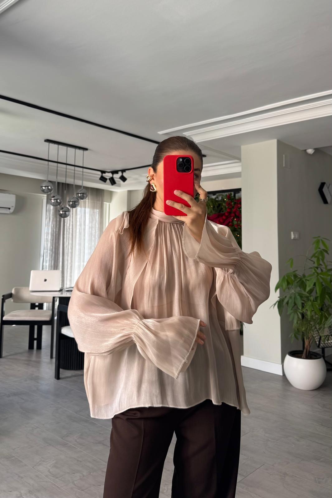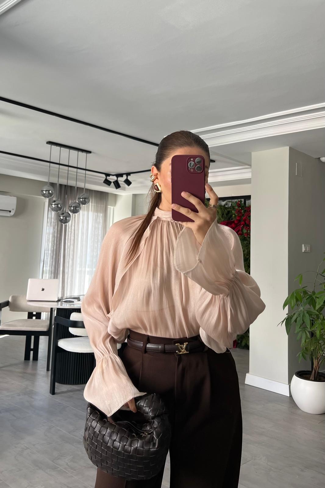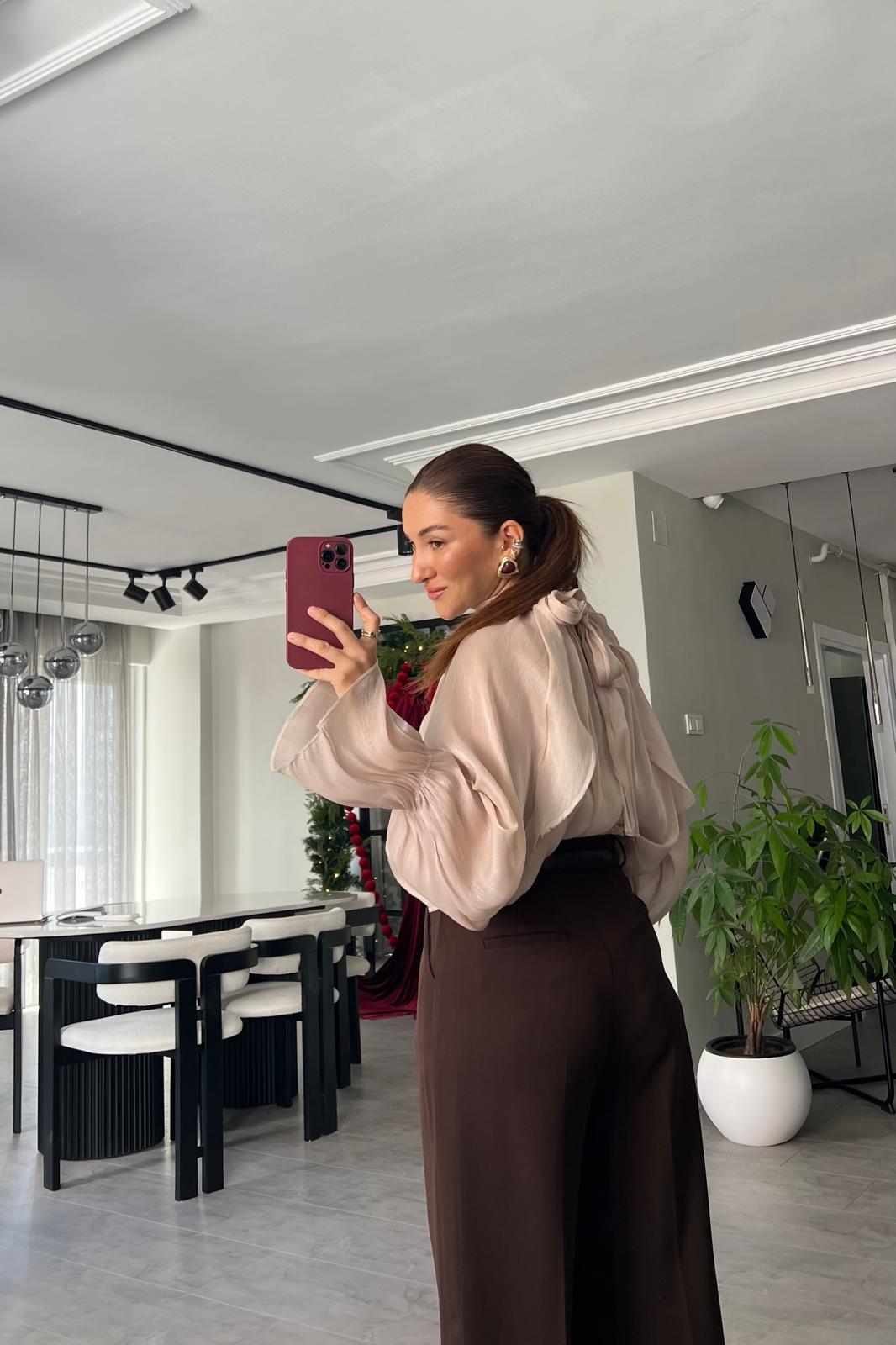 BOĞAZDAN BAĞLAMALI İPEK ŞİFON BLUZ