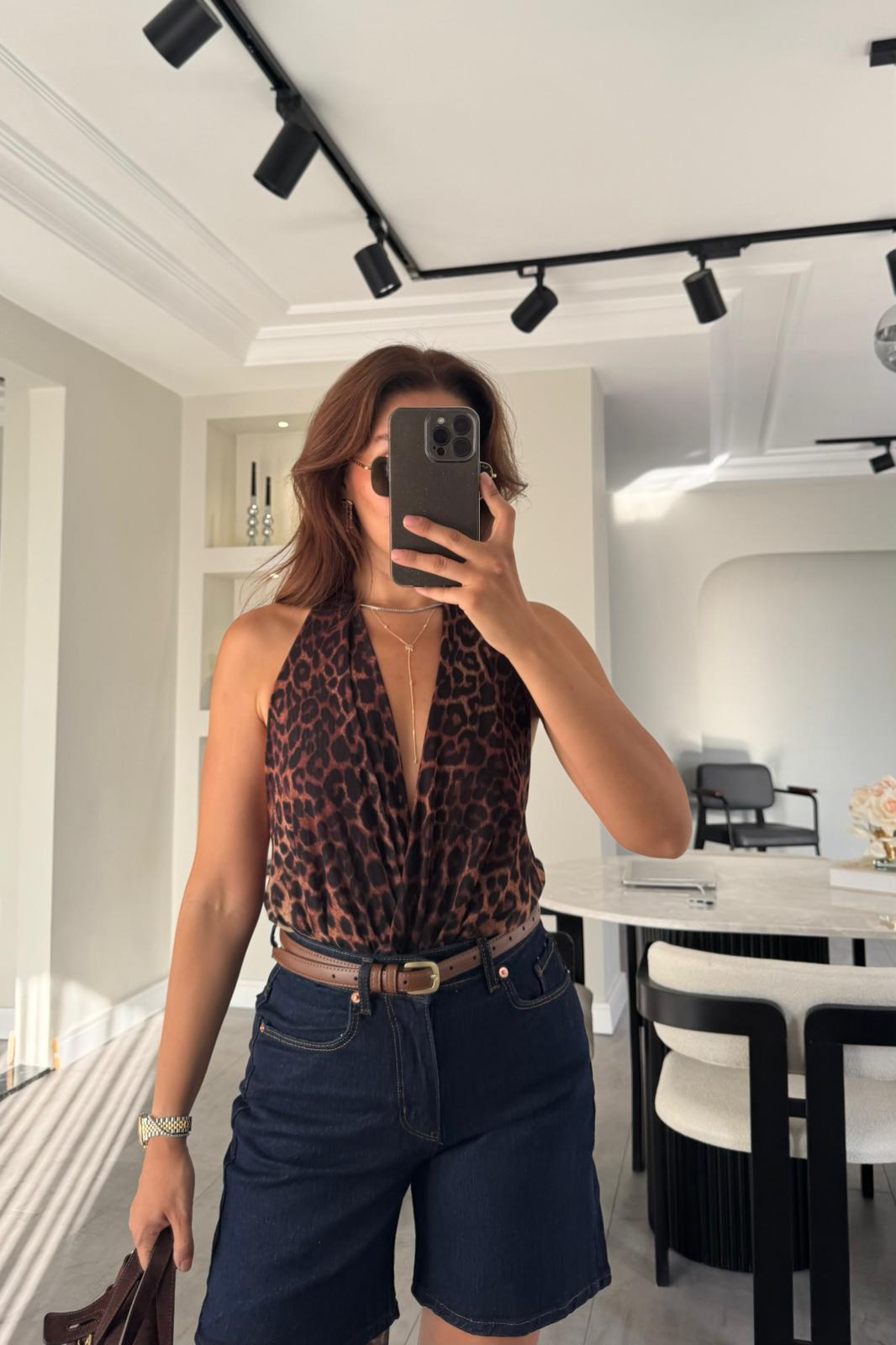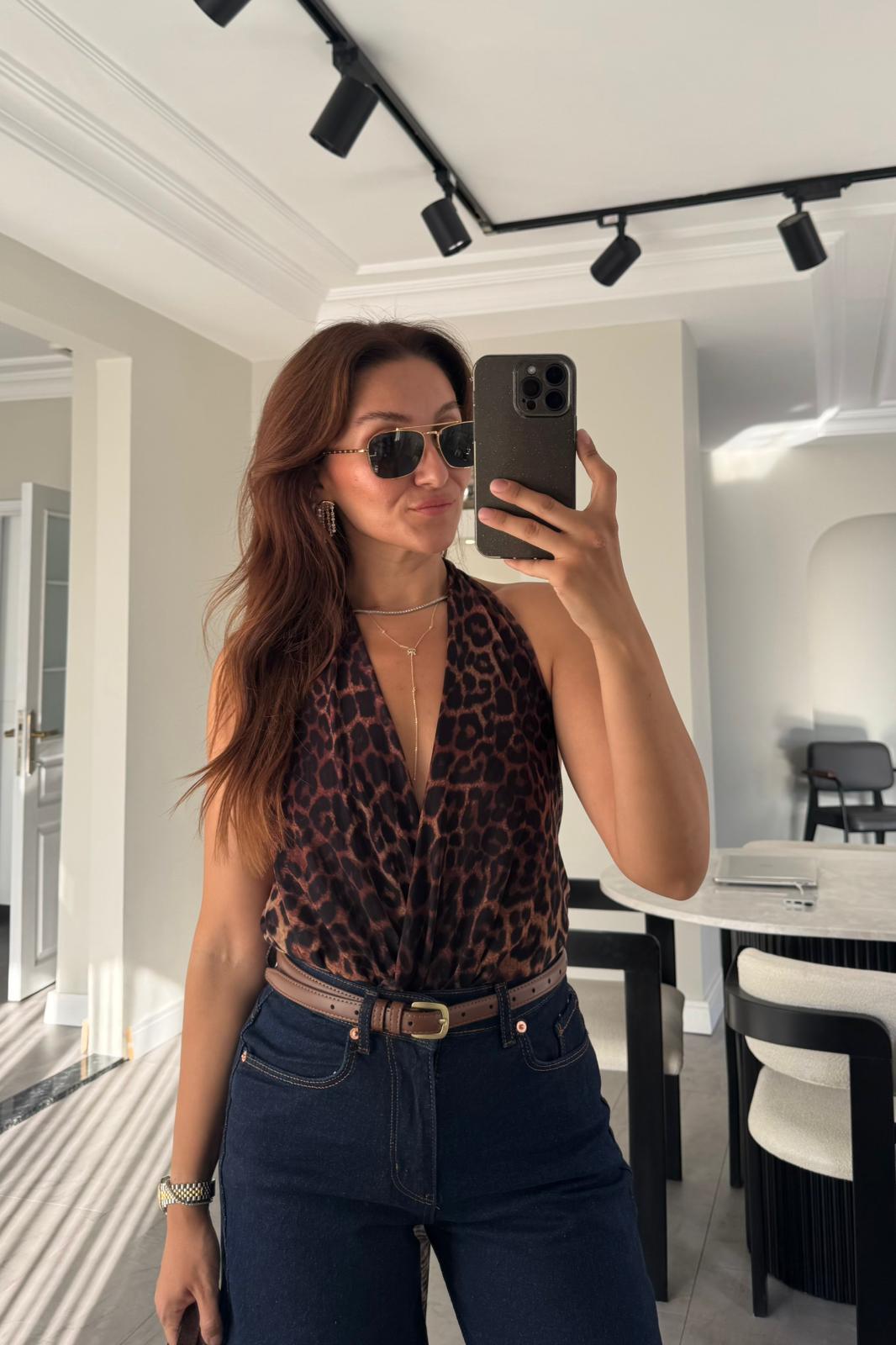 LEOPAR DESEN TÜL BODYSUİT TAM KALIPTIR