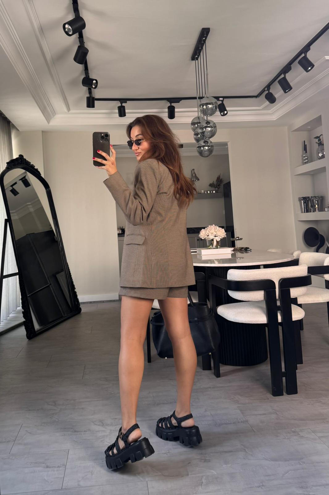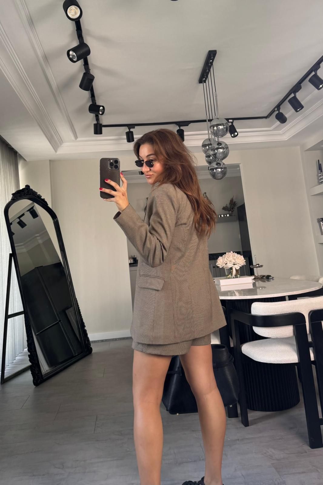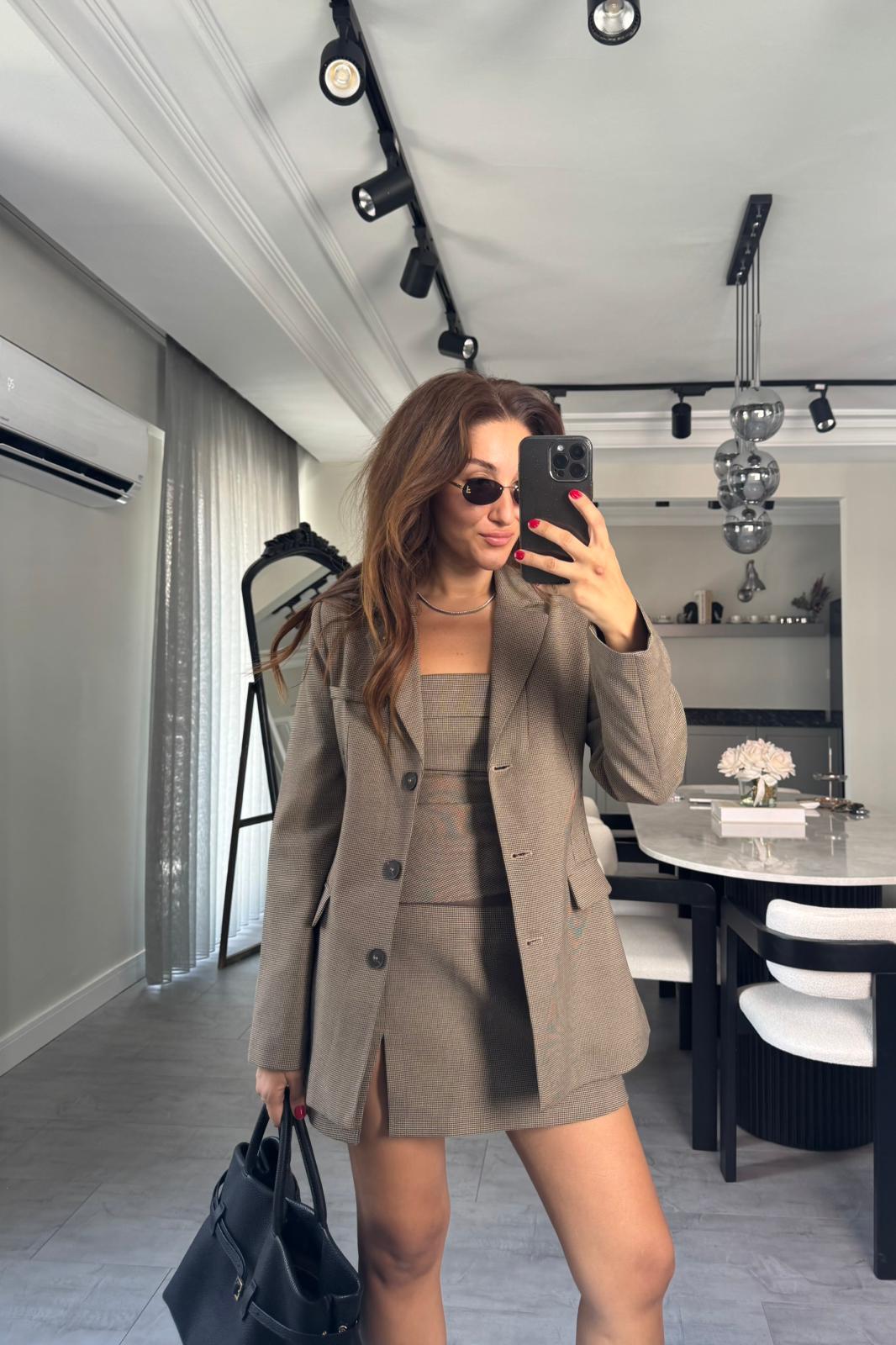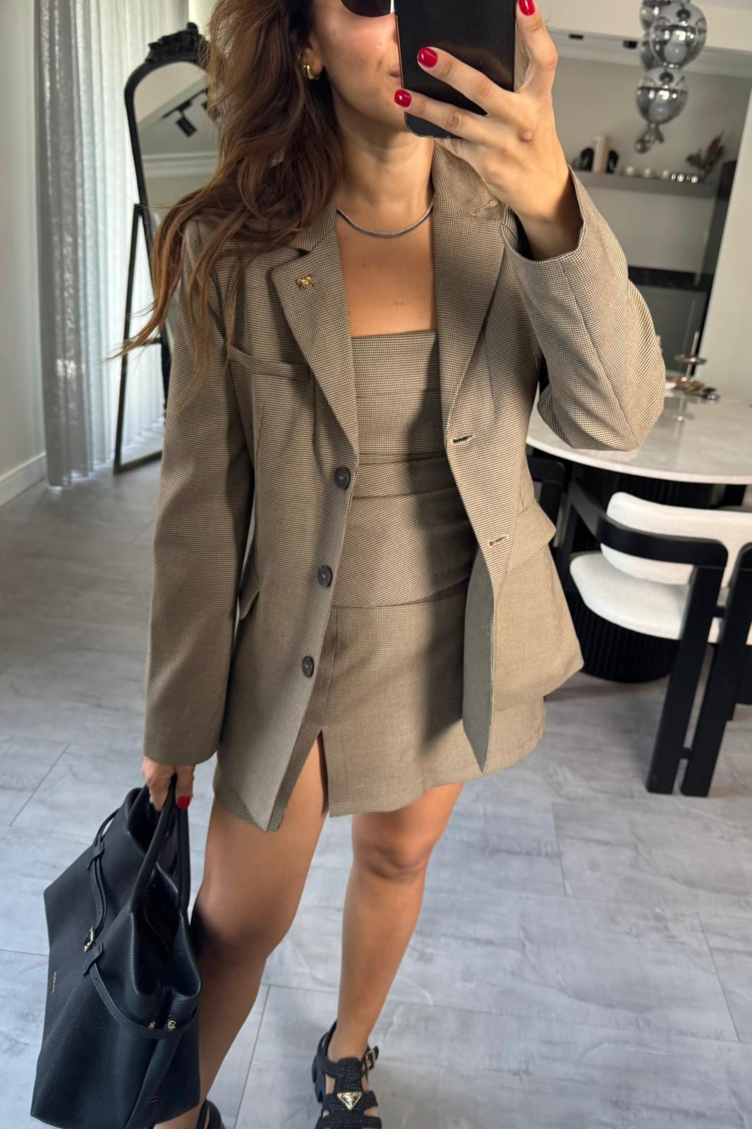 KAZ AYAĞI DESEN TAM KALIP BLAZER CEKET