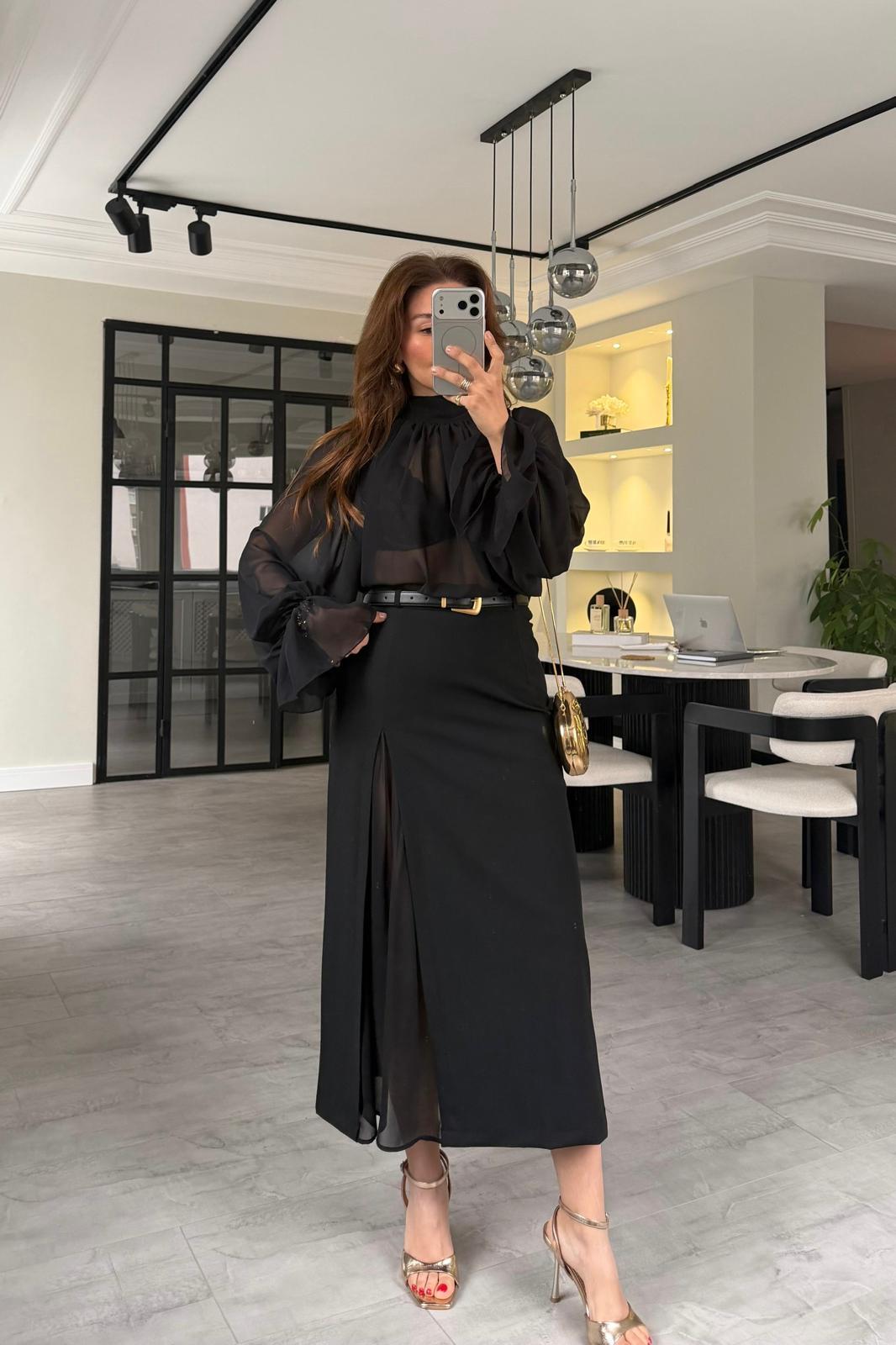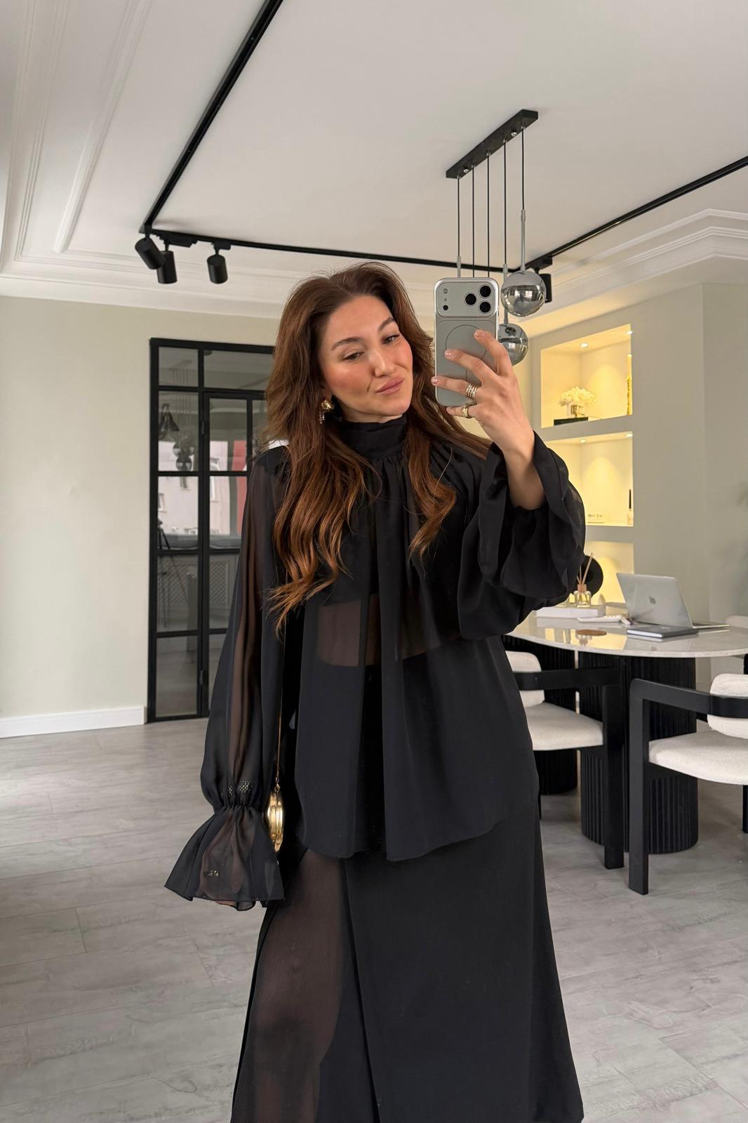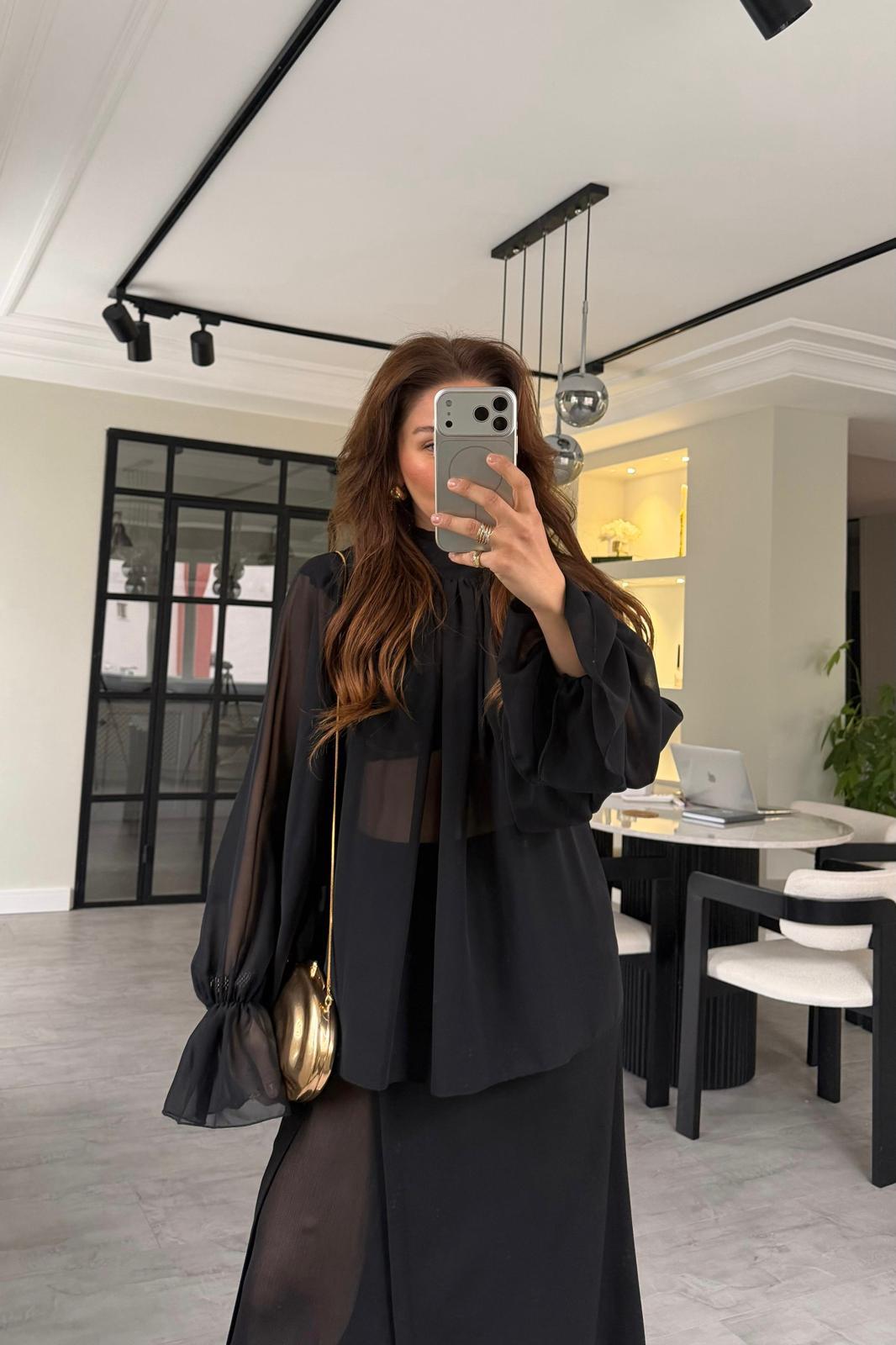 BÜZGÜLÜ ŞİFON TÜL BLUZ/0899