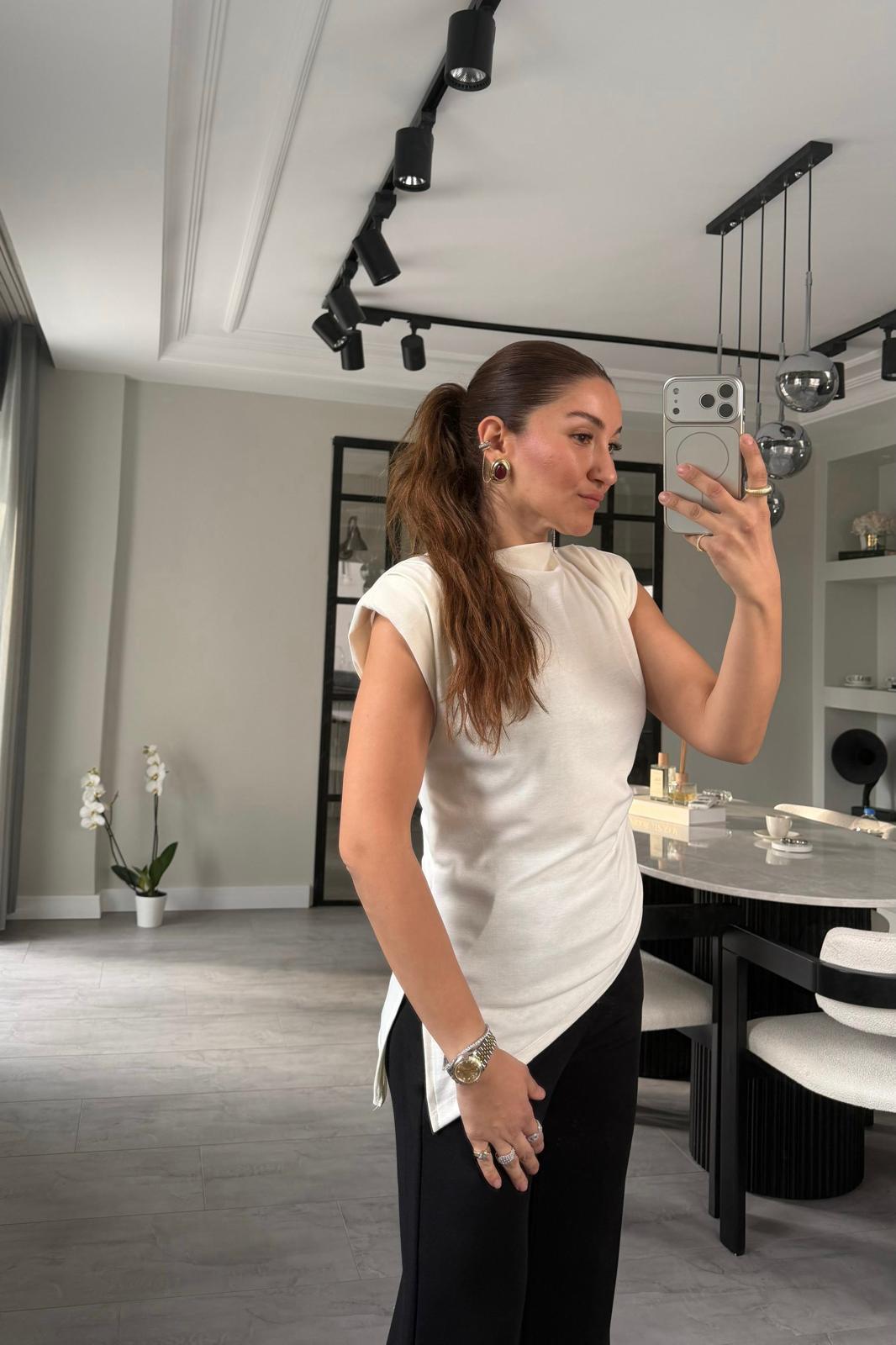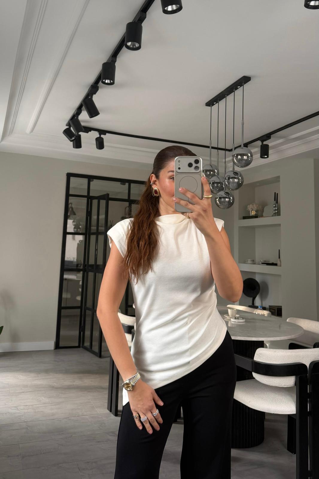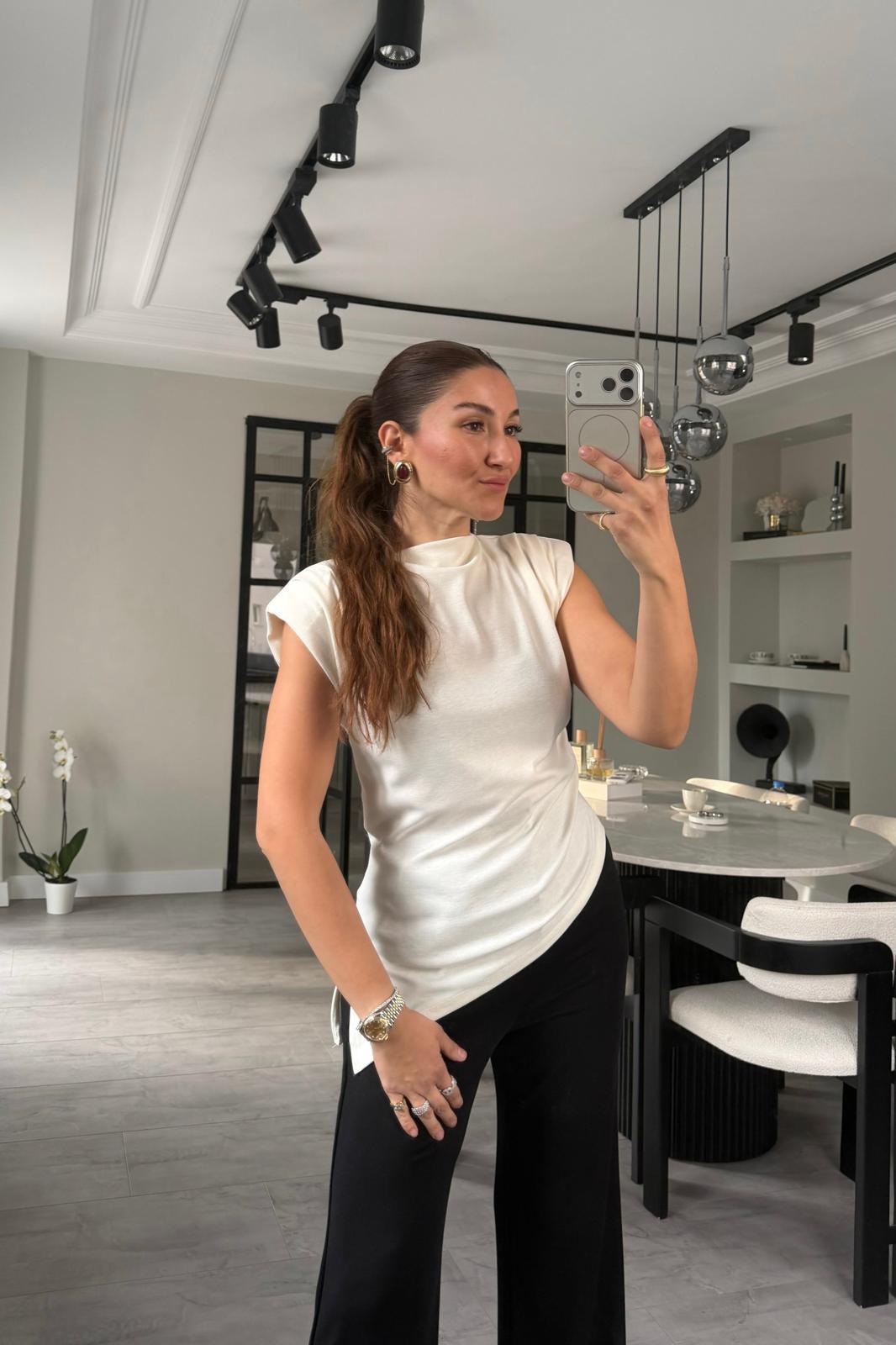 ÇAPRAZ DRAPELİ KOLSUZ HAMUR BODY/22805