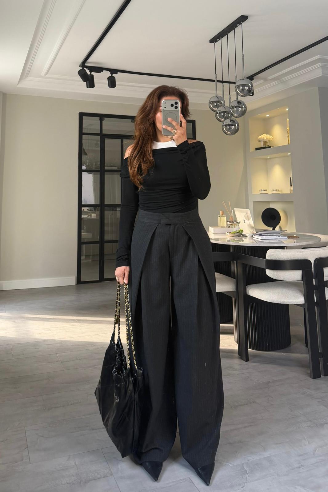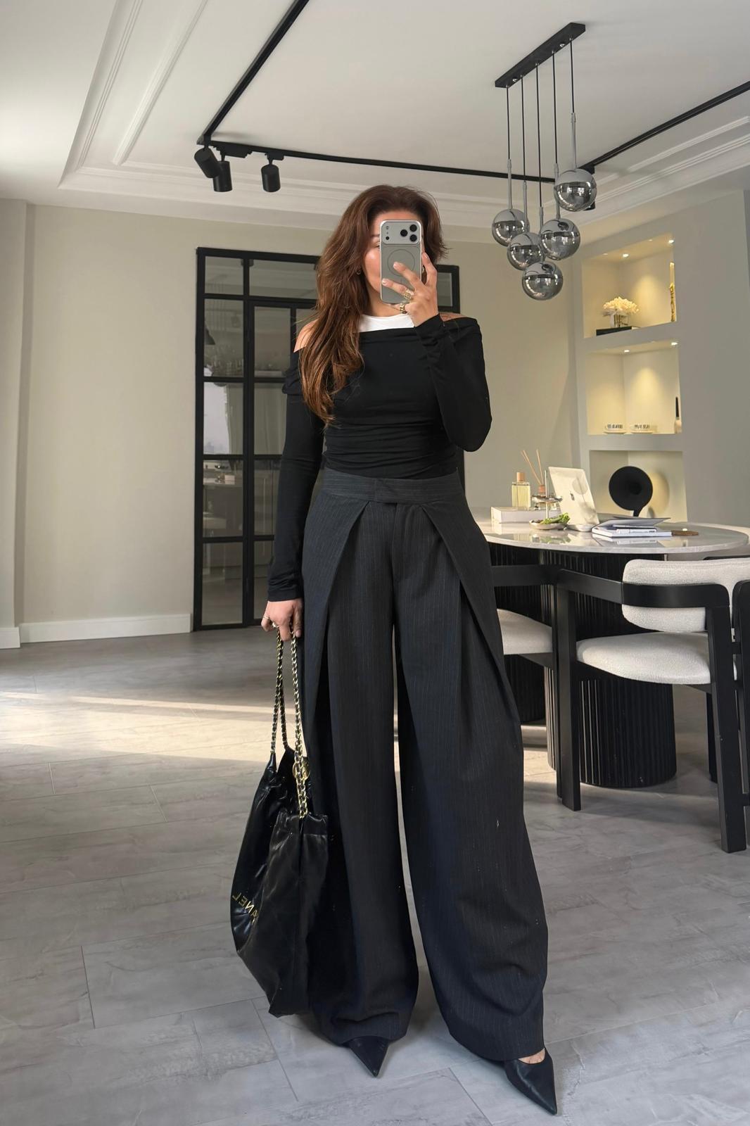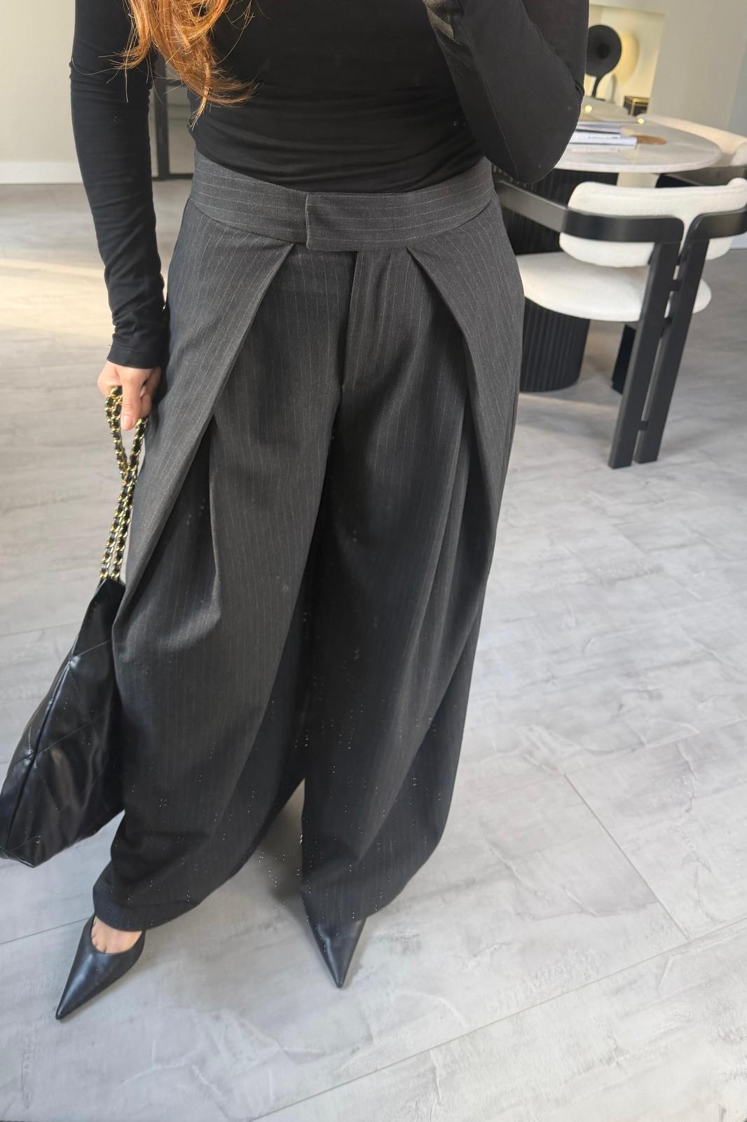 ÇAPRAZ PİLE ÇİZGİLİ GENİŞ PANTOLON/17357