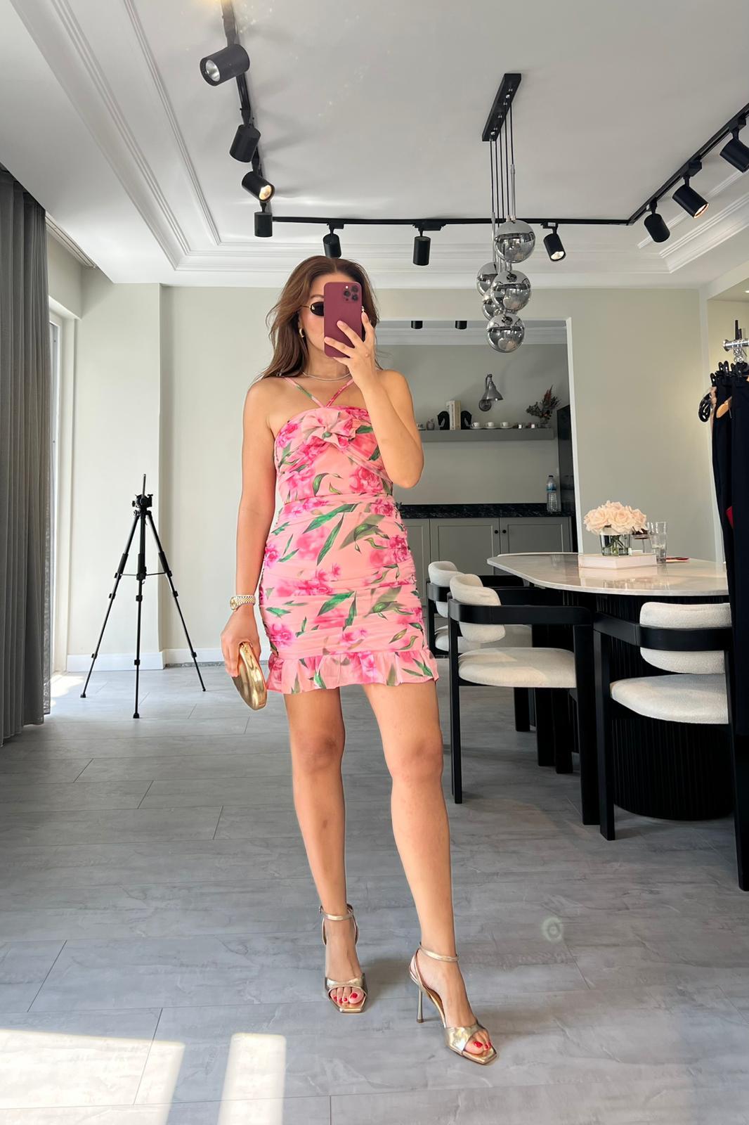 ÇİÇEKLİ MİNİ ŞİFON ELBİSE/11841