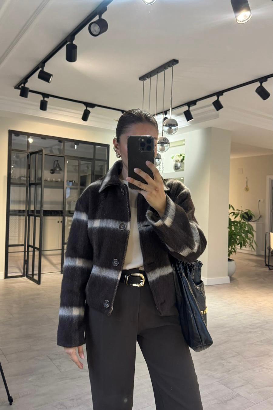 ÇİZGİLİ CROP KAŞE CEKET/5115