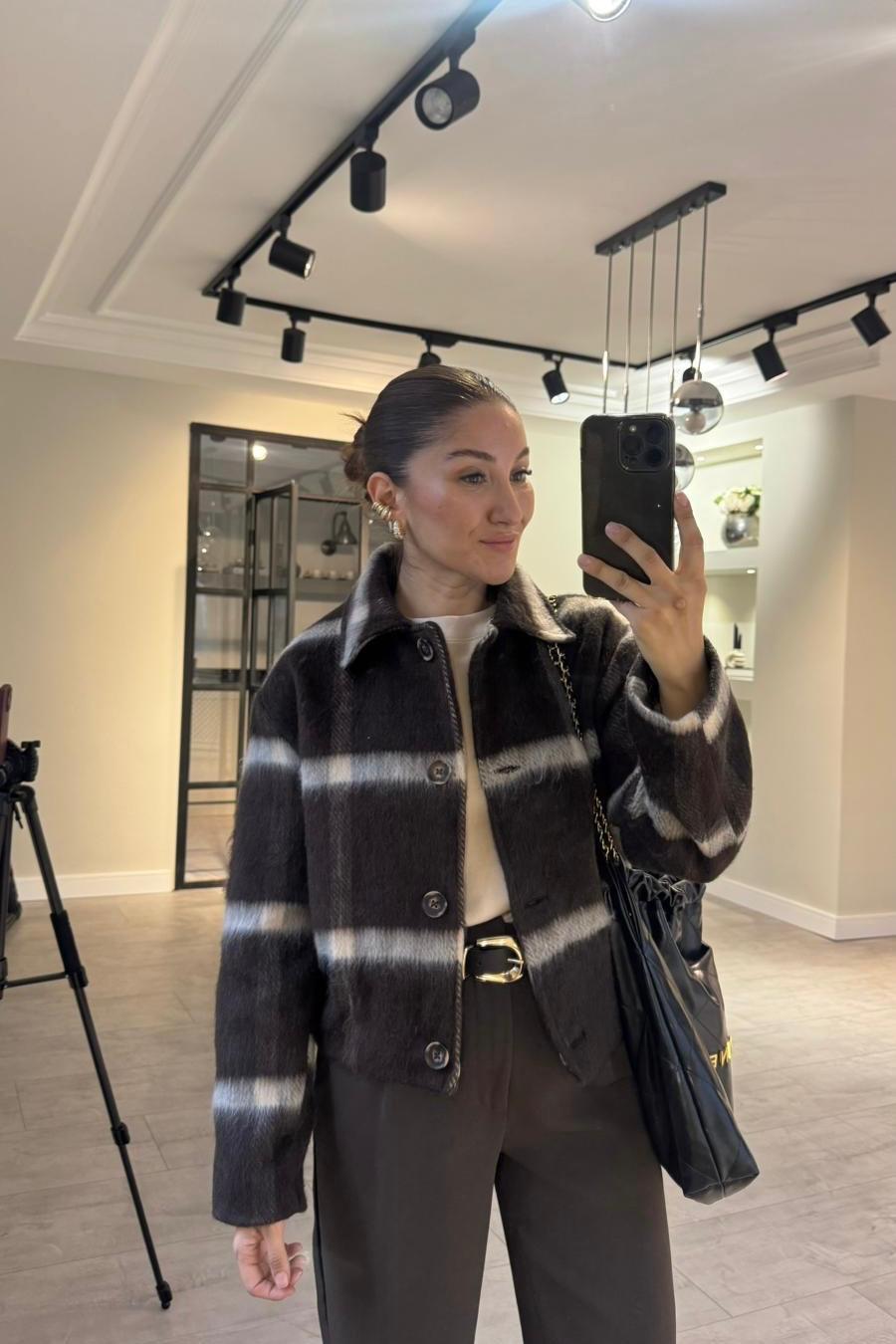 ÇİZGİLİ CROP KAŞE CEKET/5115 (26KFLW0410)