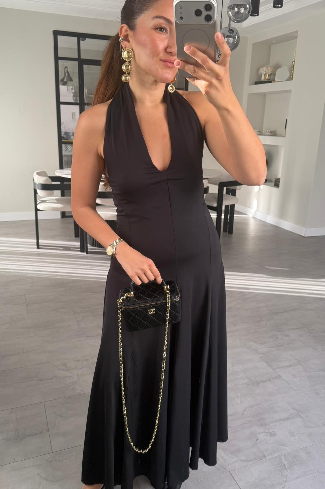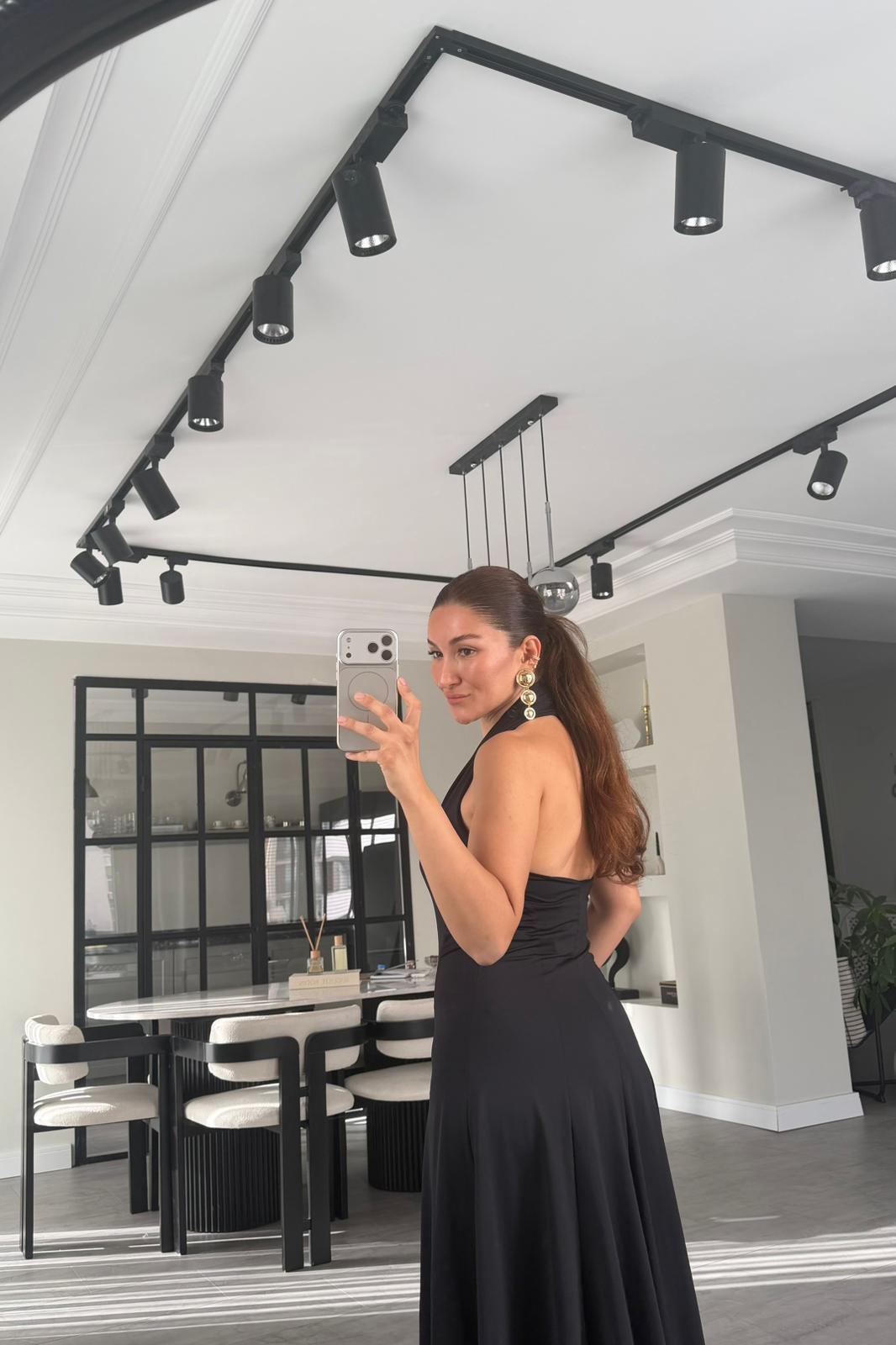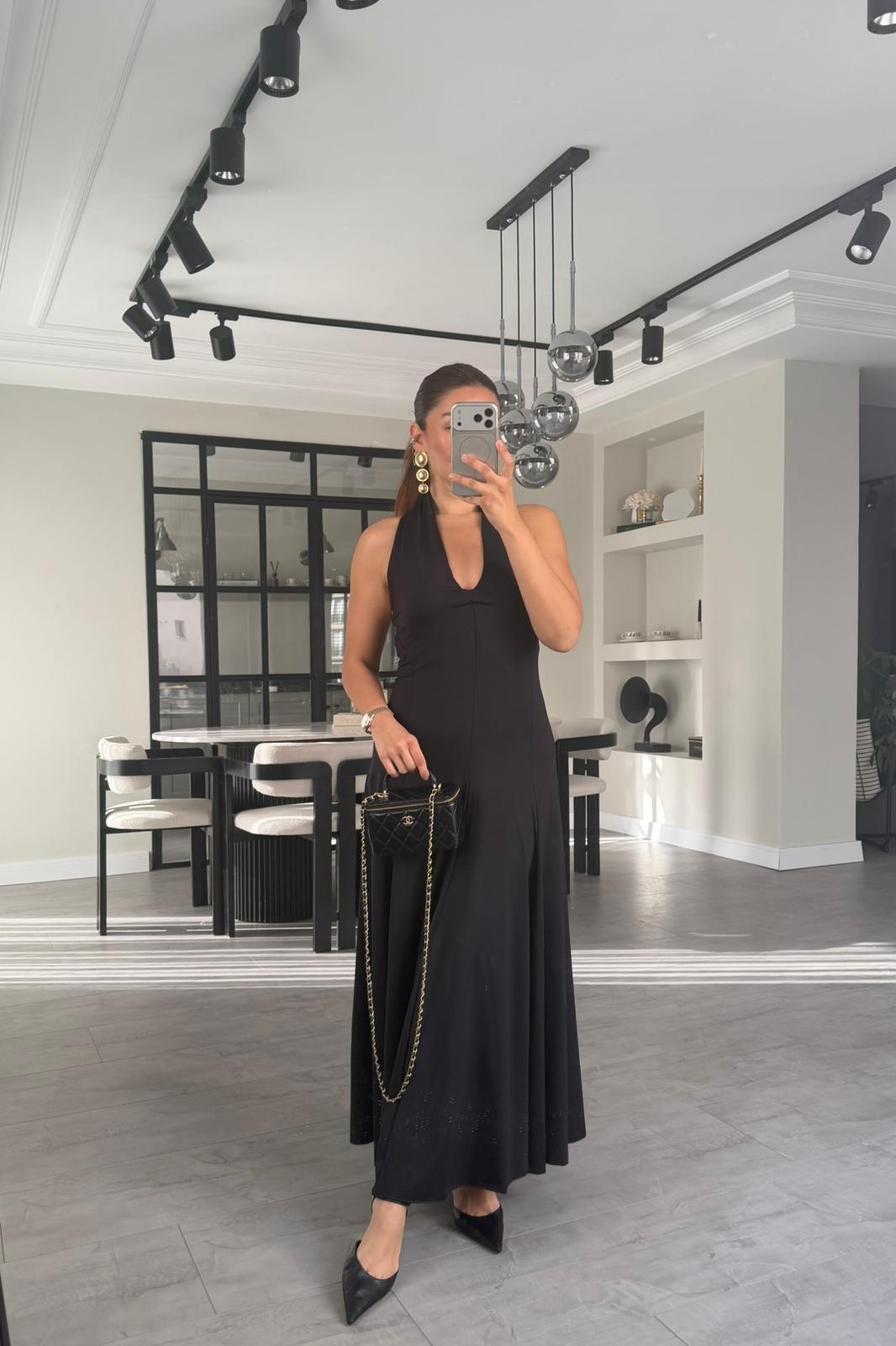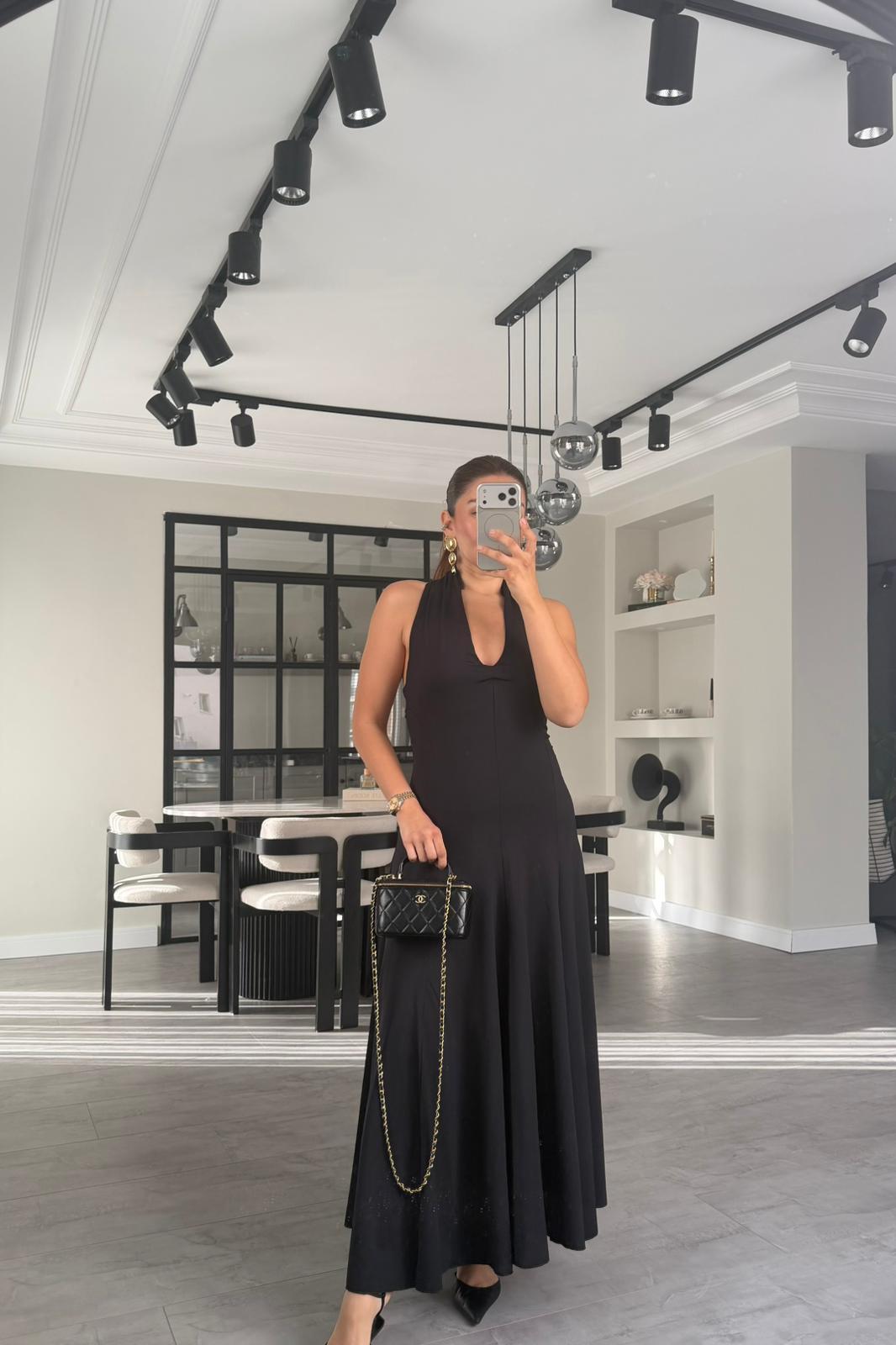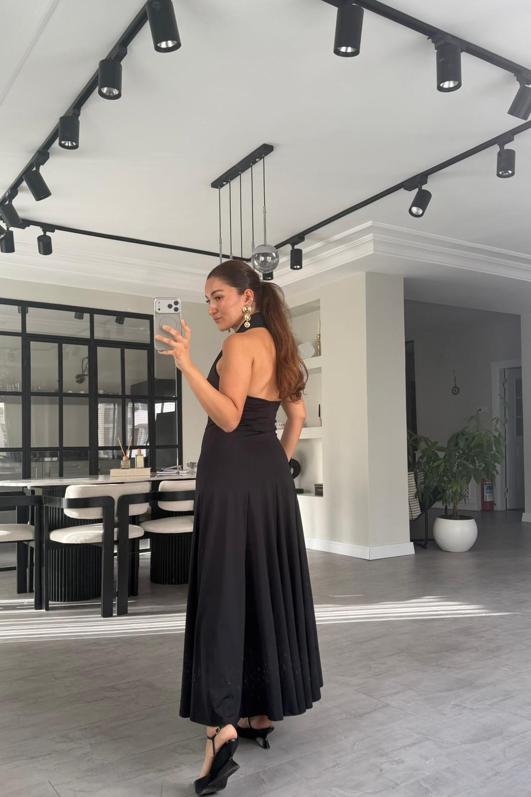 DALGIÇ KUMAŞ BOYUNDAN GEÇMELİ ELBİSE/K147