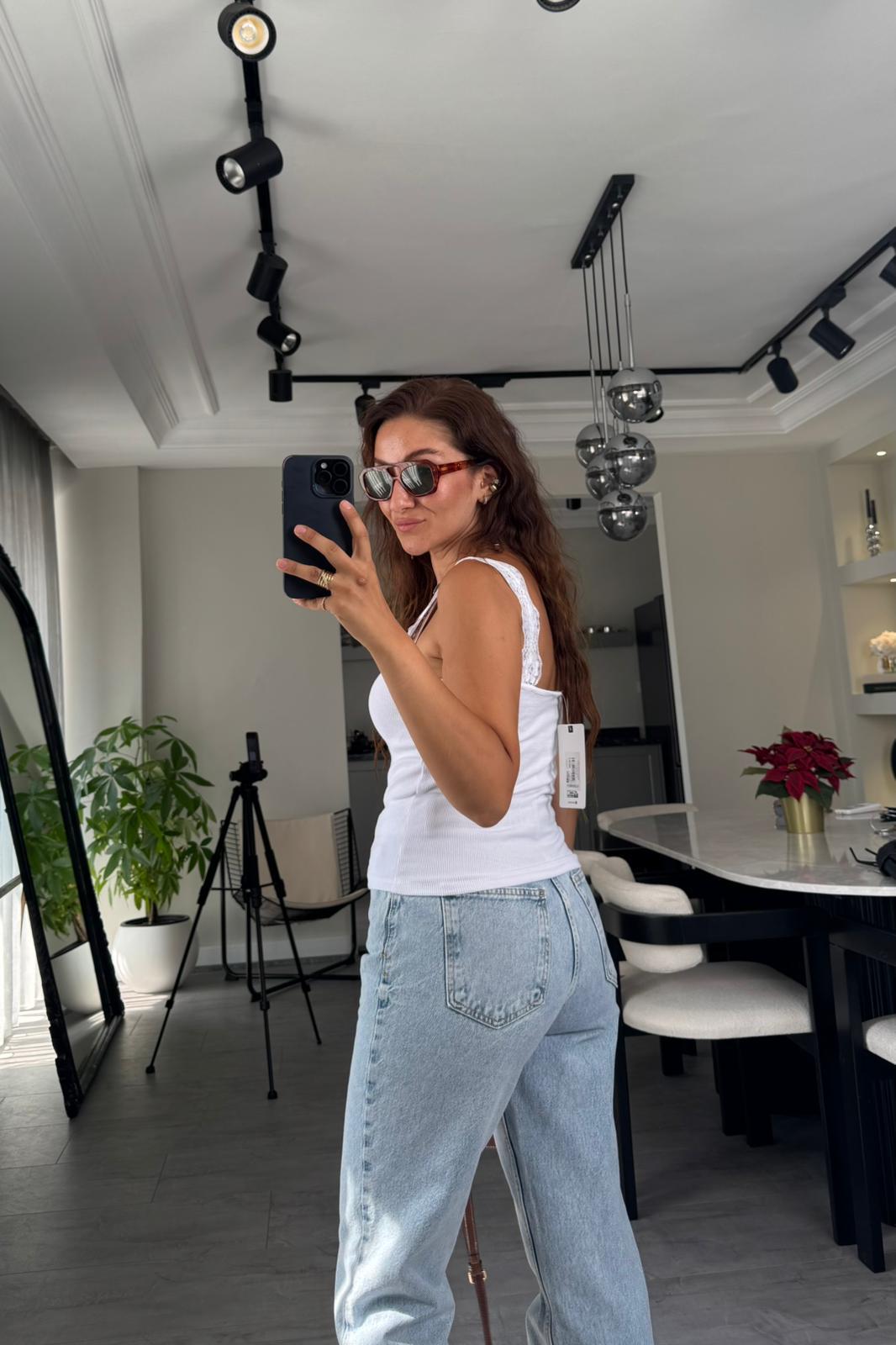 FİTİLLİ KUMAŞ DANTELLİ ATLET