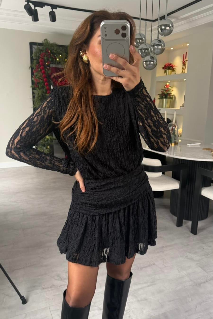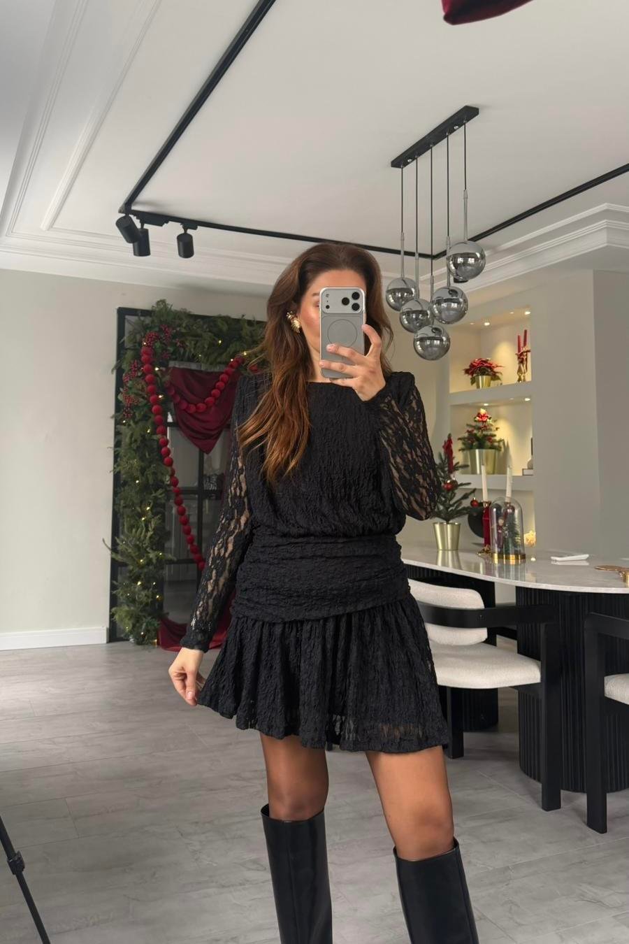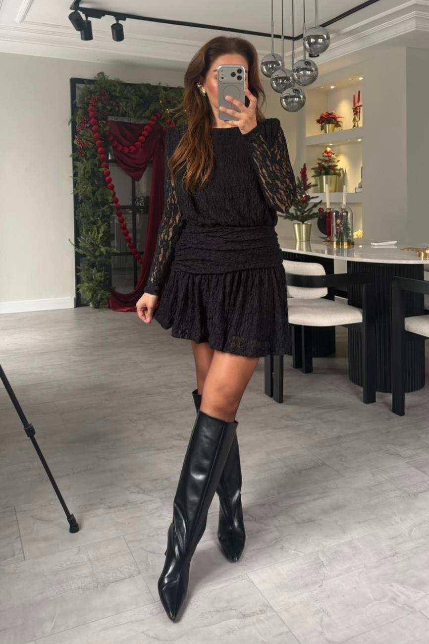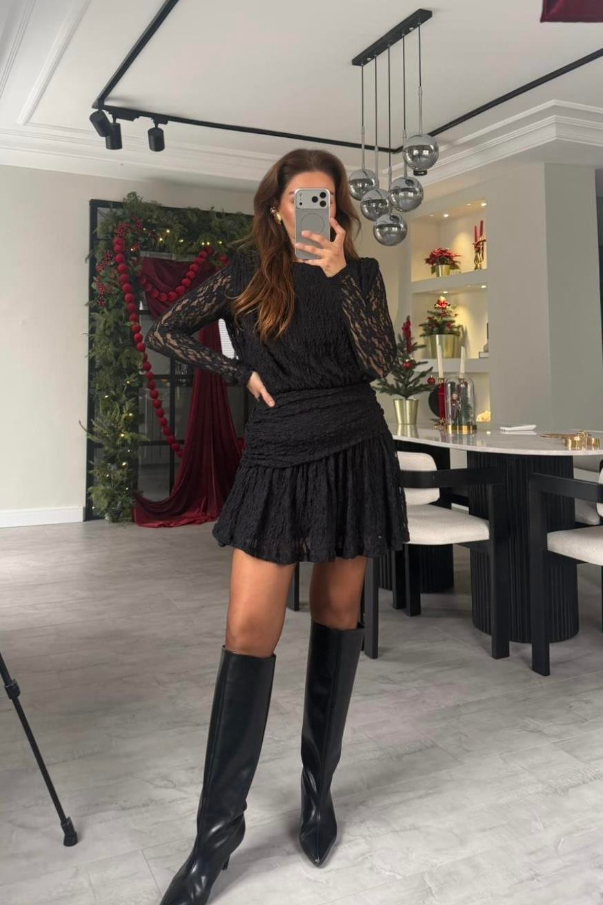 DANTEL GÜPÜRLÜ MİNİ ELBİSE