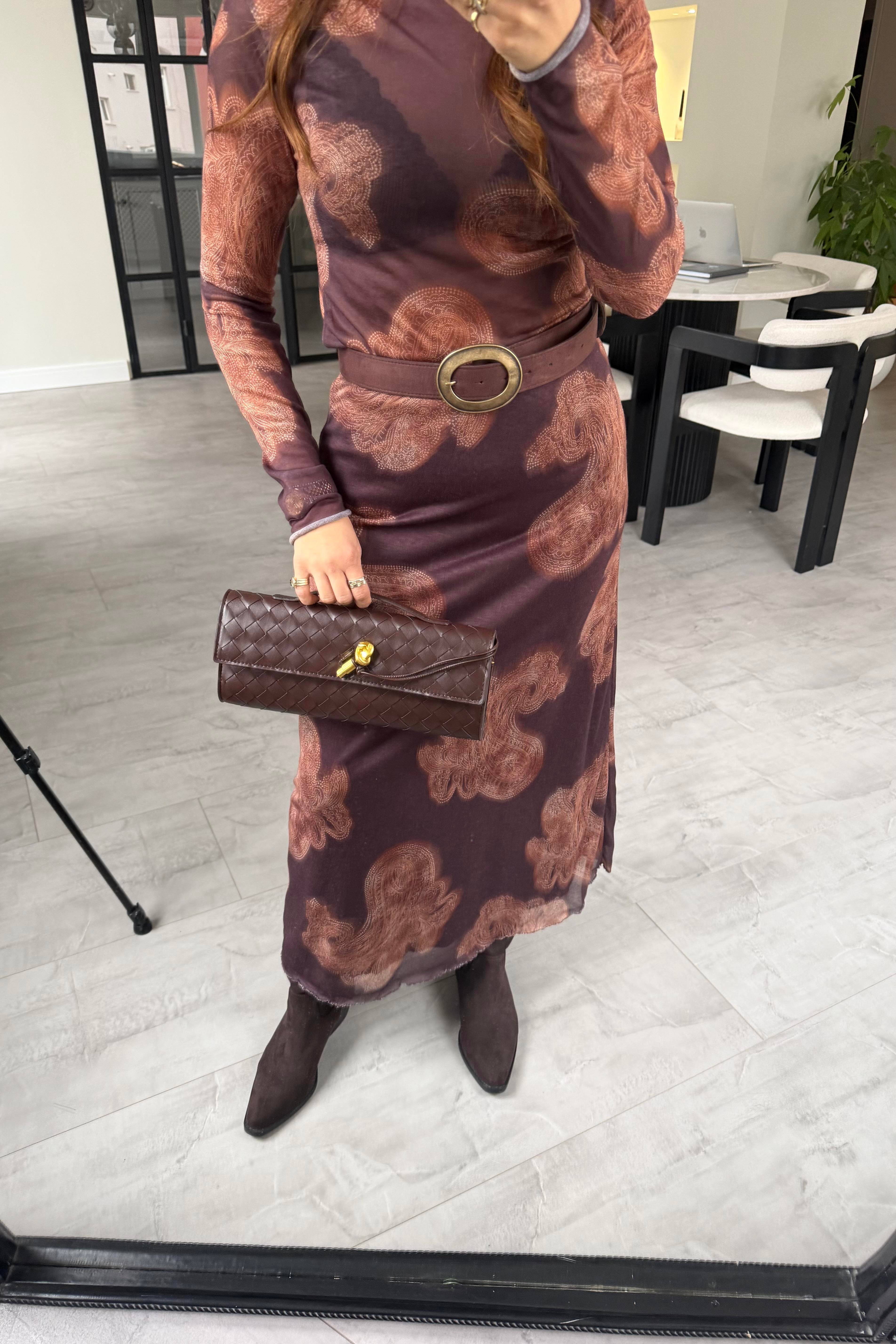 DESENLİ BELİ LASTİKLİ MAKSİ ETEK/10588