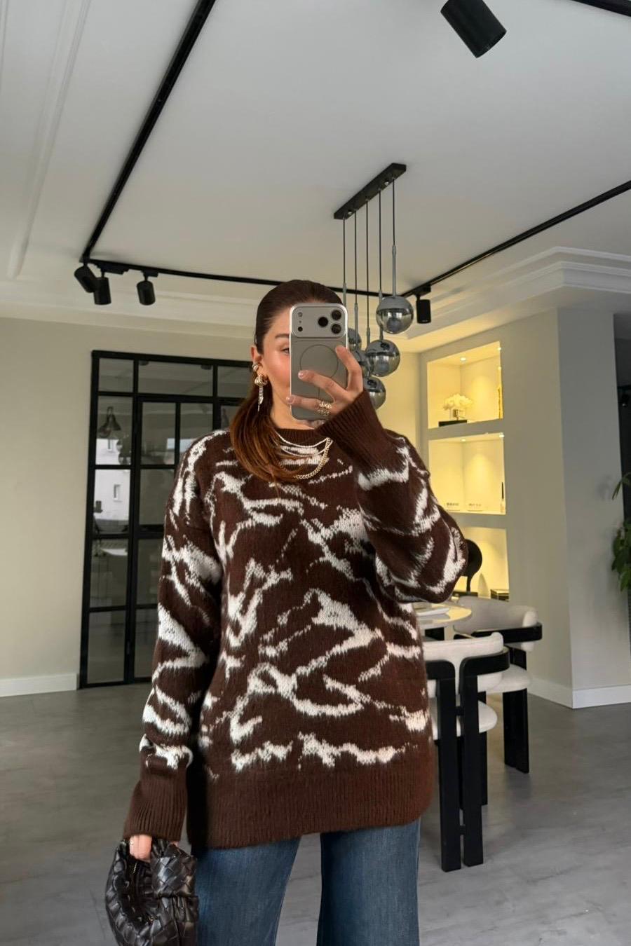 DESENLİ OVERSİZE KAZAK/0138