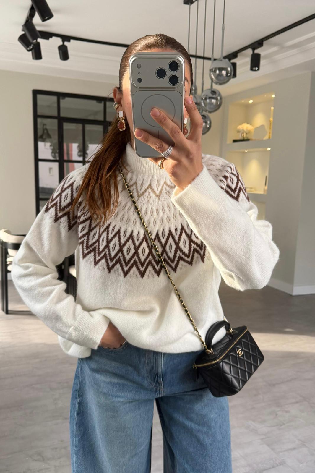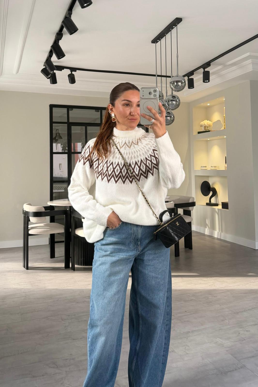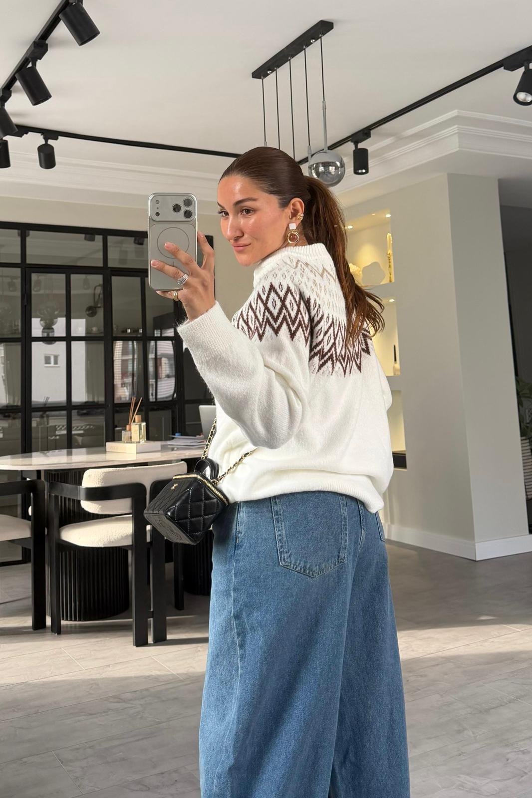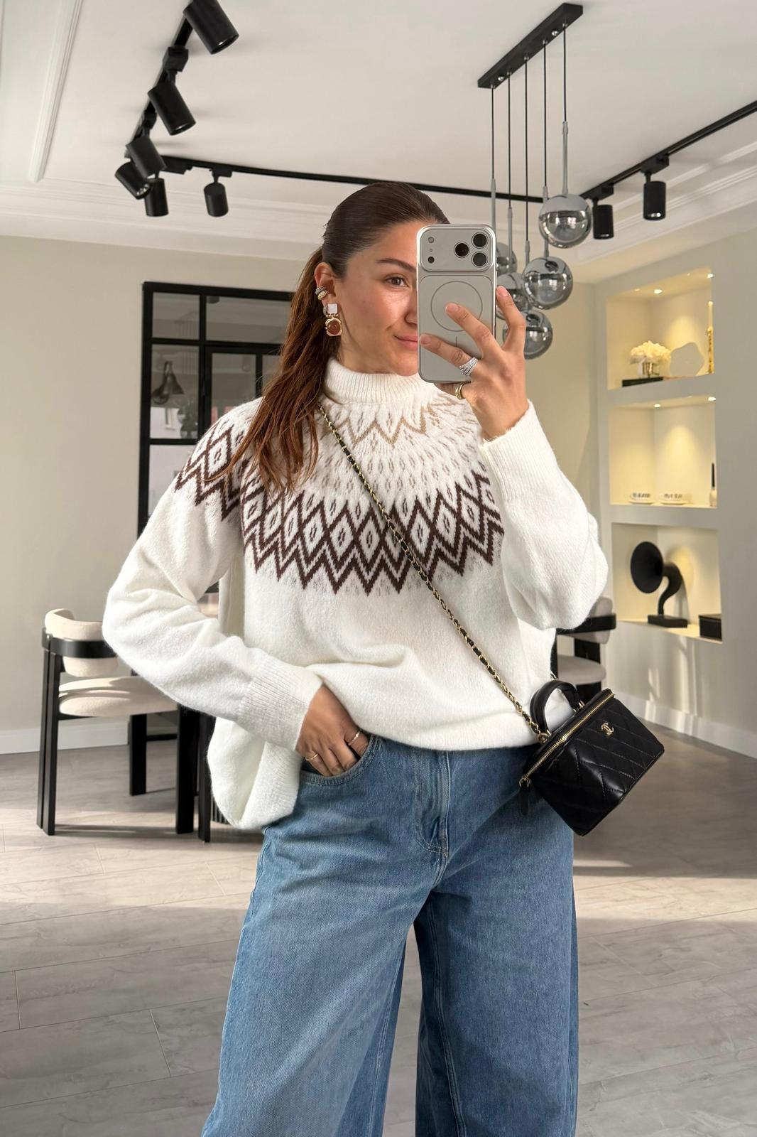 DİK YAKA BAKLAVA DESEN KAZAK/1187