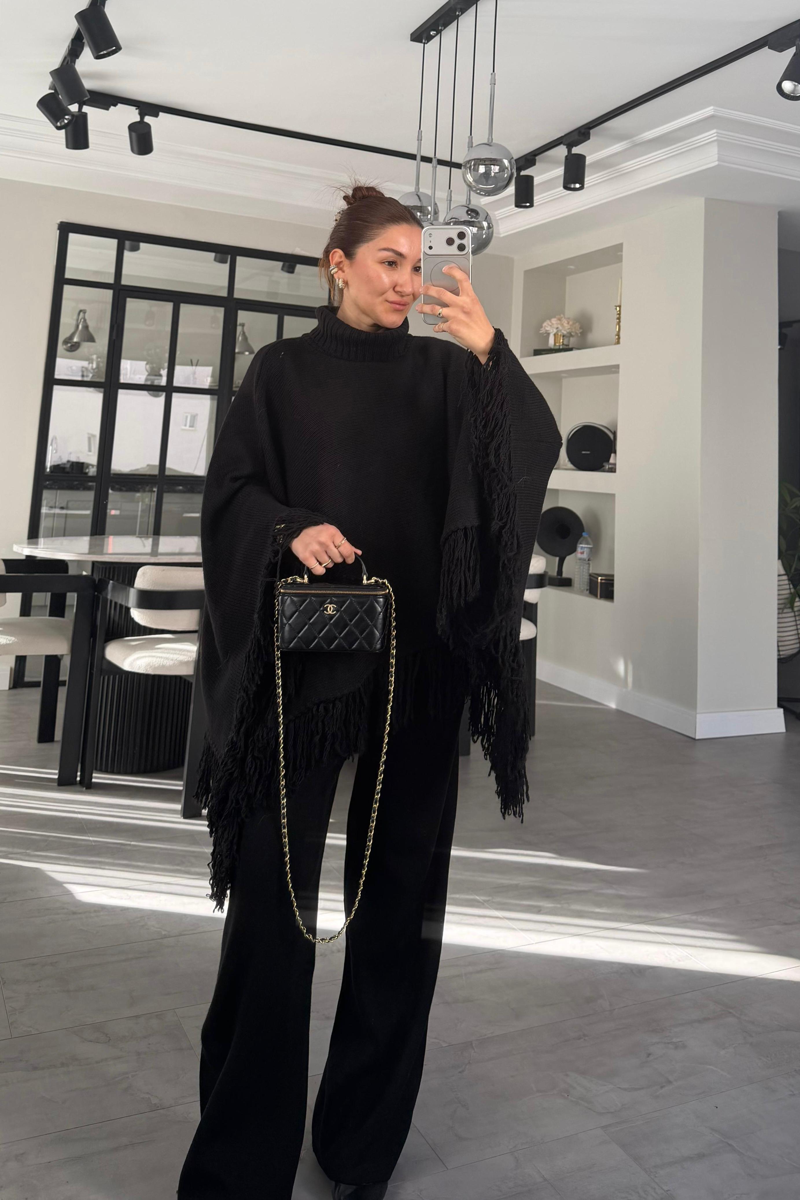 DİK YAKA PÜSKÜLLÜ PANÇO/1007