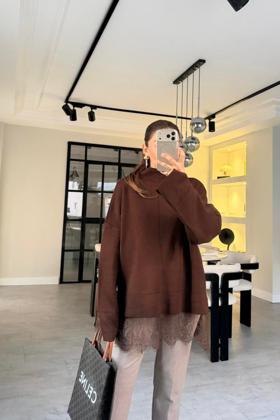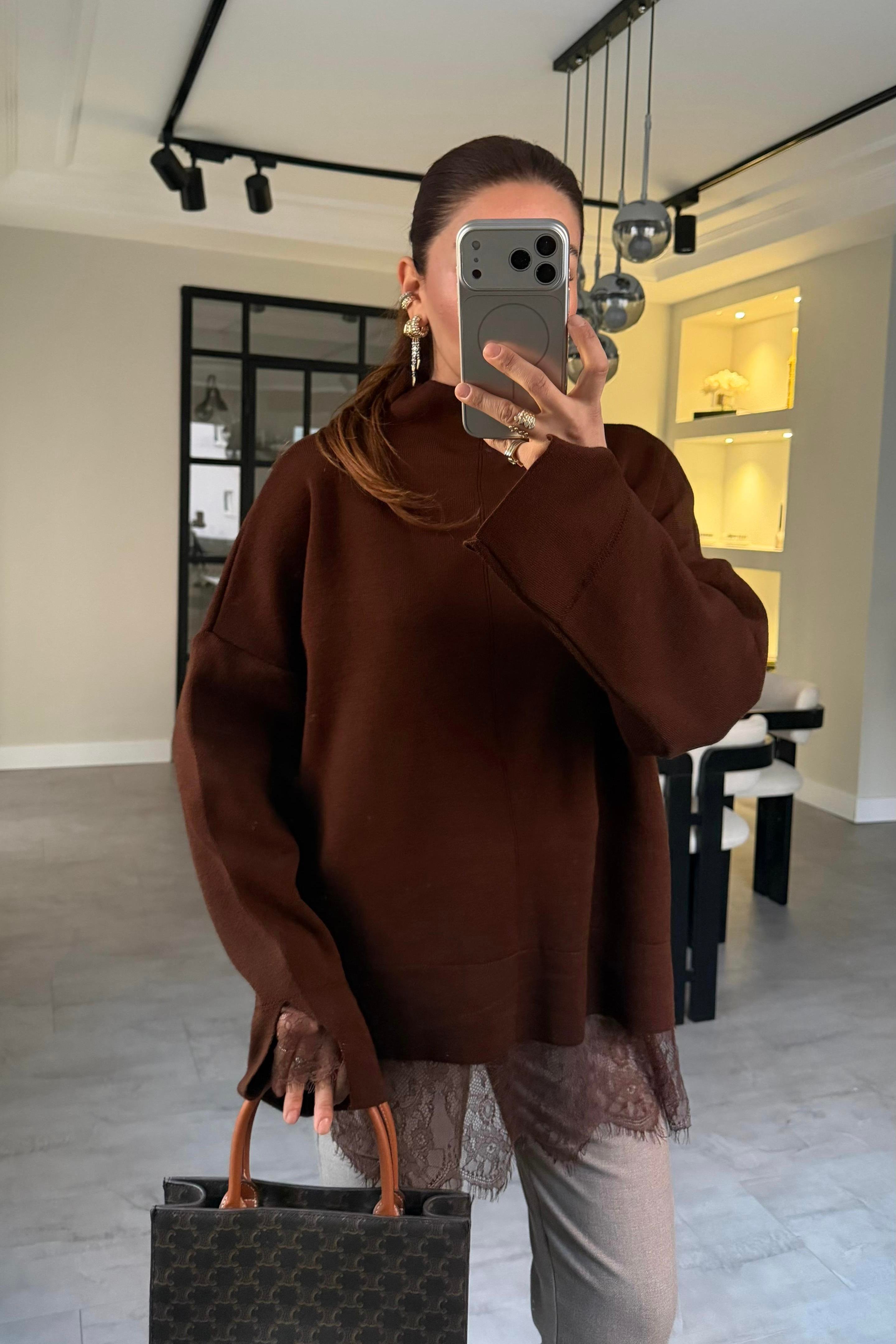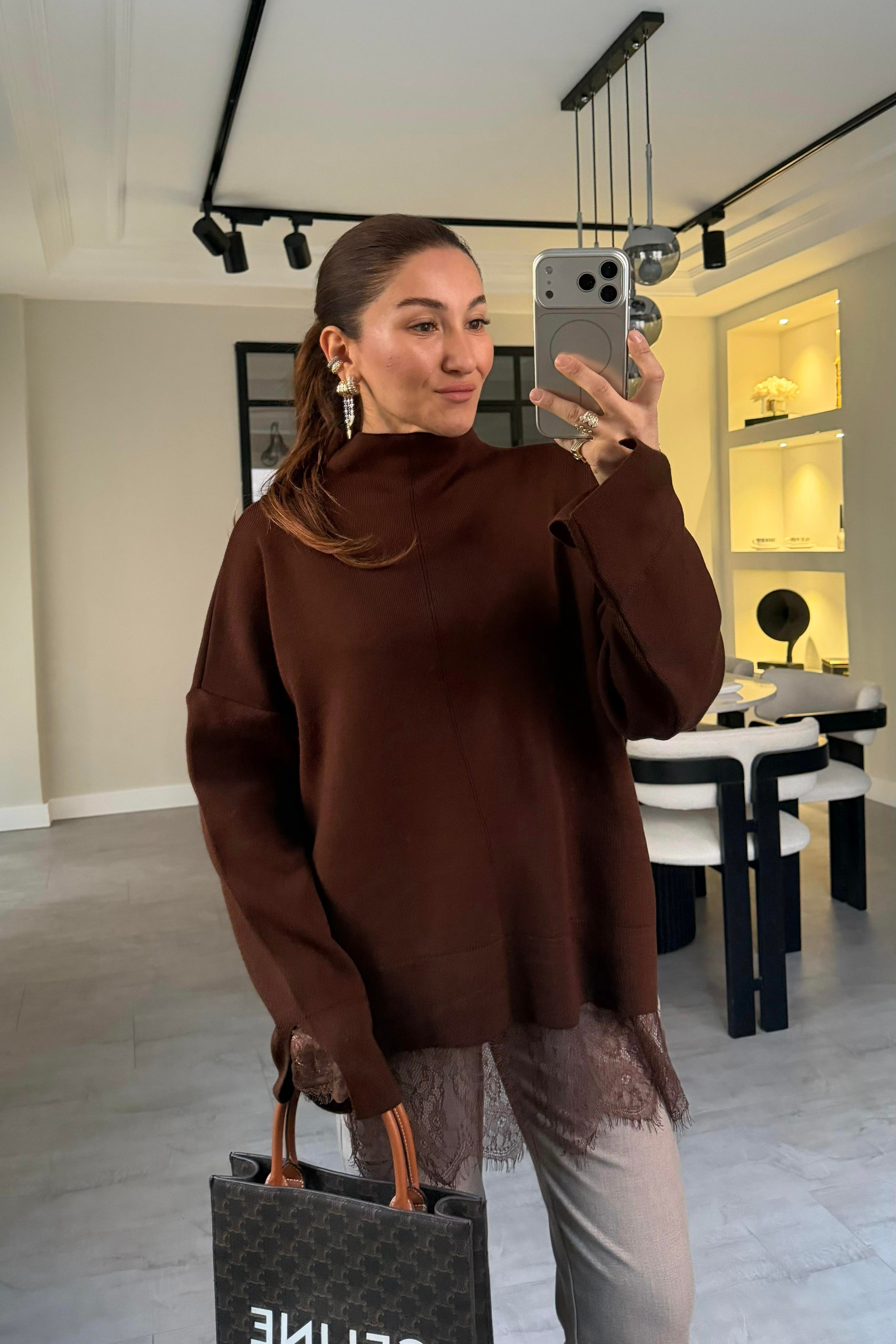 ETEK UCU DANTELLİ DİK YAKA KAZAK/0136