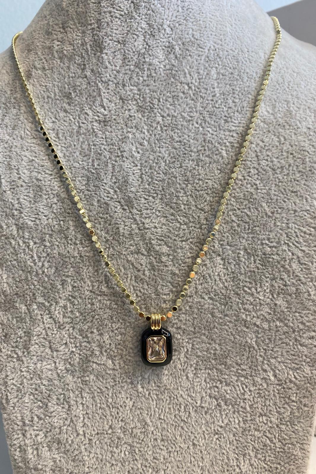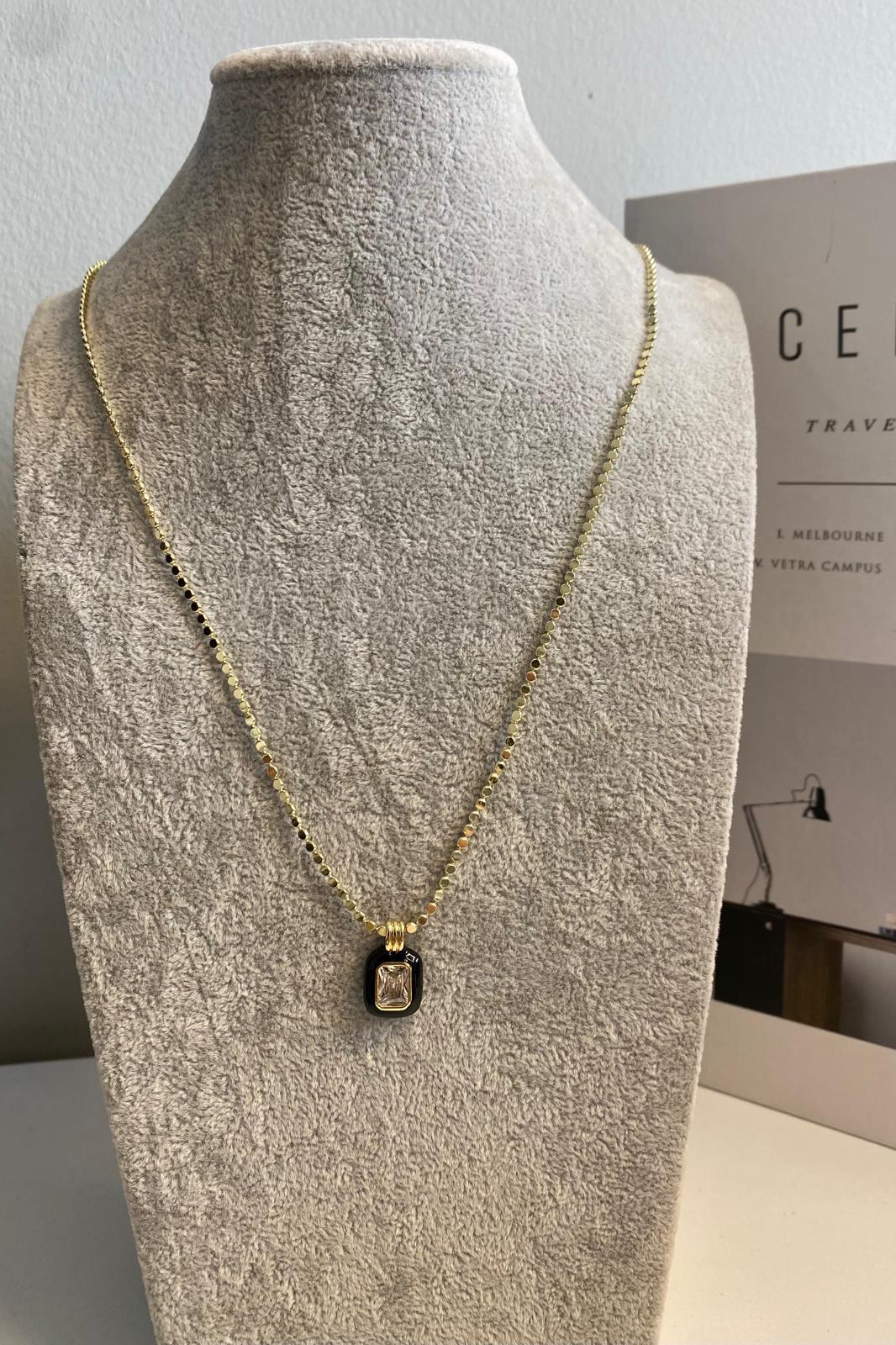 EZME NOKTALI SİYAH BAGET ÇERÇEVELİ KOLYE (25GFB12071)