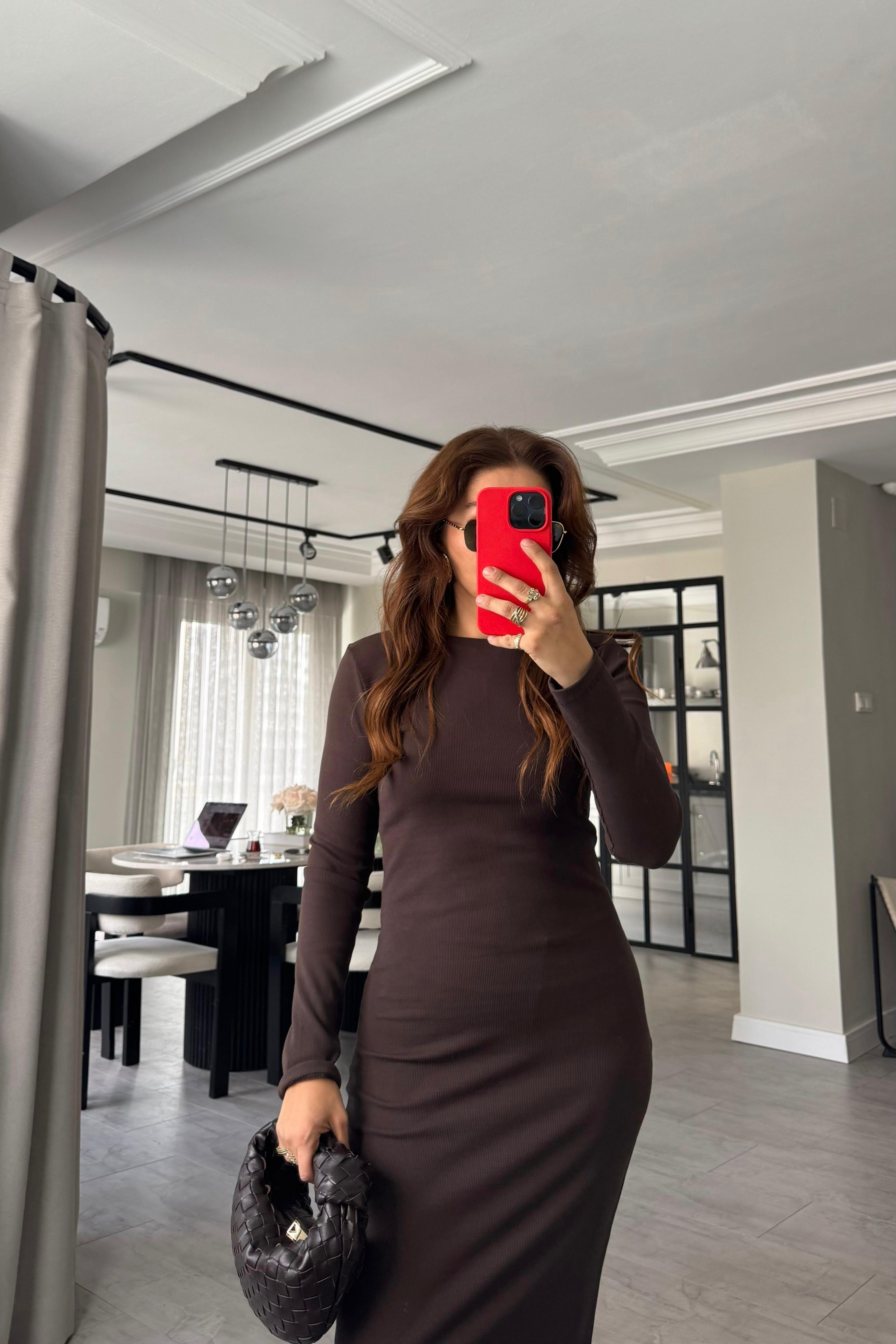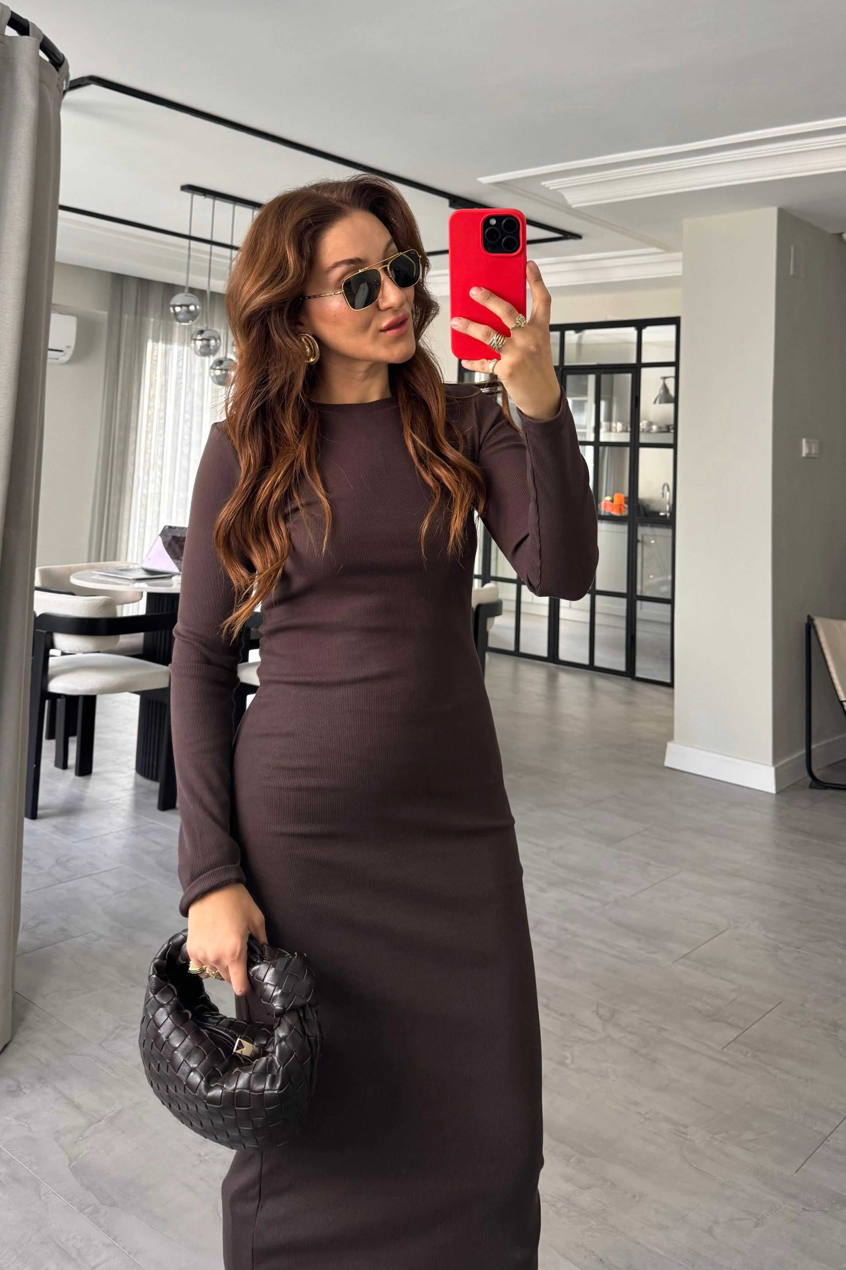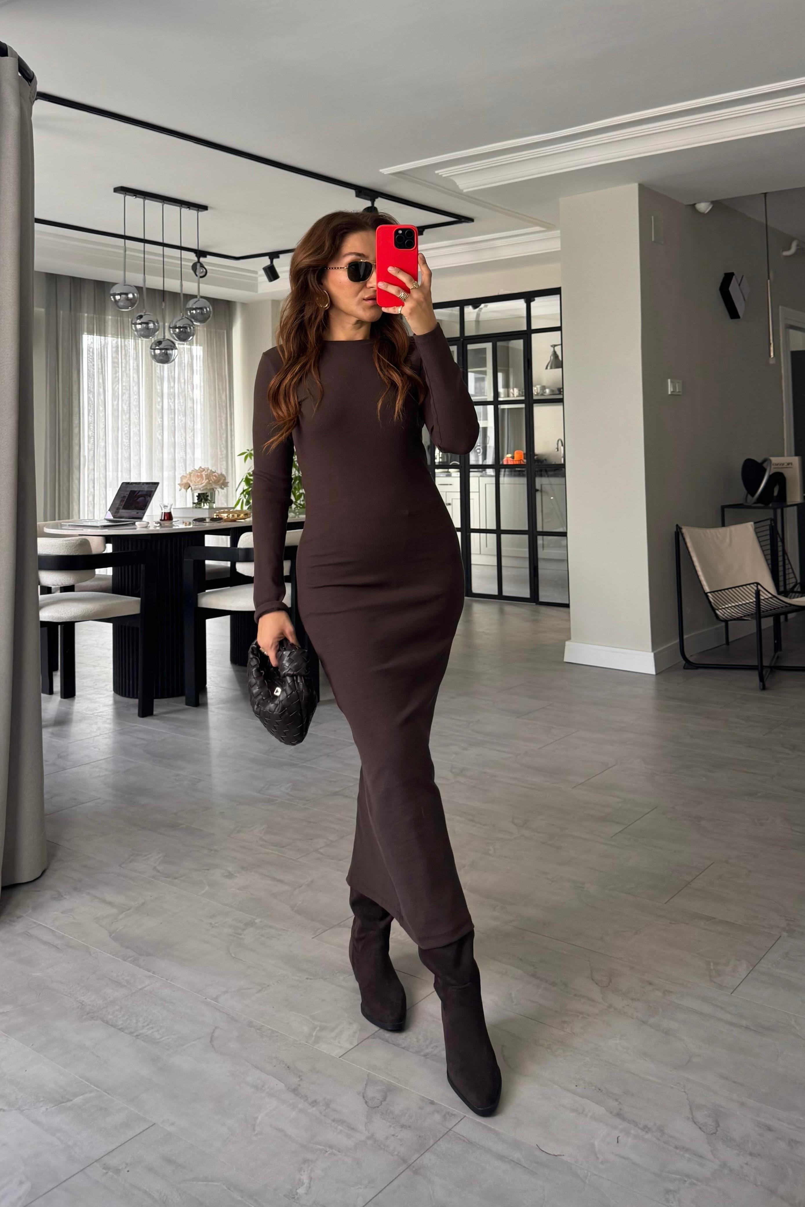 FİTİLLİ UZUNKOL MAKSİ BOY ELBİSE / 10977