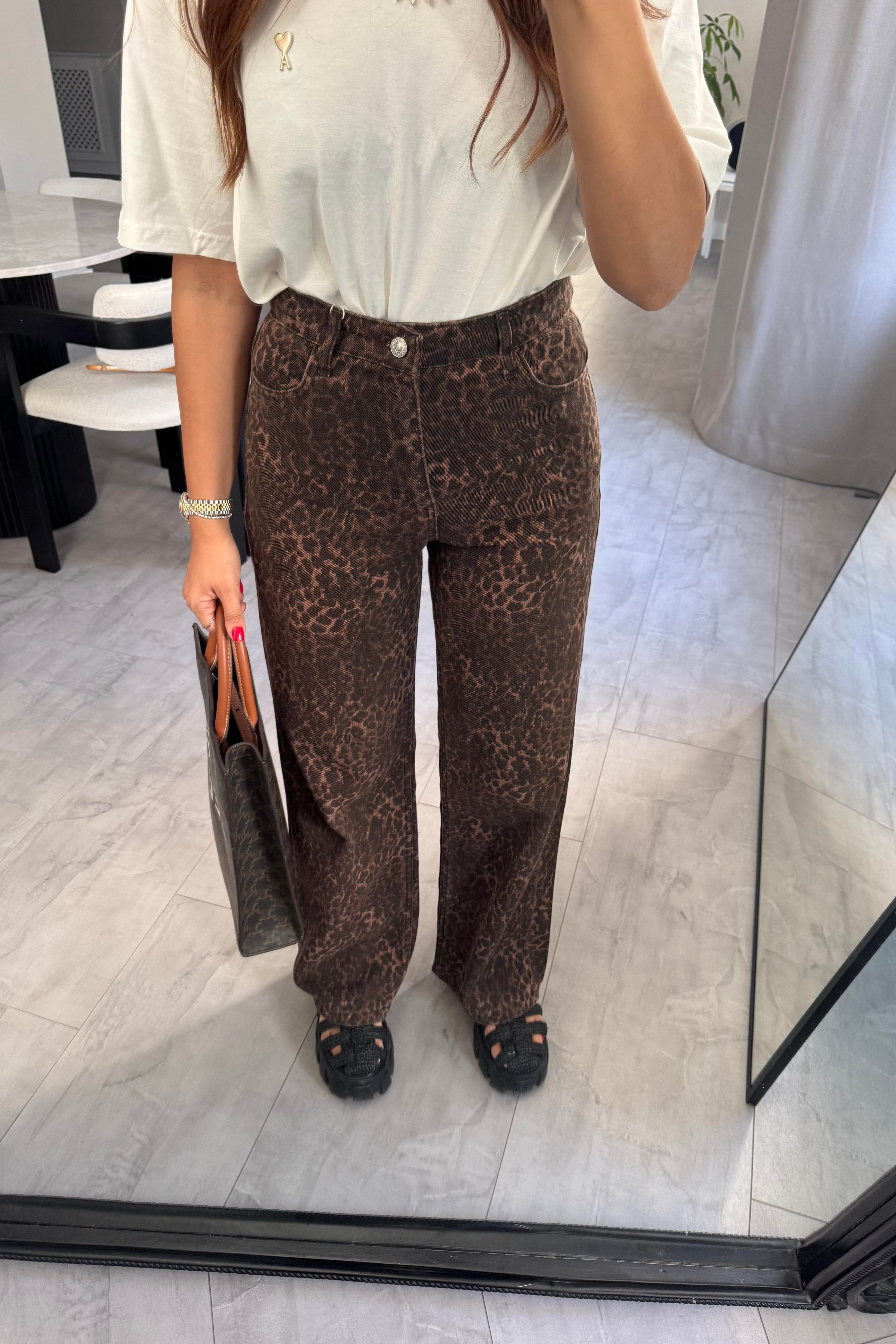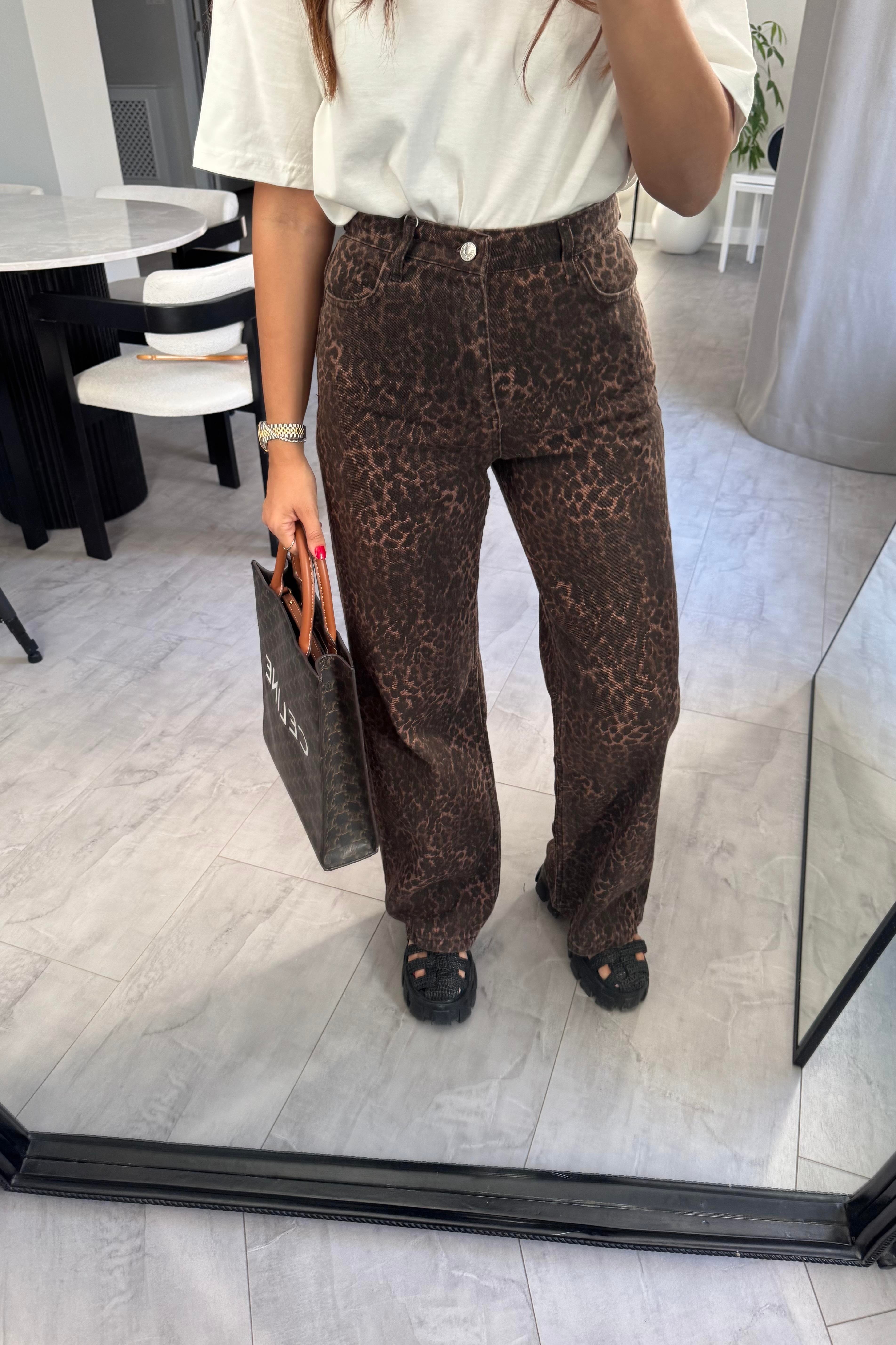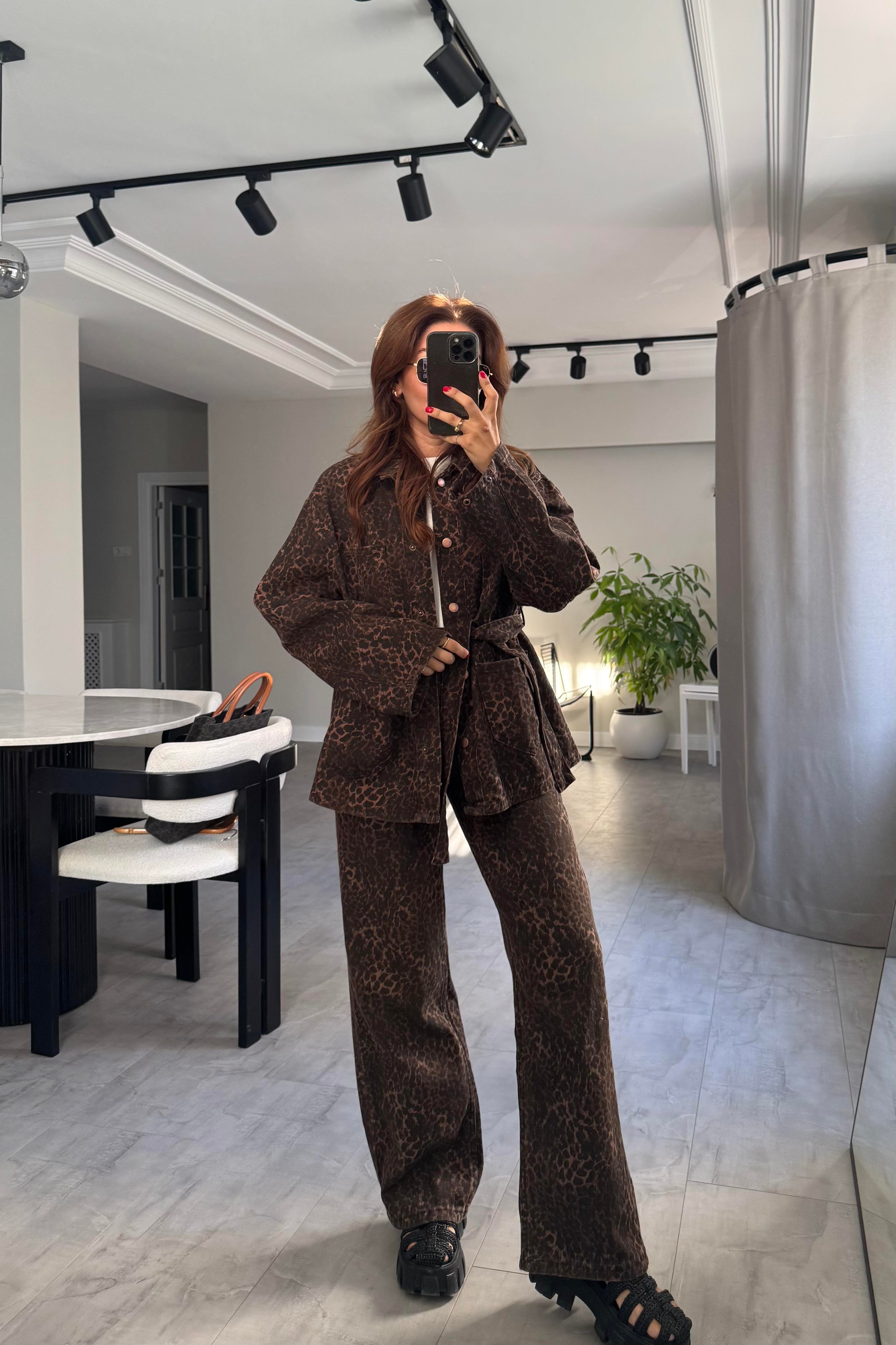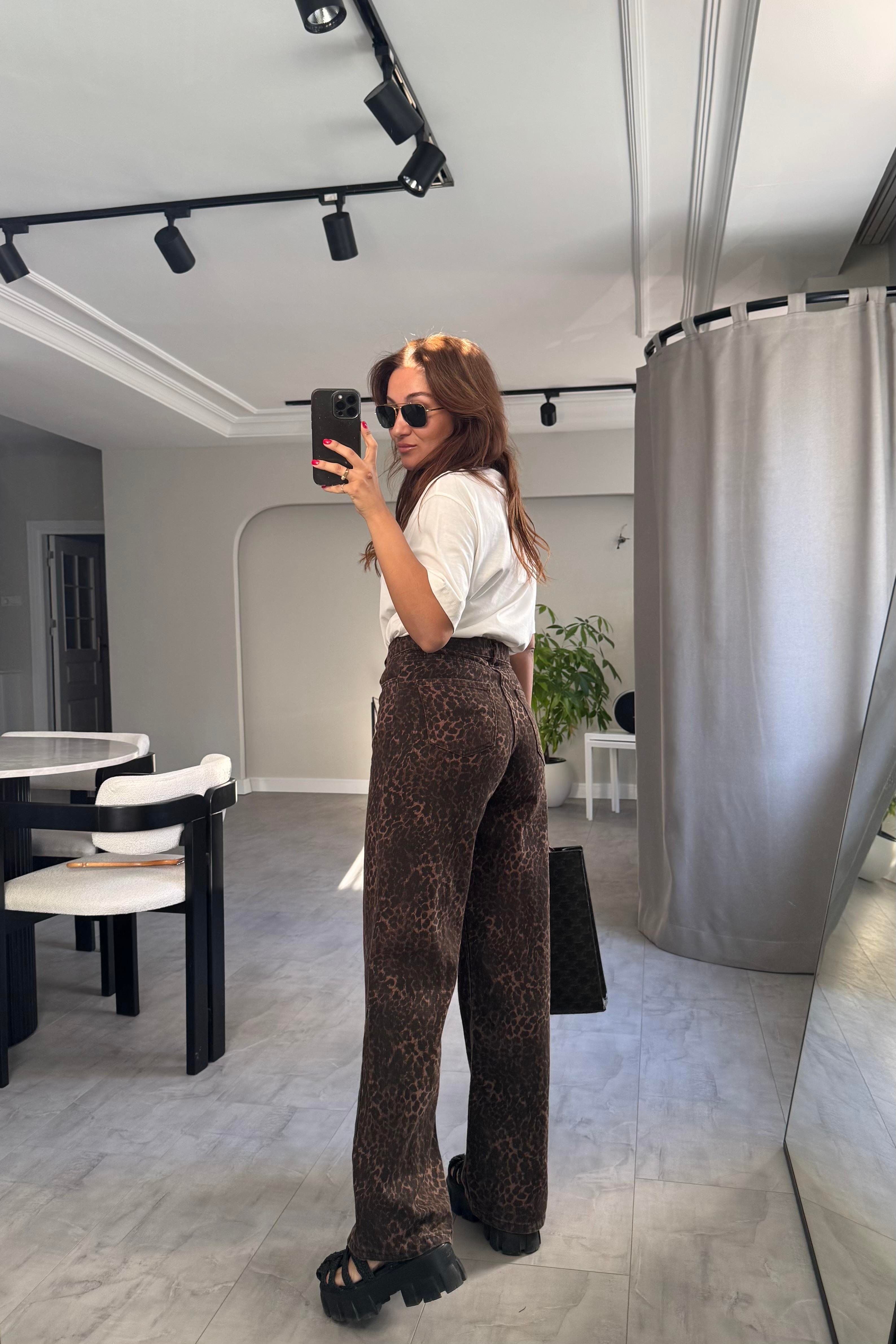TAM KALIP LEOPAR DESEN PALAZZO PANTOLON