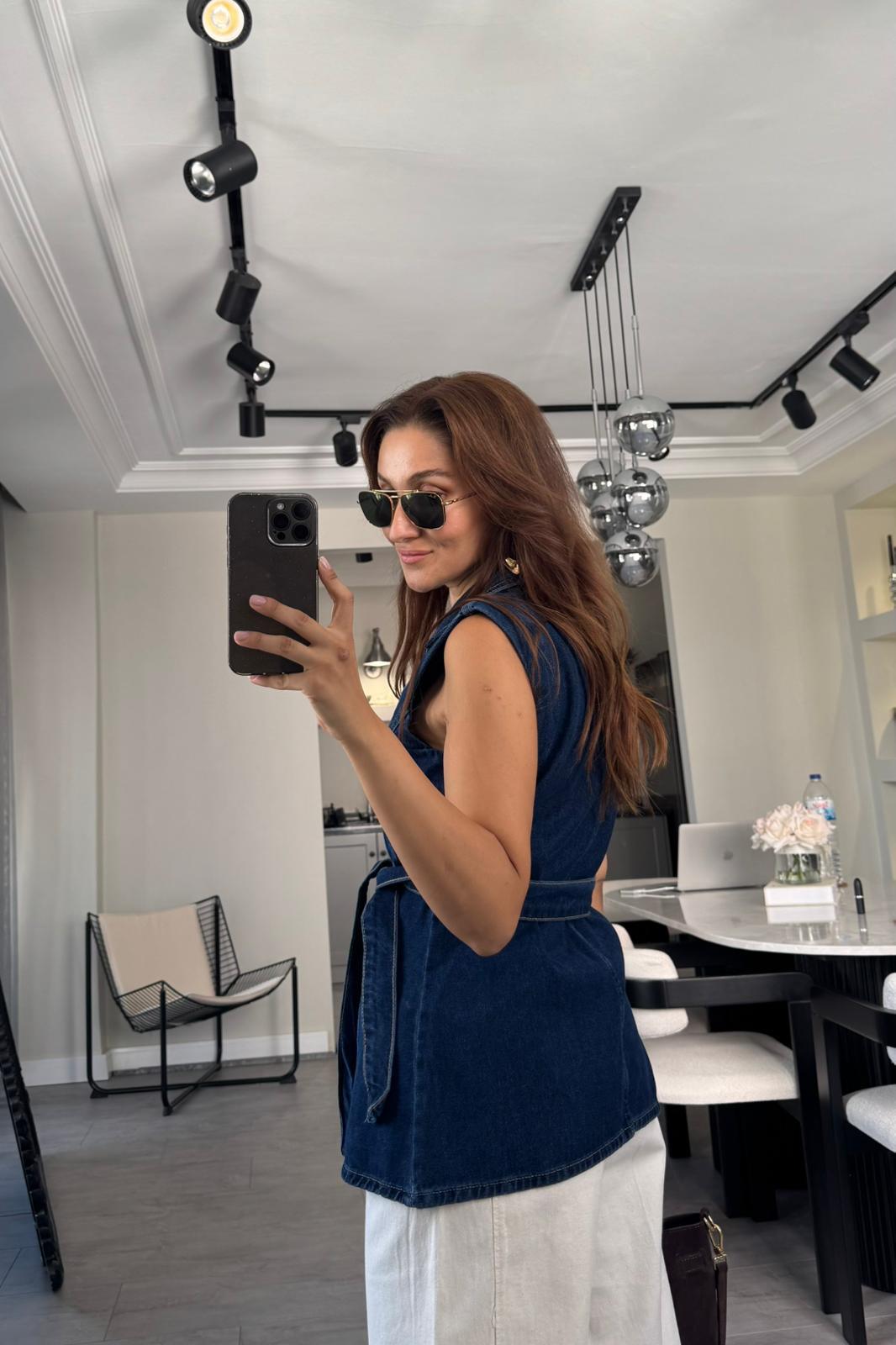 GEOMETRİK DÜĞMELİ DENİM YELEK/22541