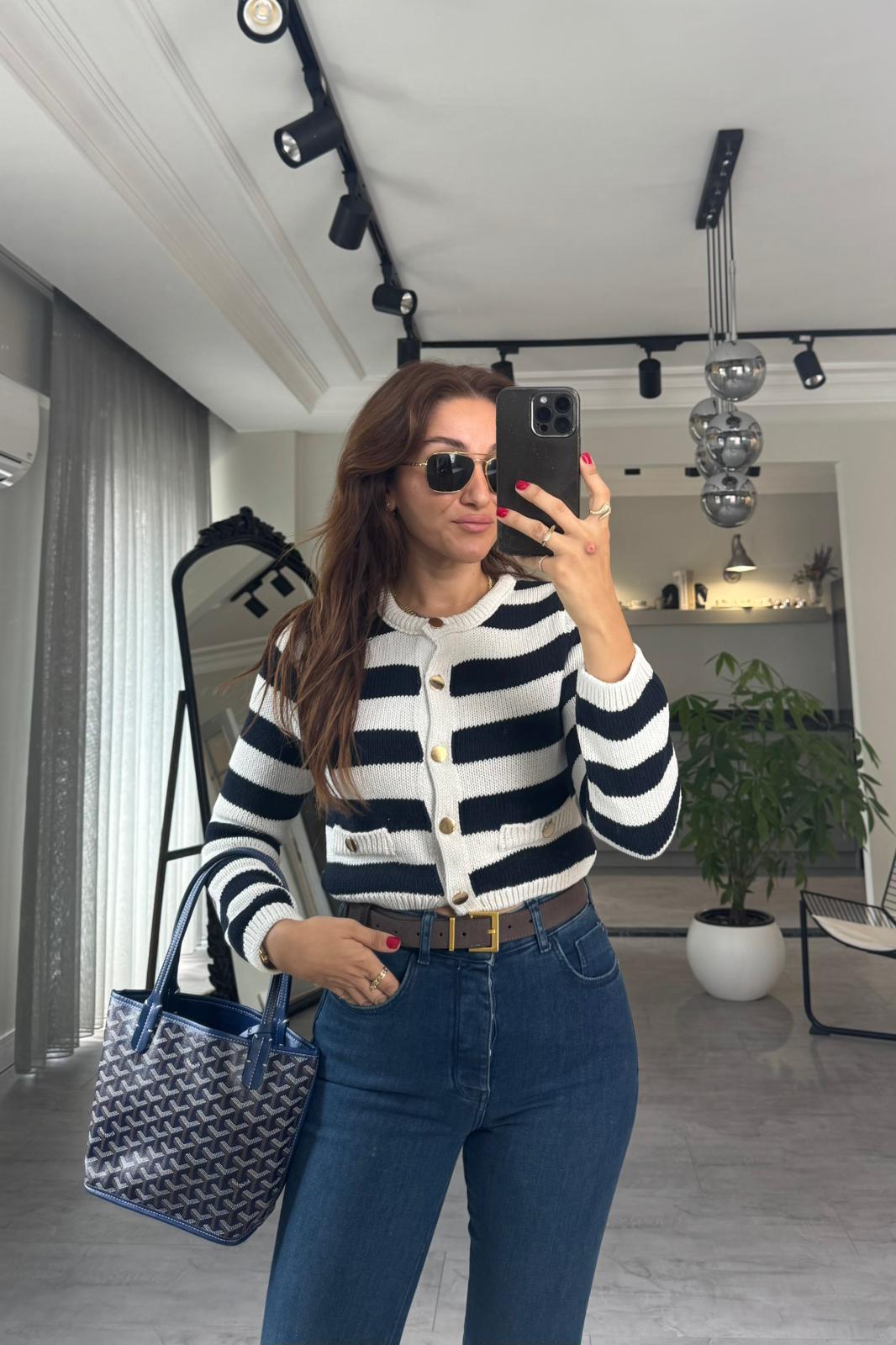 GOLD DÜĞMELİ ÇİZGİLİ HIRKA