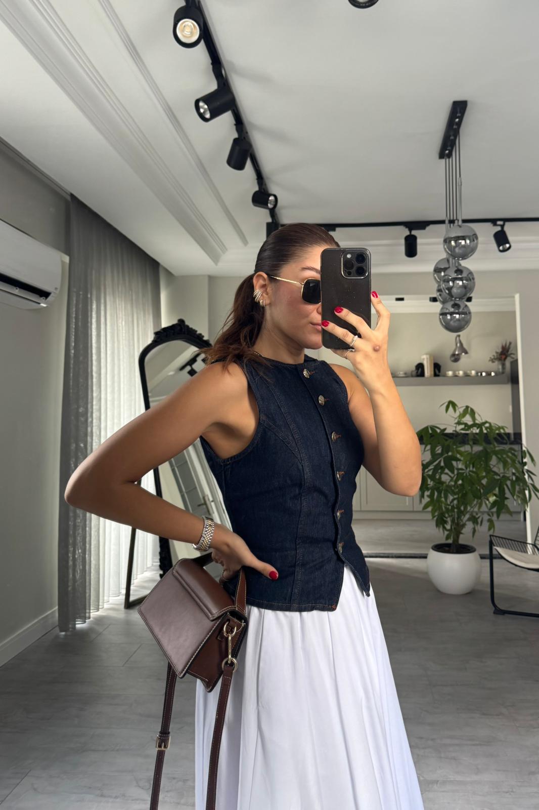 GOLD DÜĞMELİ DENİM YELEK (26KUMT2101)