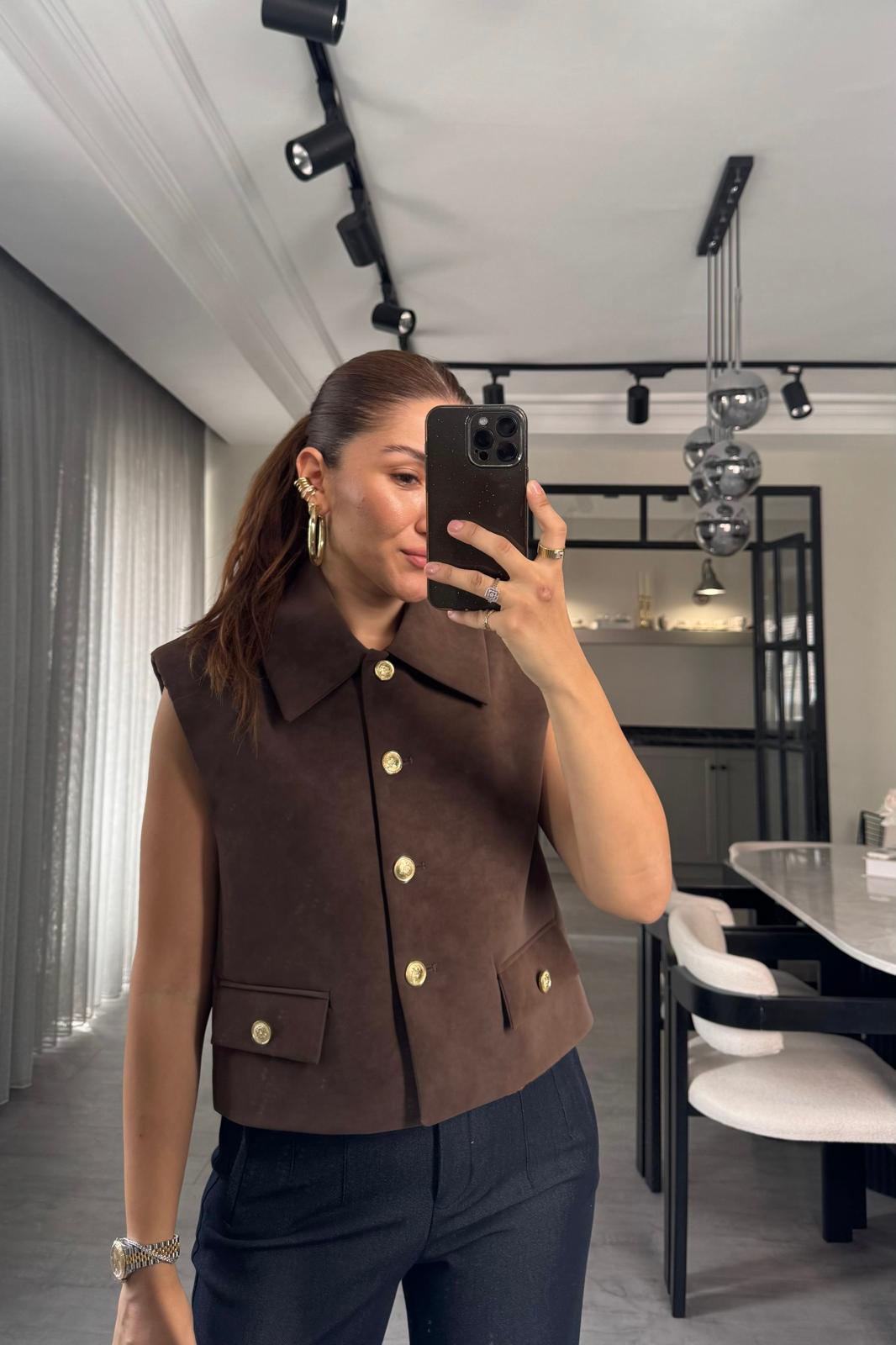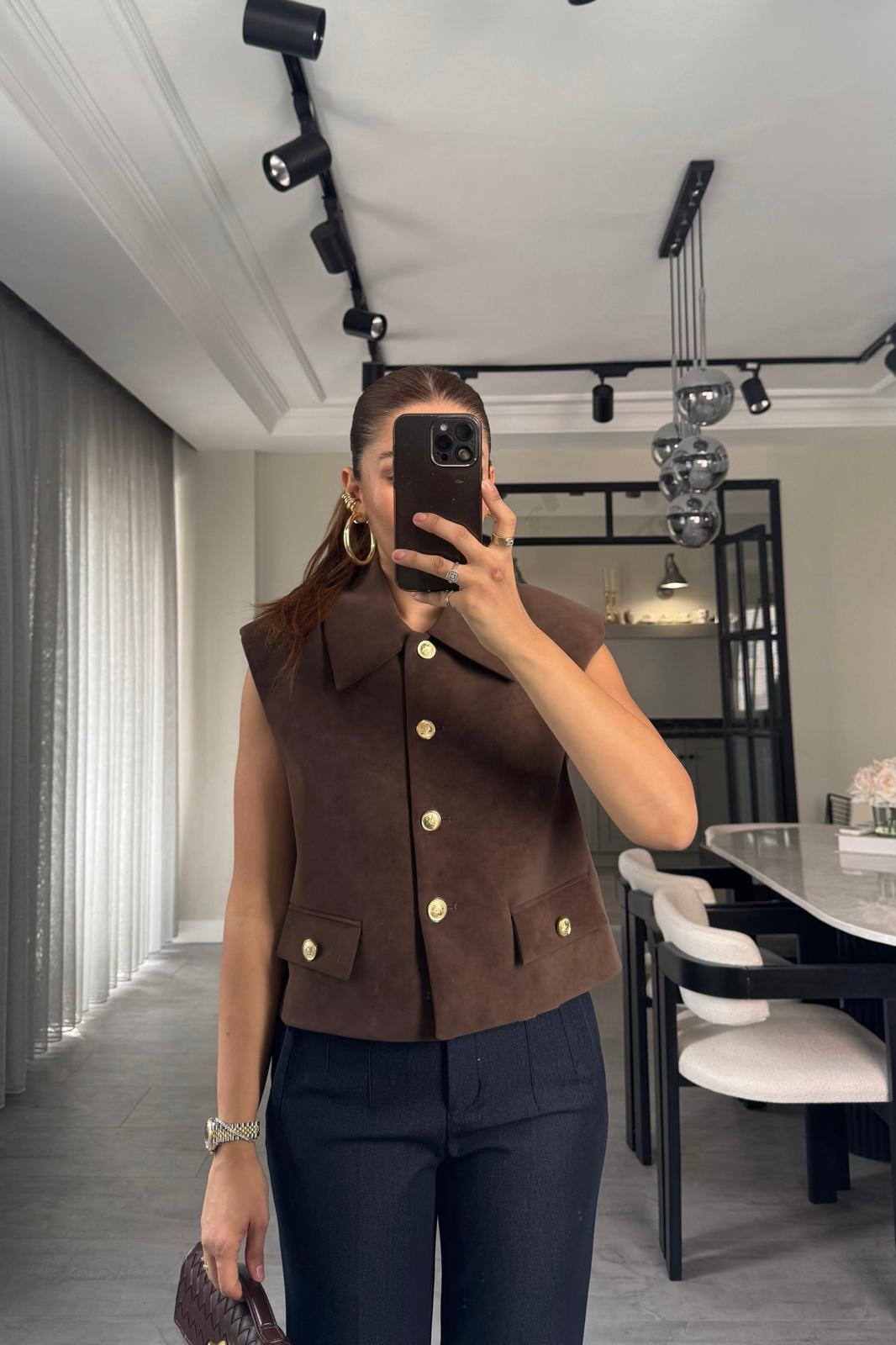 GOLD DÜĞMELİ KADİFE YELEK (26KBE21001)