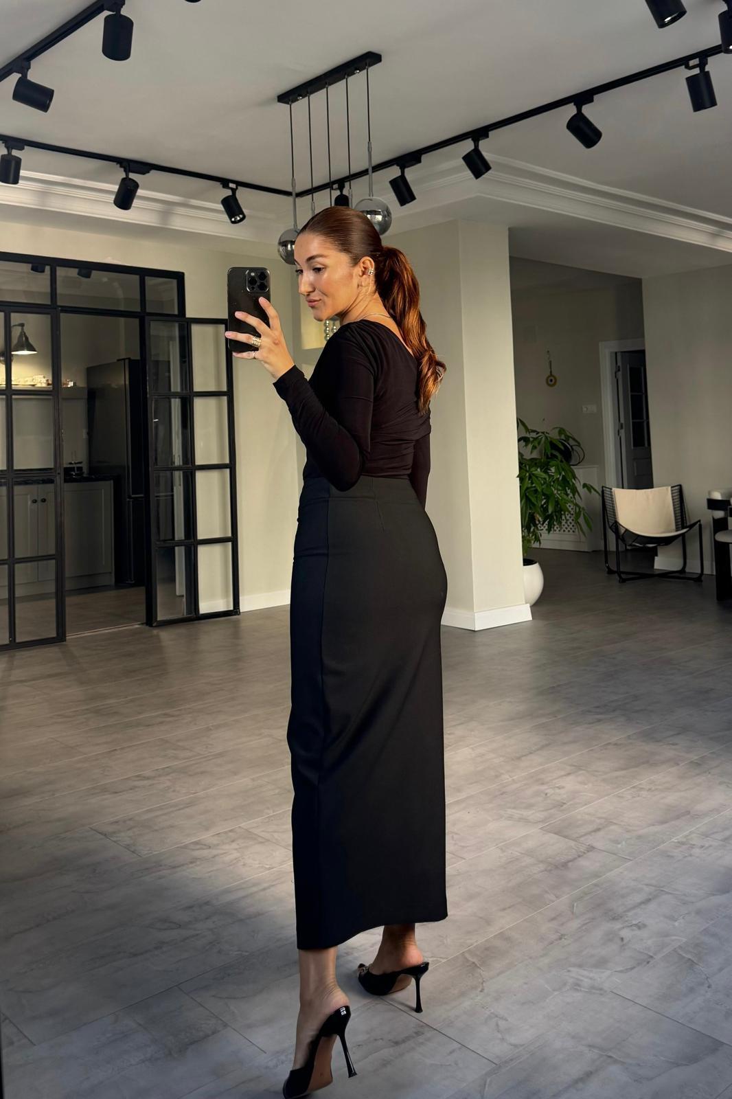 GOLD DÜĞMELİ YIRTMAÇLI KUMAŞ ETEK/1226