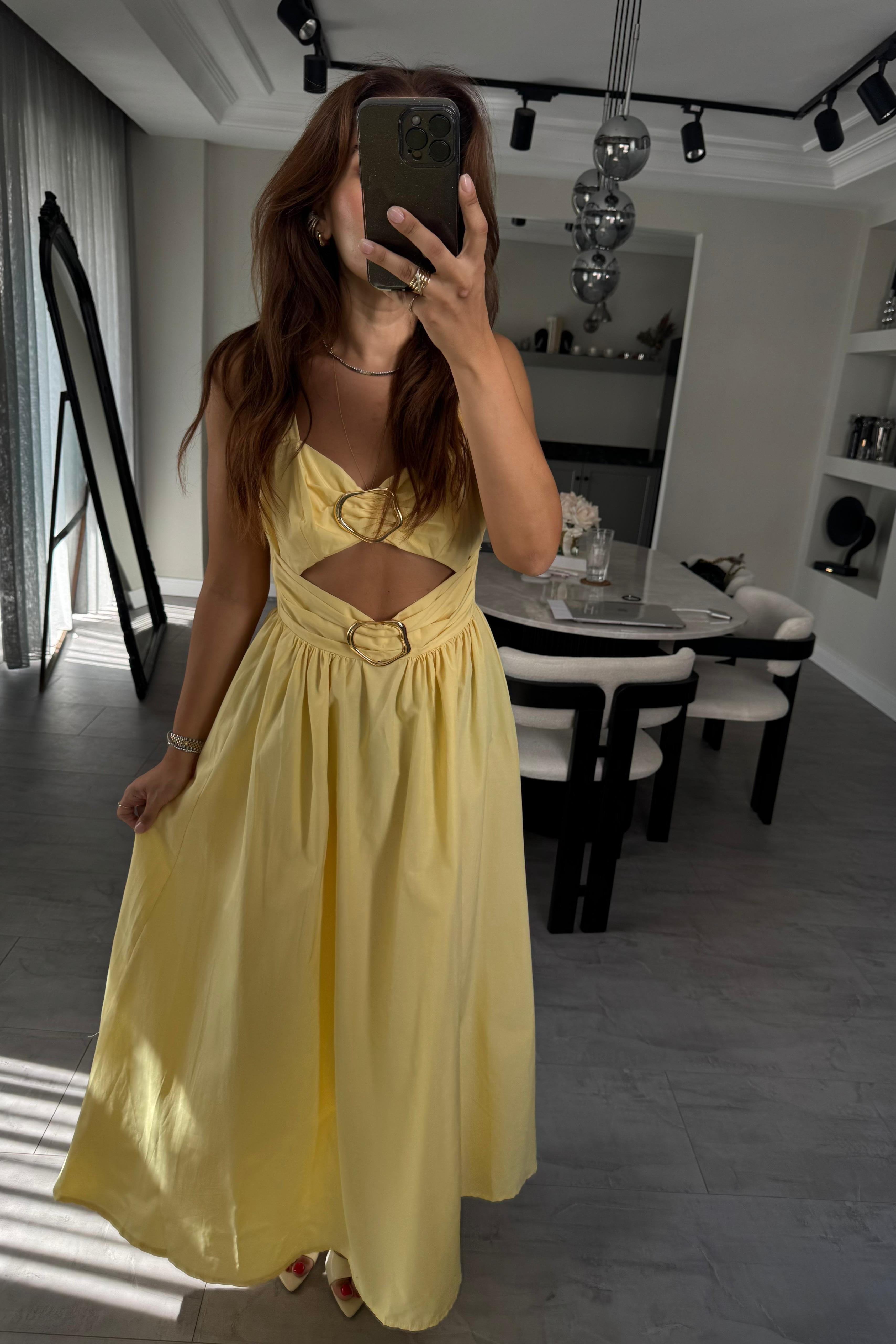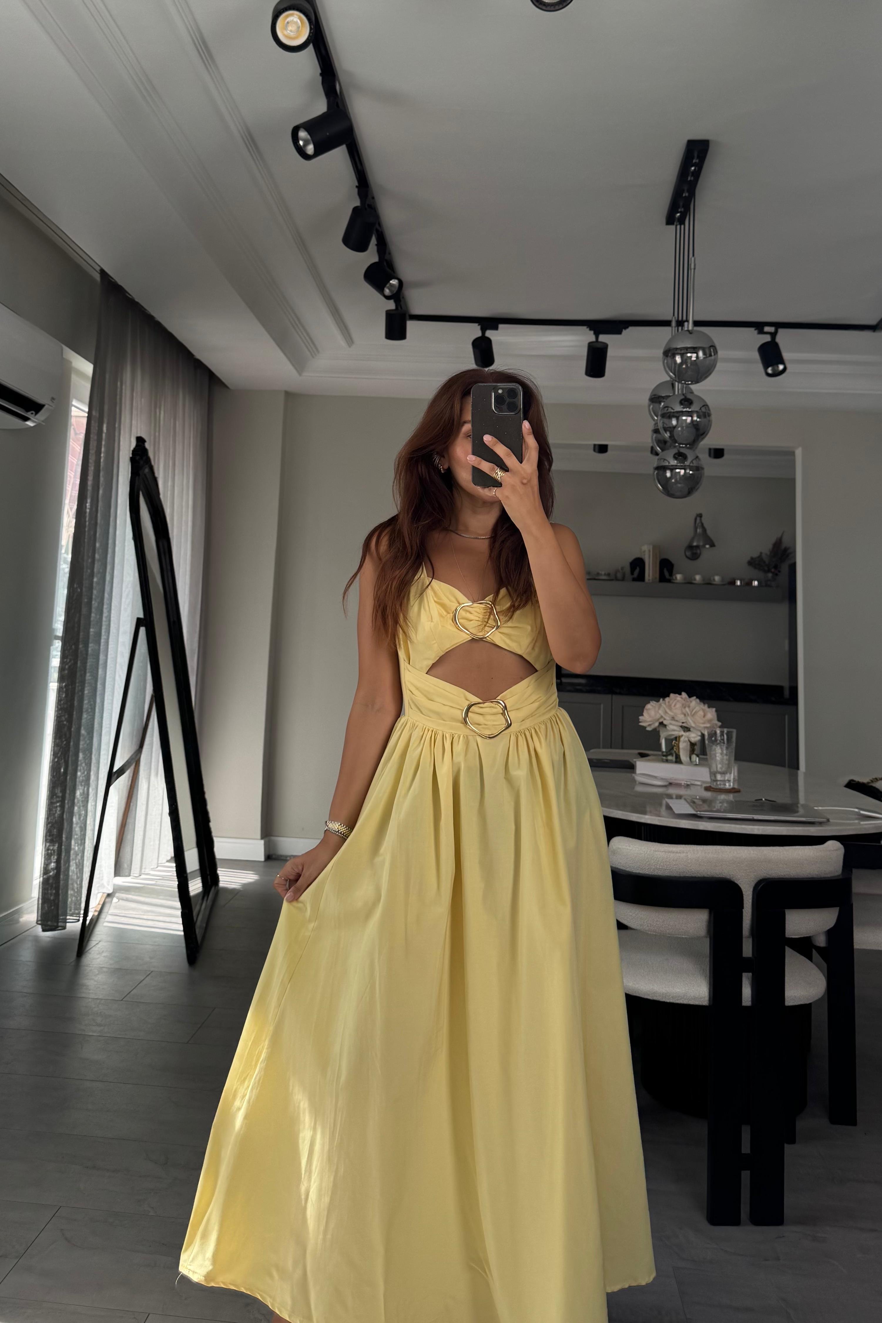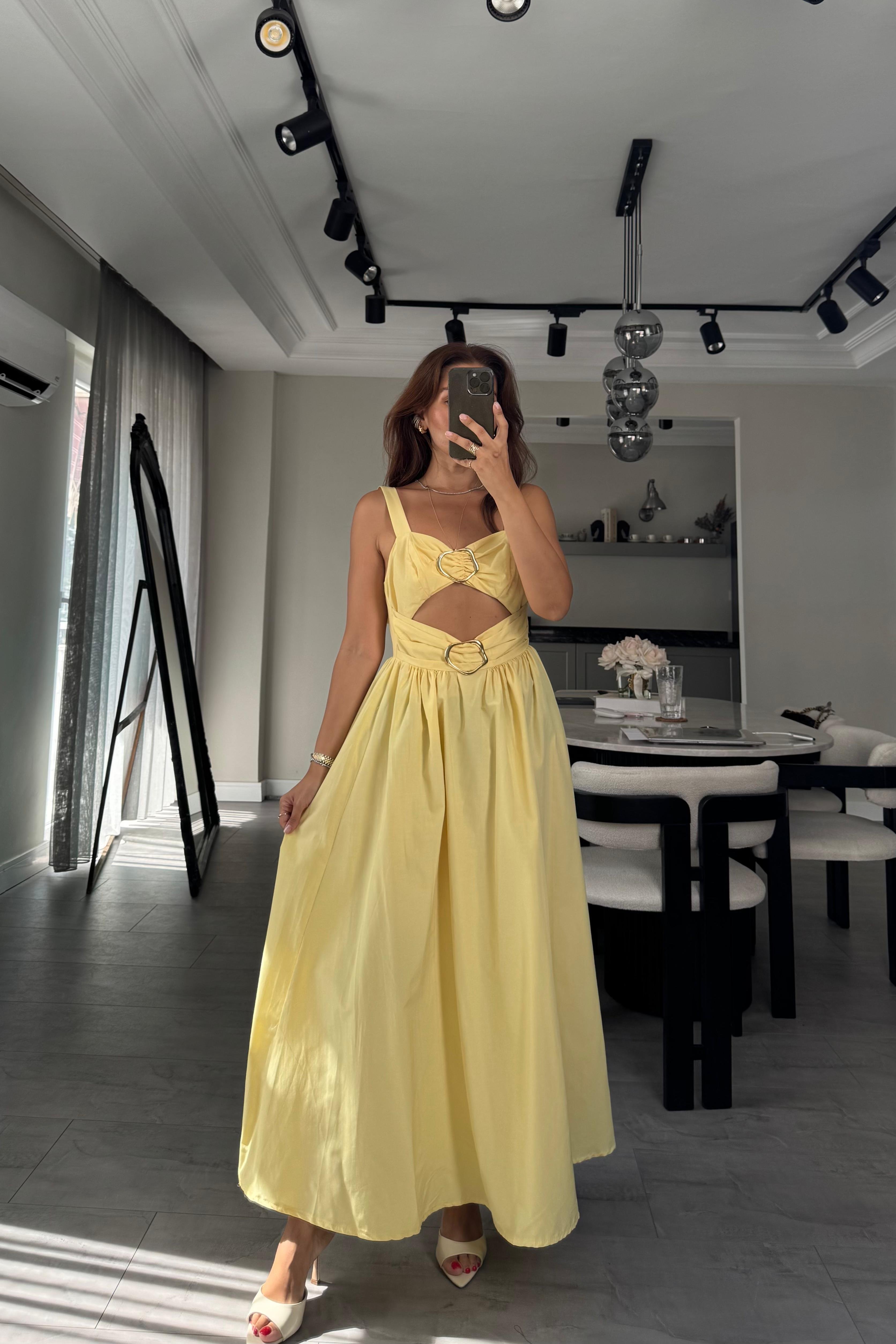 GOLD TOKALI DEKOLTELİ ELBİSE