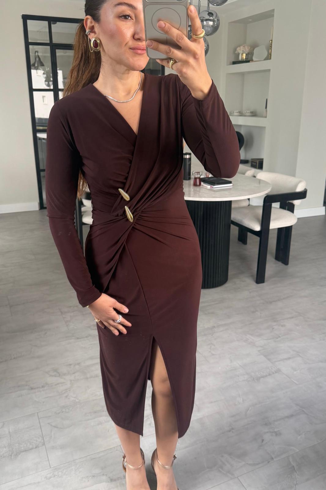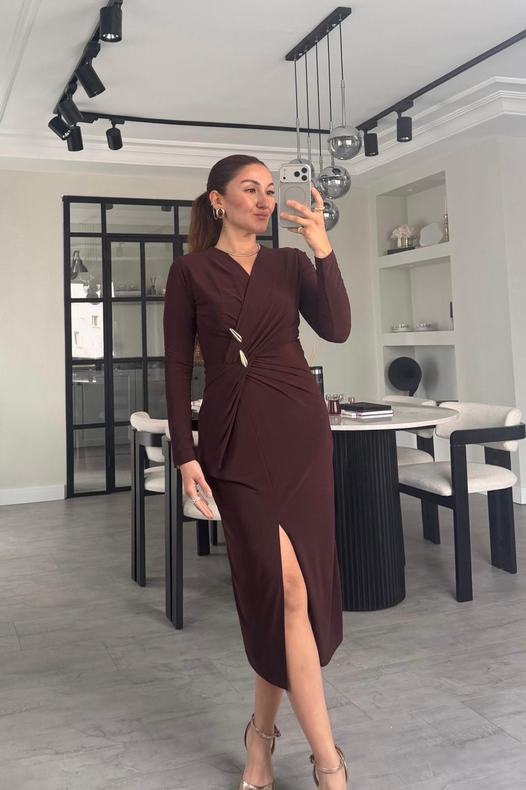 GOLD TOKALI YIRTMAÇLI MAKSİ ELBİSE/7731