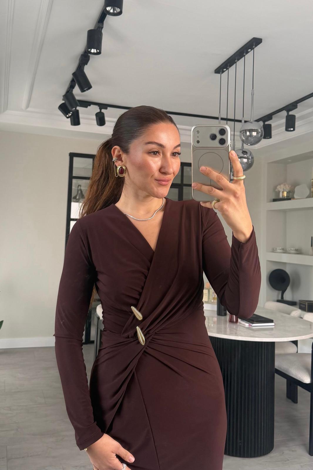 GOLD TOKALI YIRTMAÇLI MAKSİ ELBİSE/7731 (26KKFA0309)