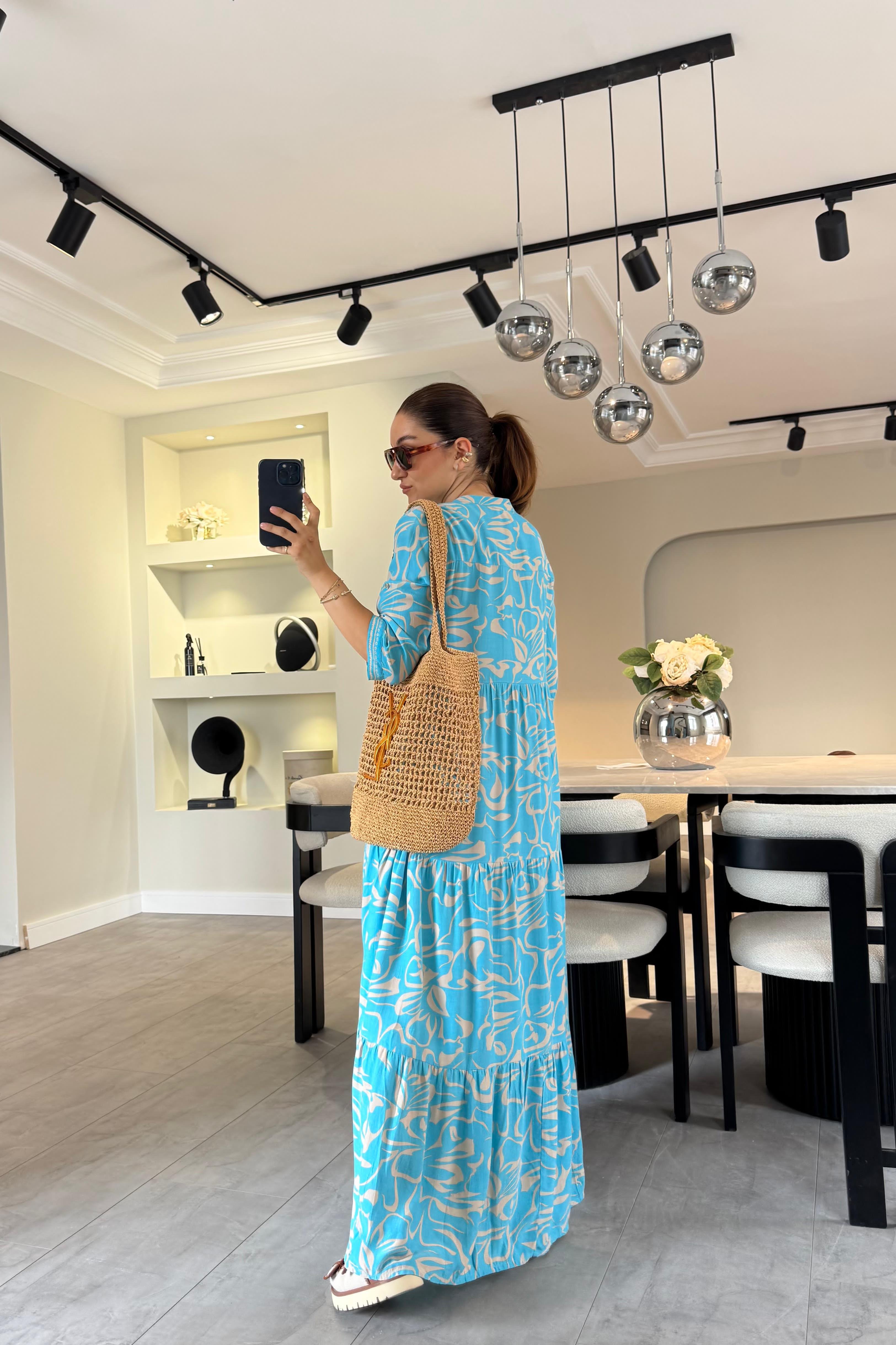 HAKİM YAKA DESENLİ ELBİSE (25YCSS0306)