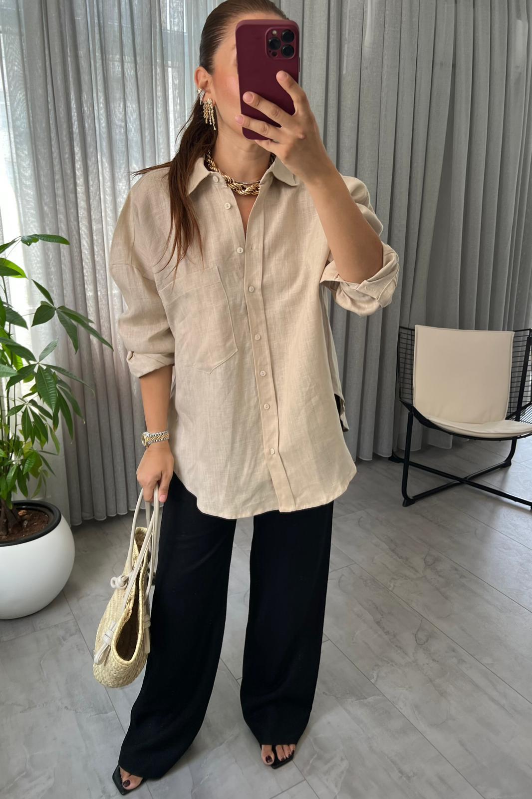 HAM KETEN OVERSİZE GÖMLEK /103201