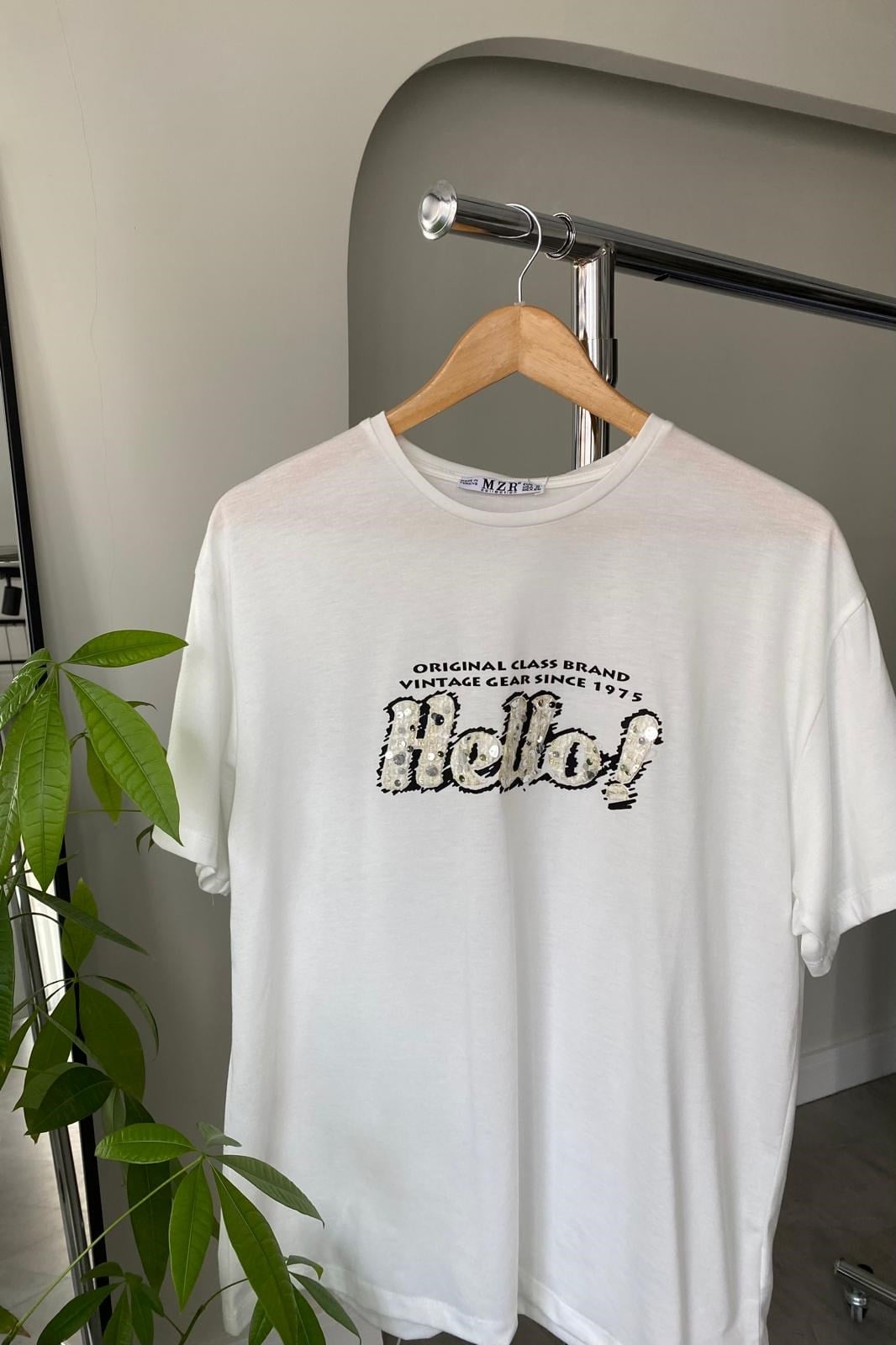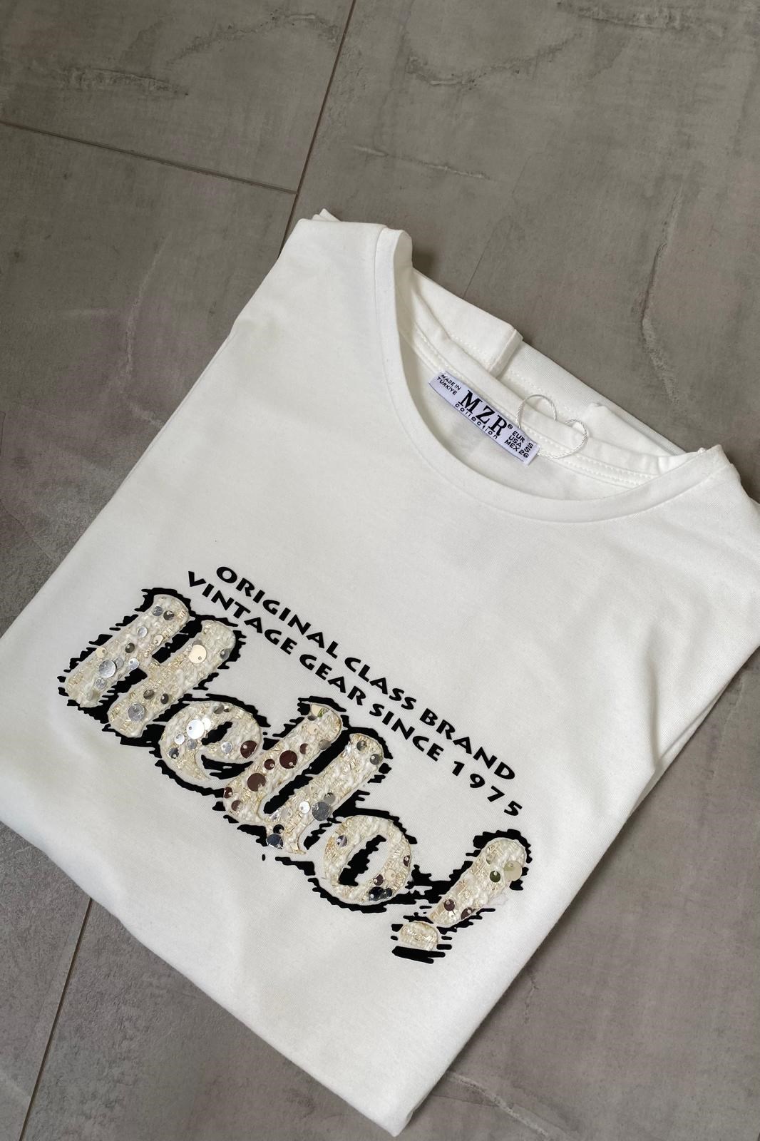 HELLO PUL İŞLEME T-SHİRT (26KMZR0503)