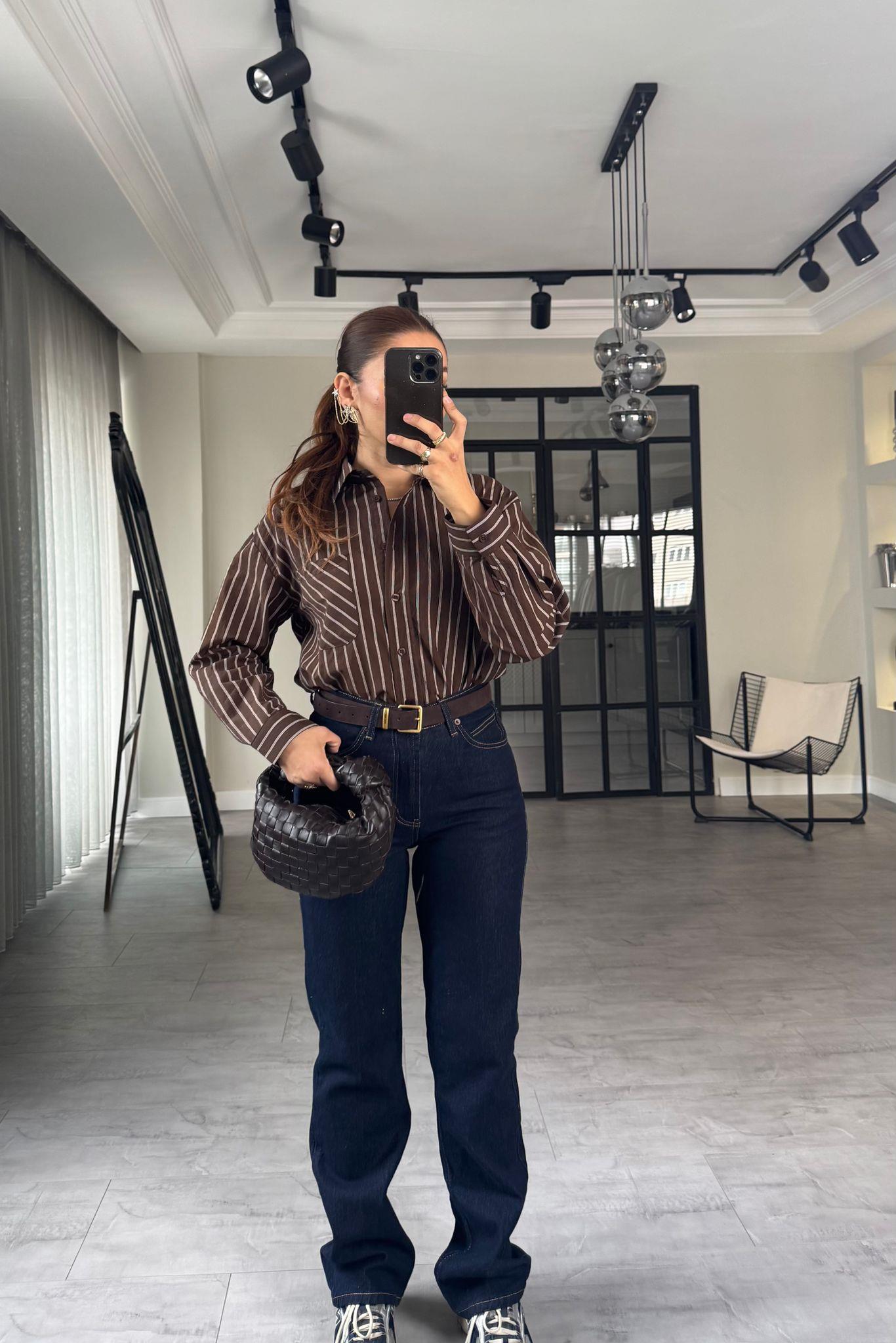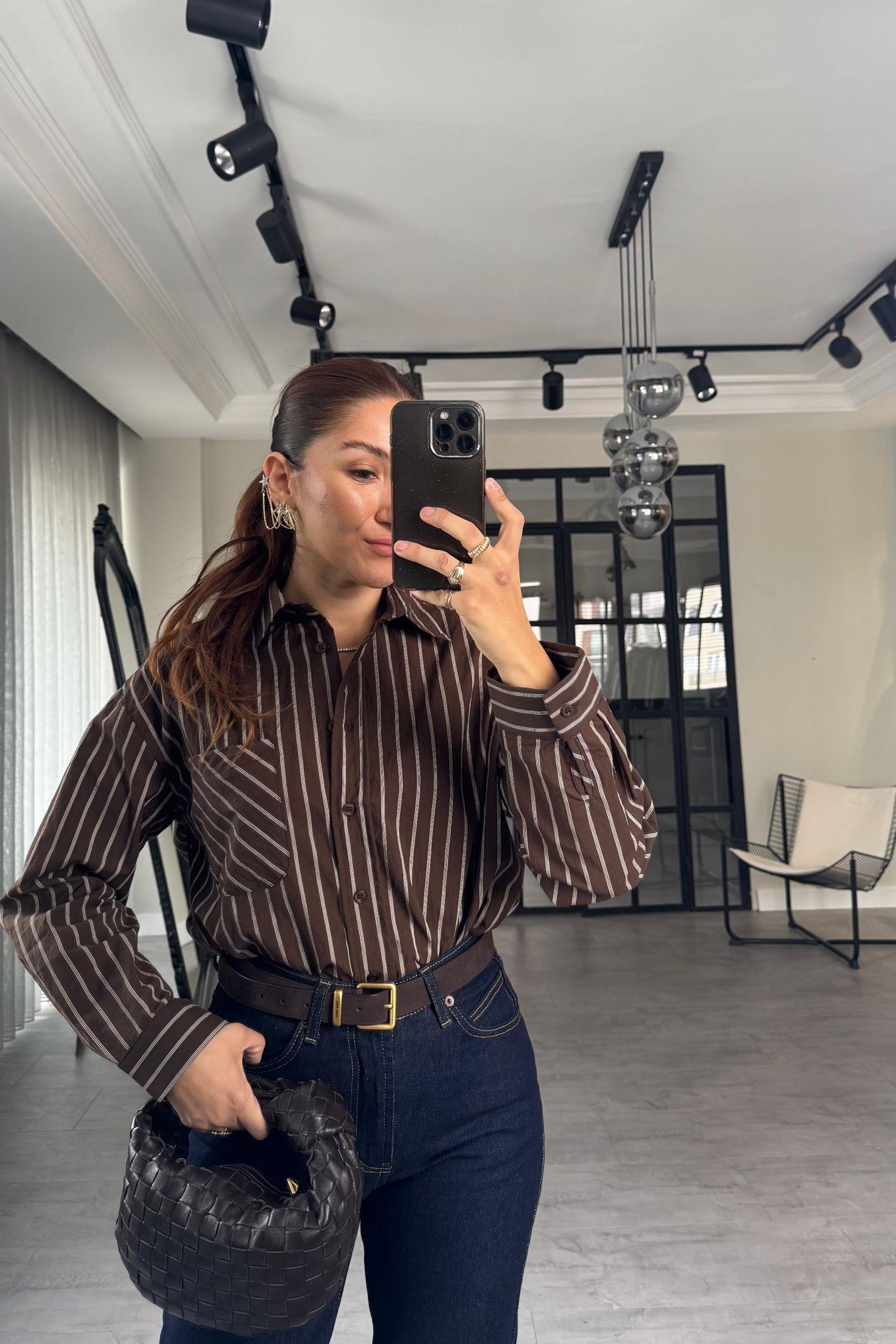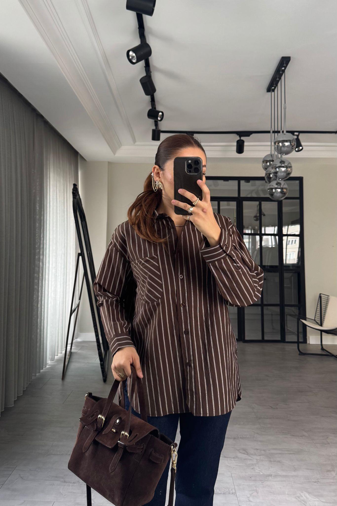 İNCE ÇİZGİLİ OVERSİZE GÖMLEK/3190