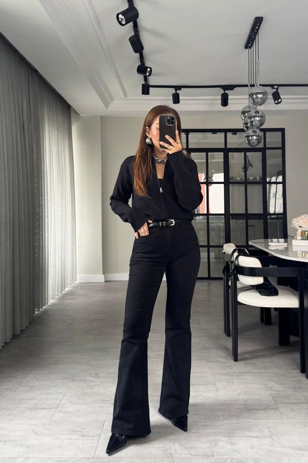 YÜKSEK BEL LİKRALI İSPANYOL PAÇA JEAN