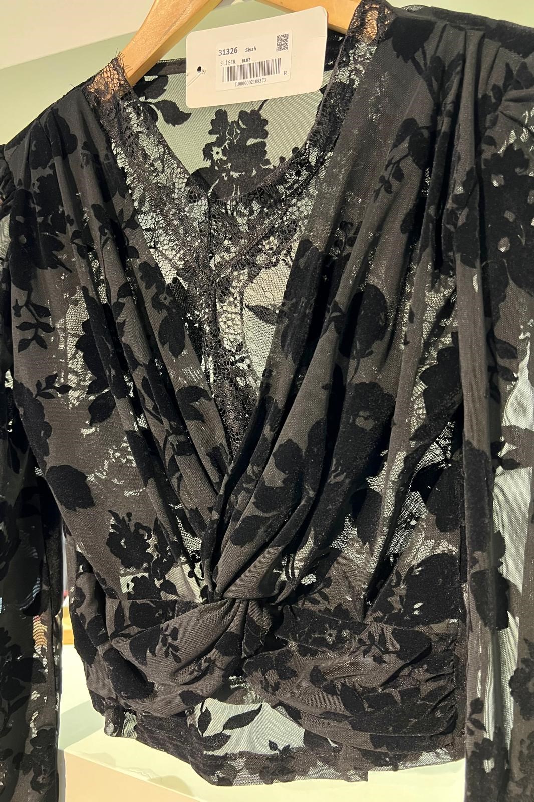 KADİFE BASKILI TRANSPARAN BLUZ/31326