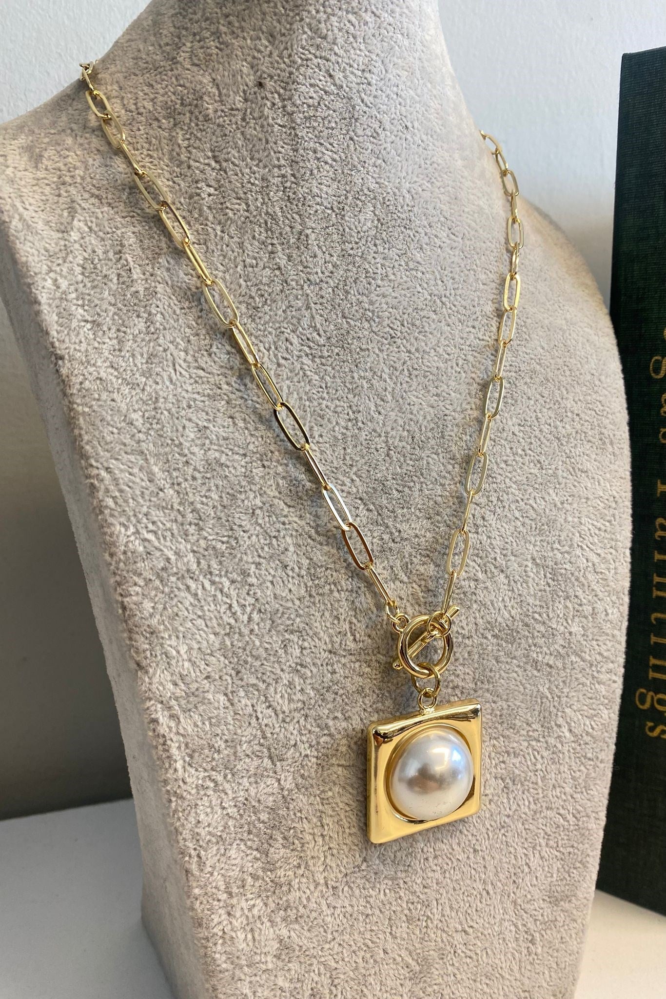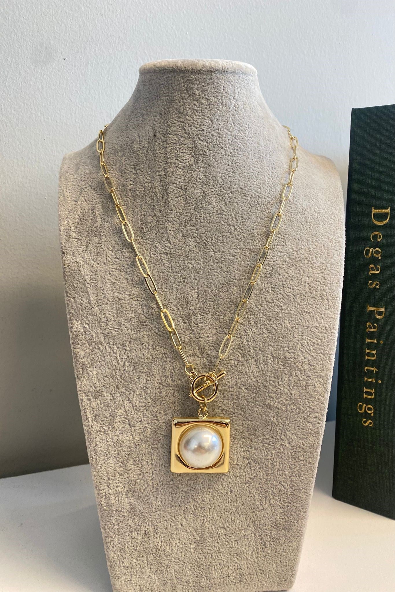 KARE ÇERÇEVELİ İNCİ KOLYE