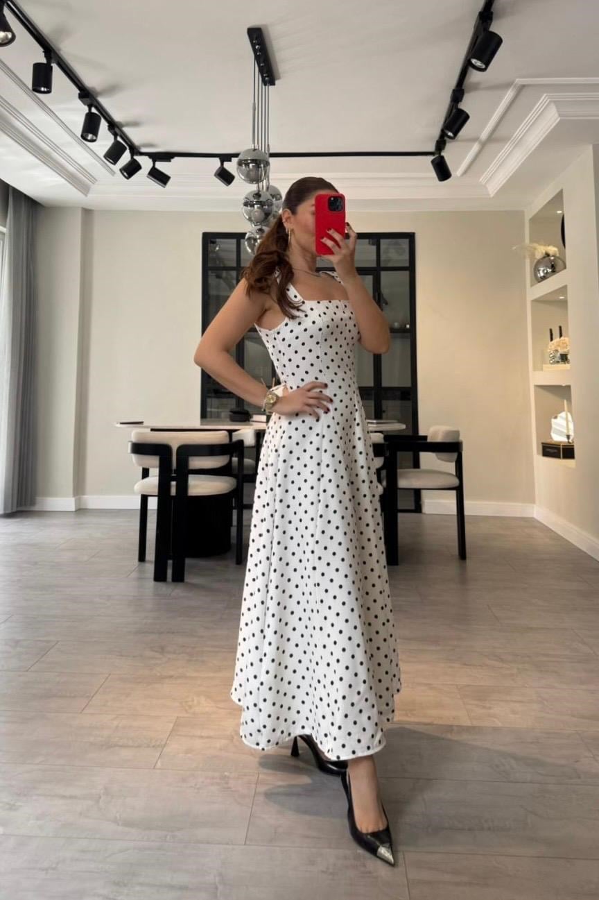 KARE YAKA PUANTİYELİ ELBİSE