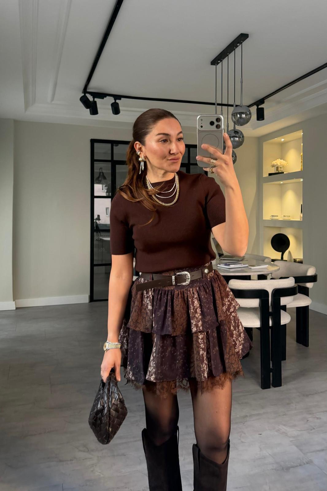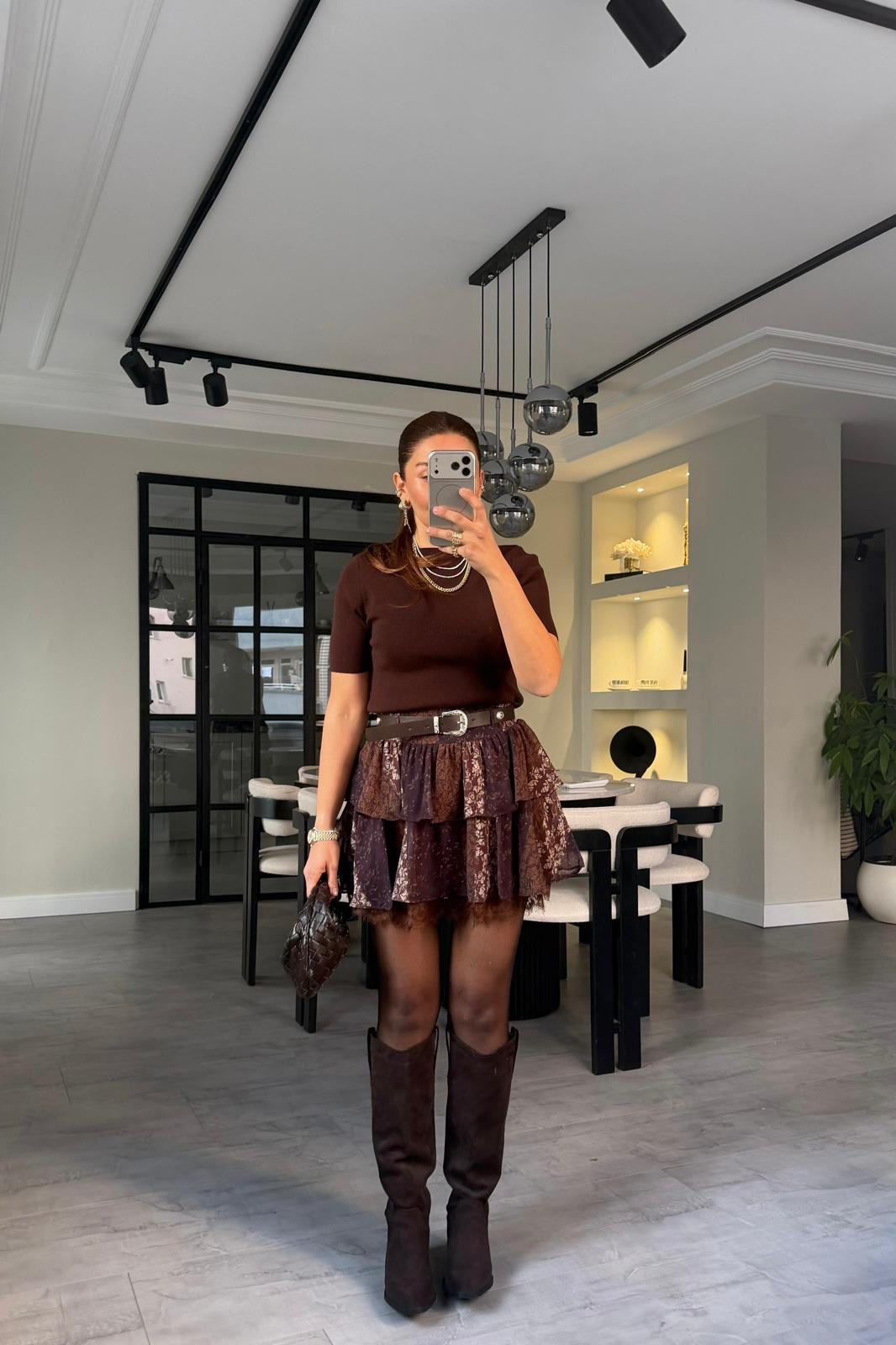 KATLI KEMERLİ ŞİFON MİNİ ETEK/37208