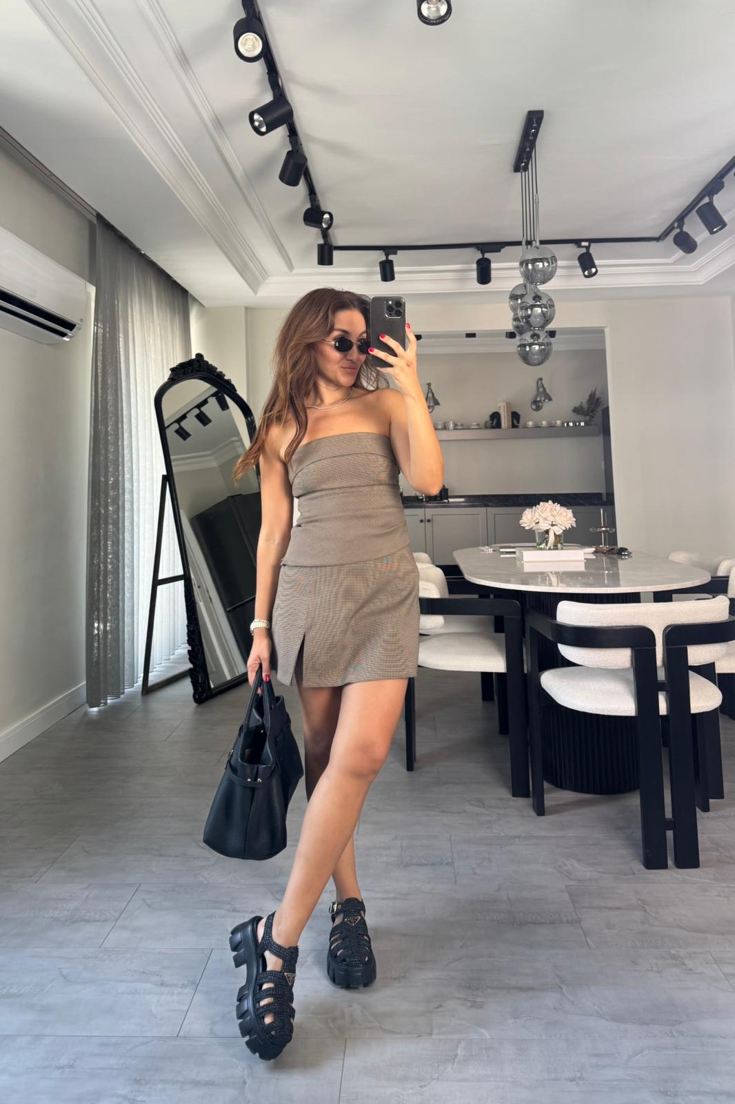 KAZAYAĞI DESENLİ YIRTMAÇLI ŞORT ETEK/250723