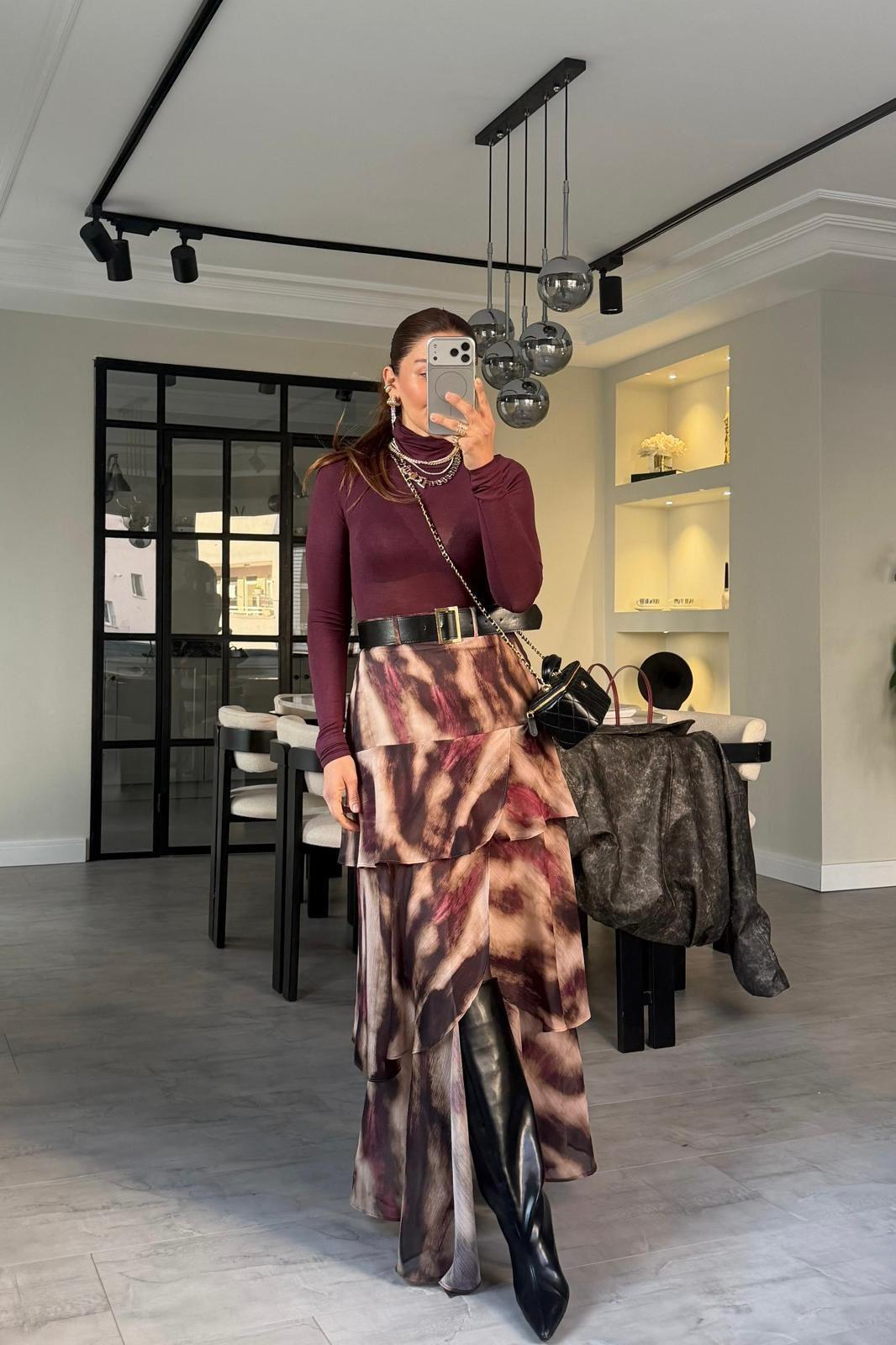 KEMERLİ KATLI ŞİFON MAKSİ ETEK/7736