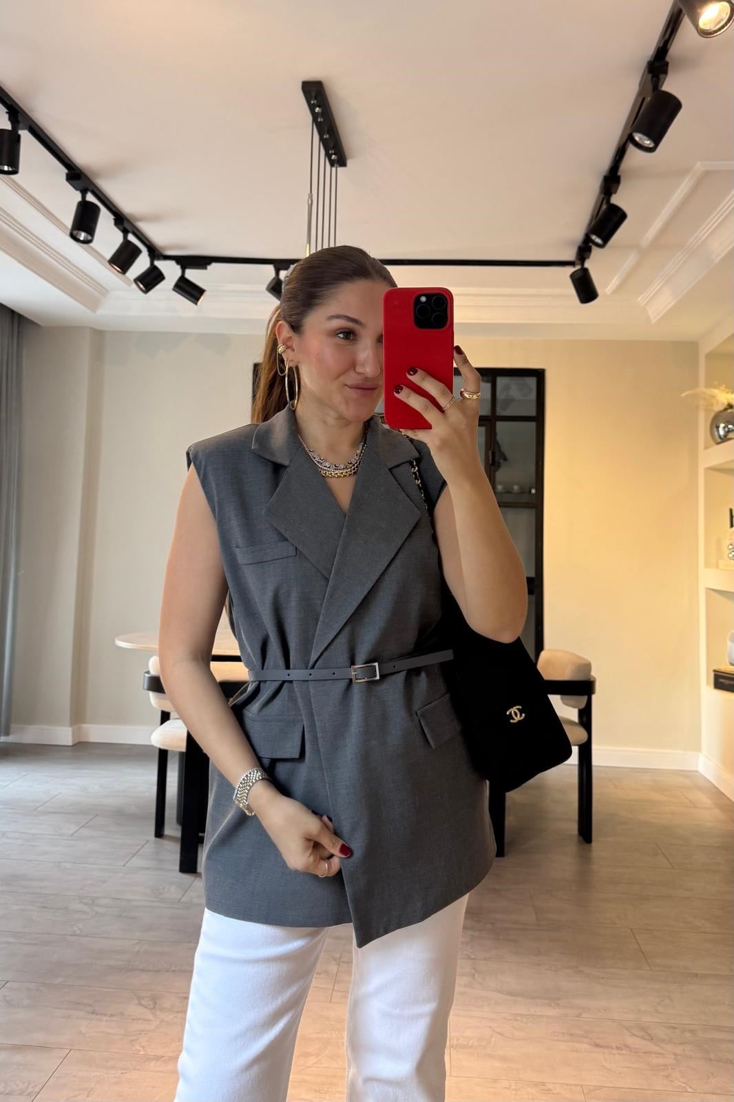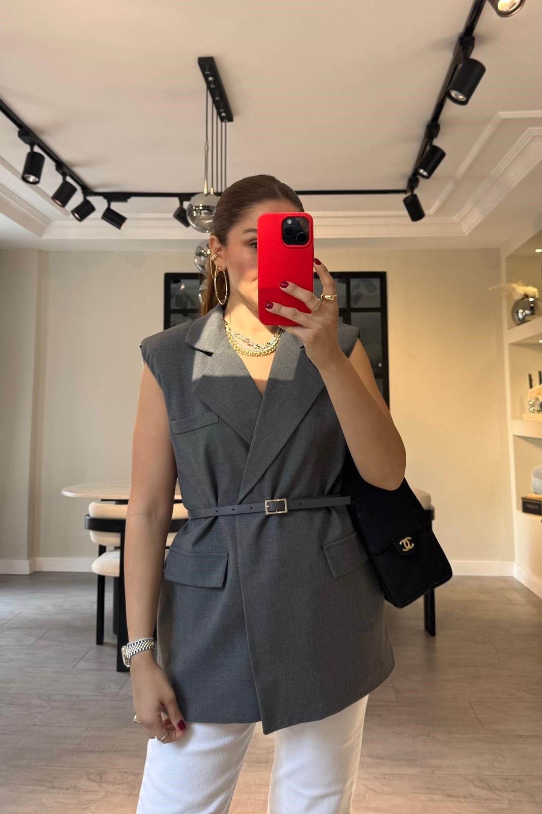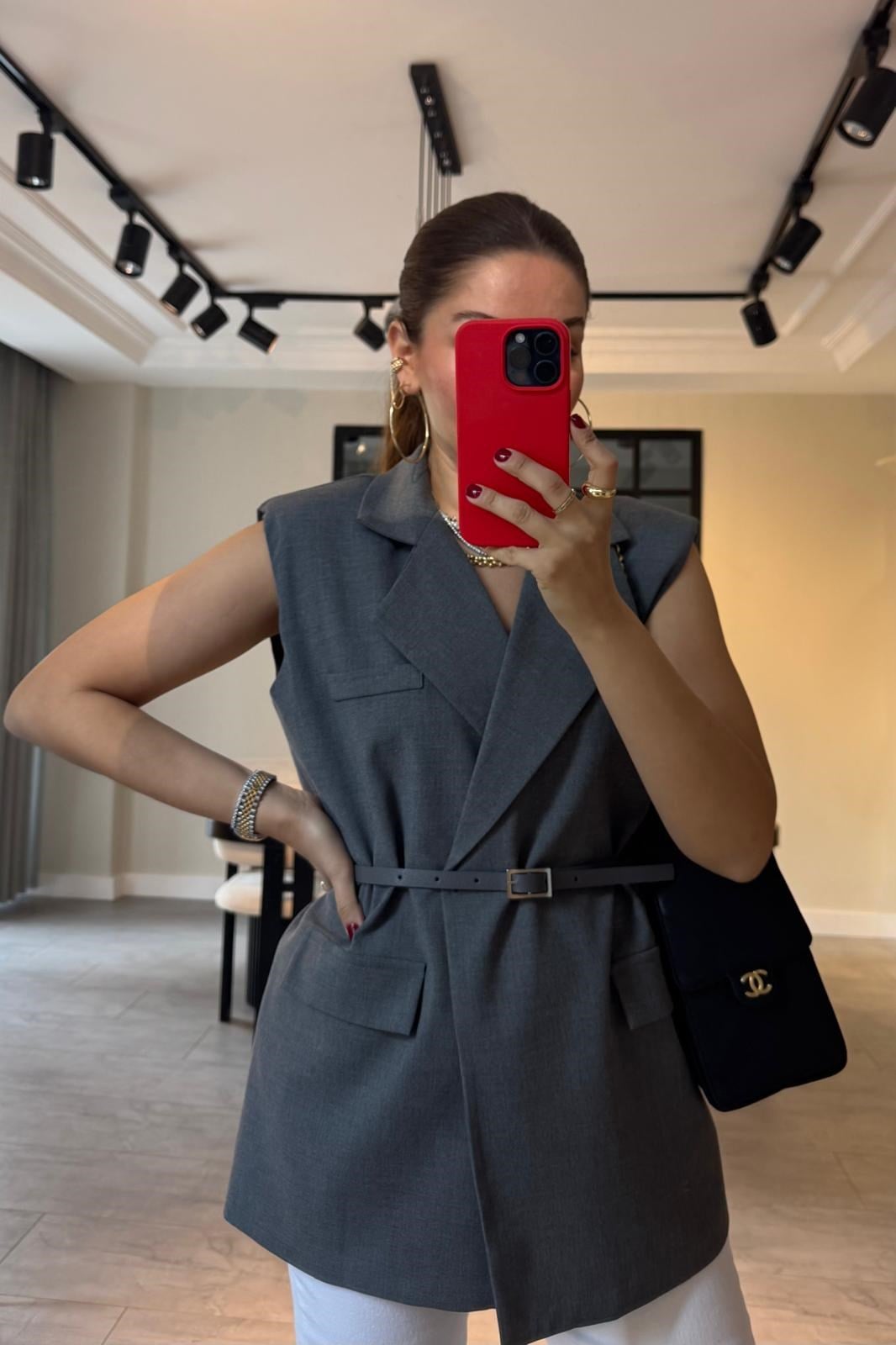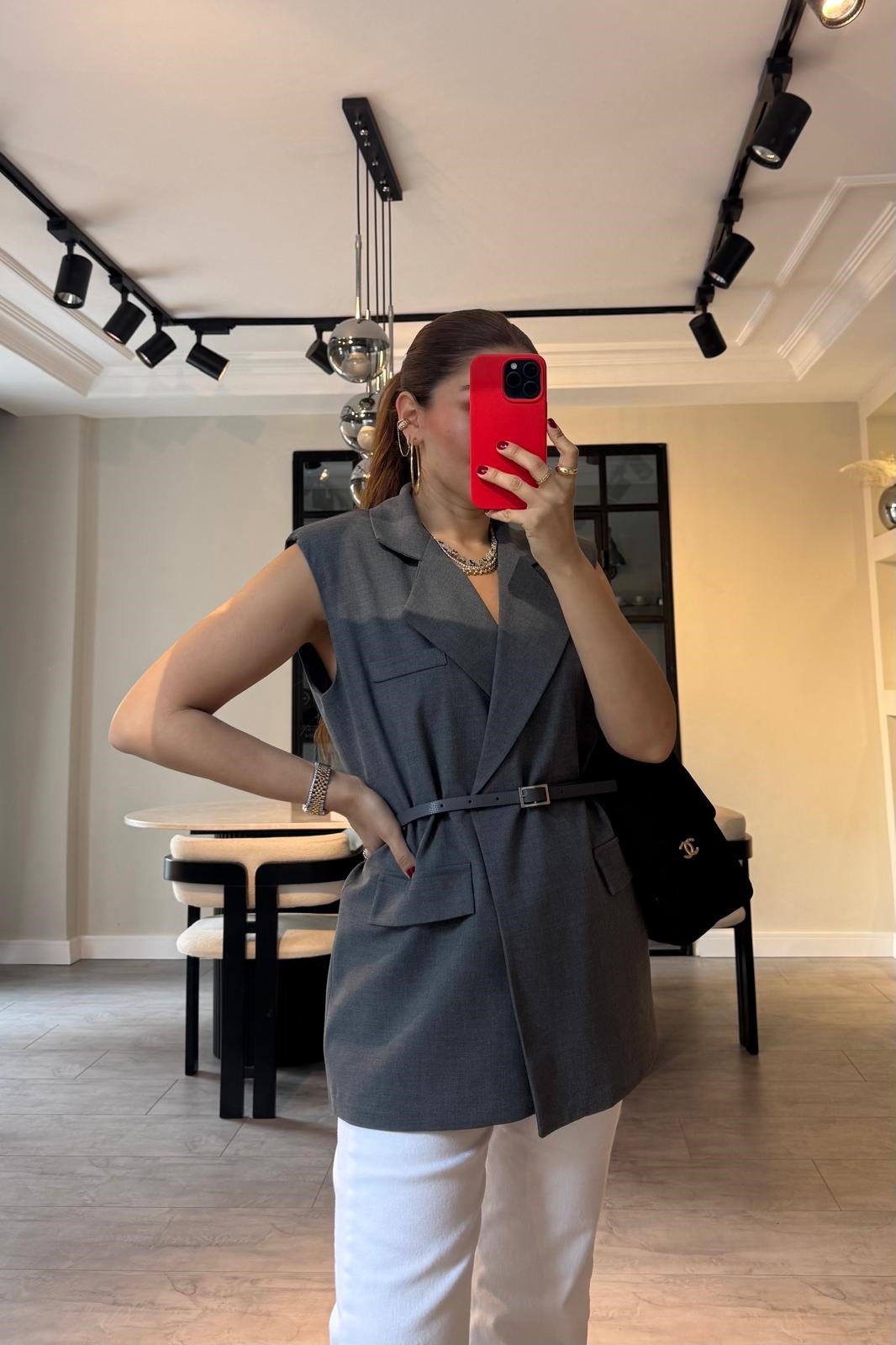 KEMERLİ POLİVİSKON OVERSİZE YELEK/6022